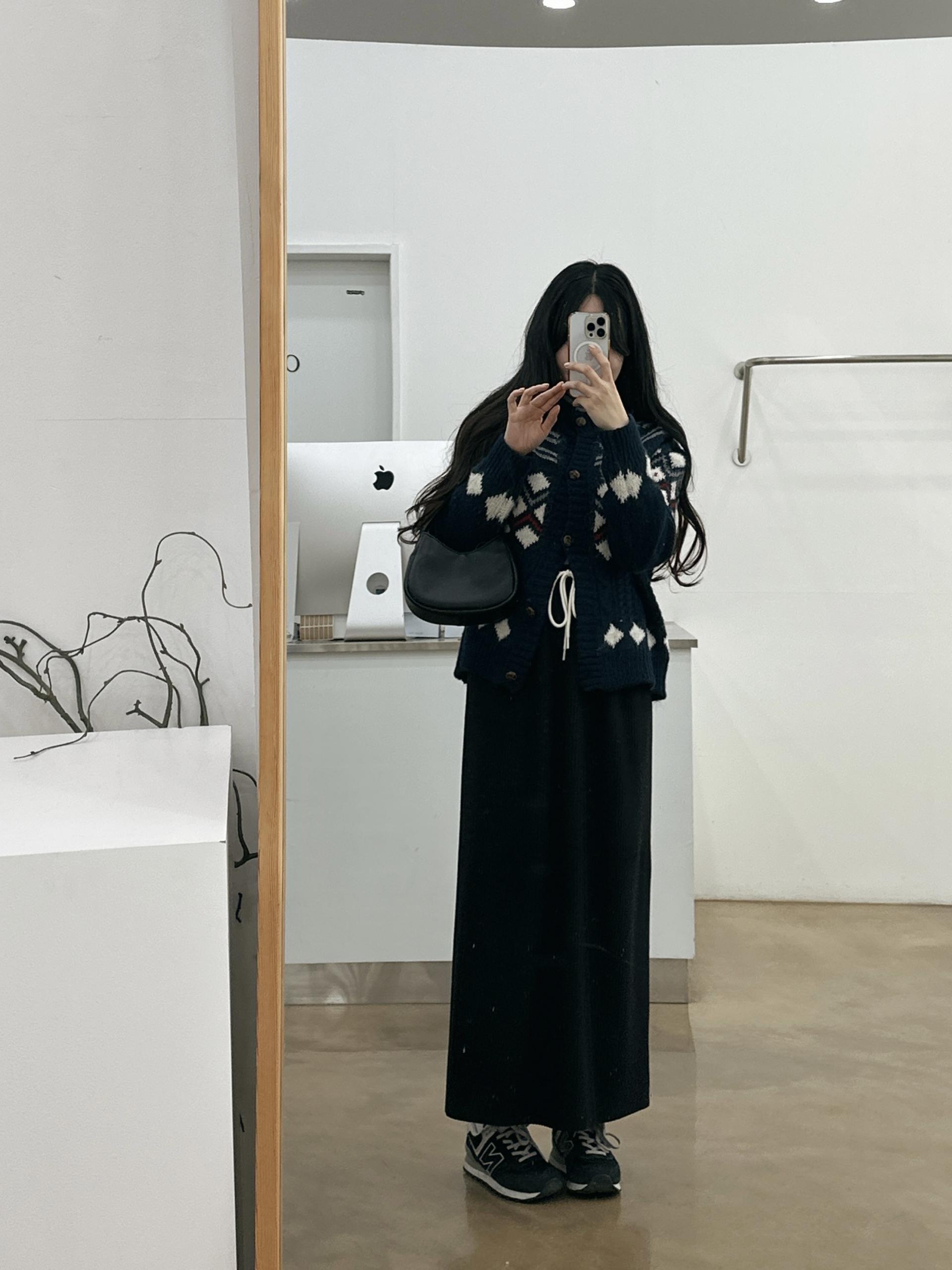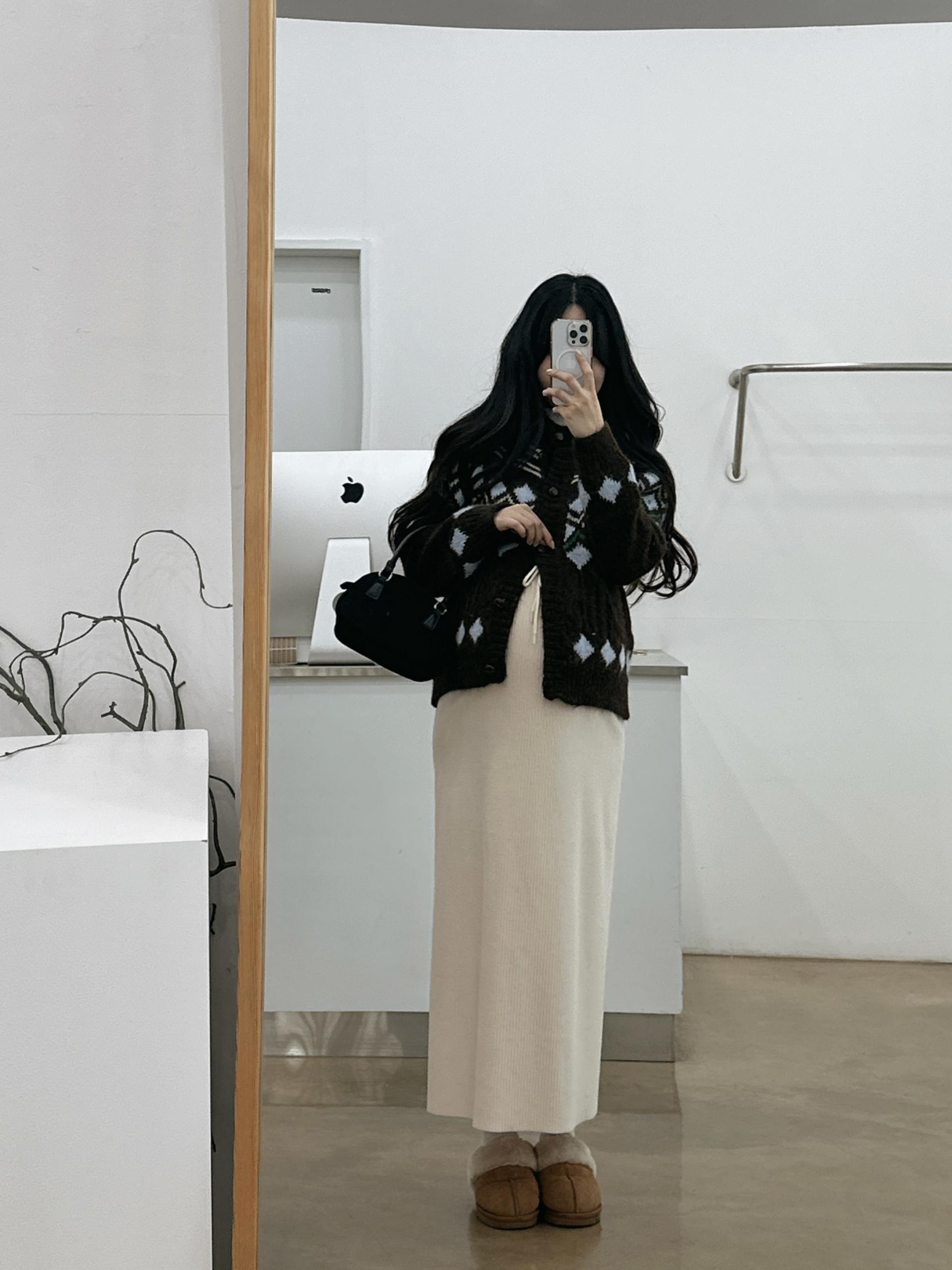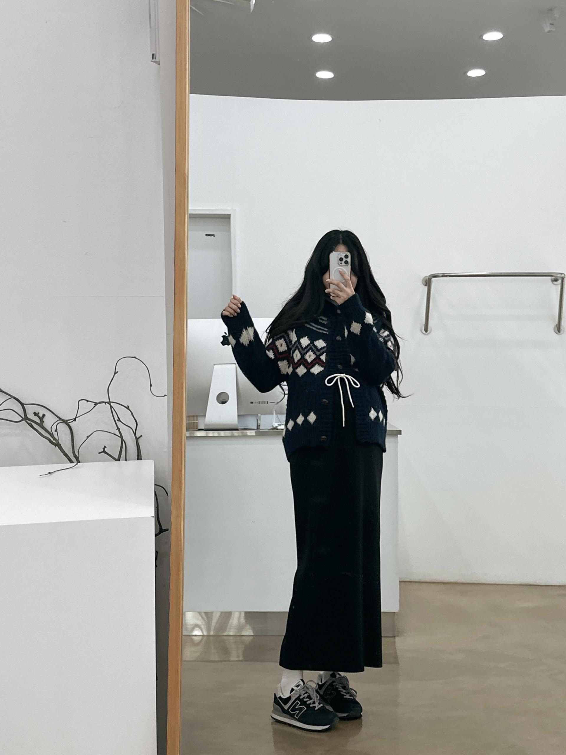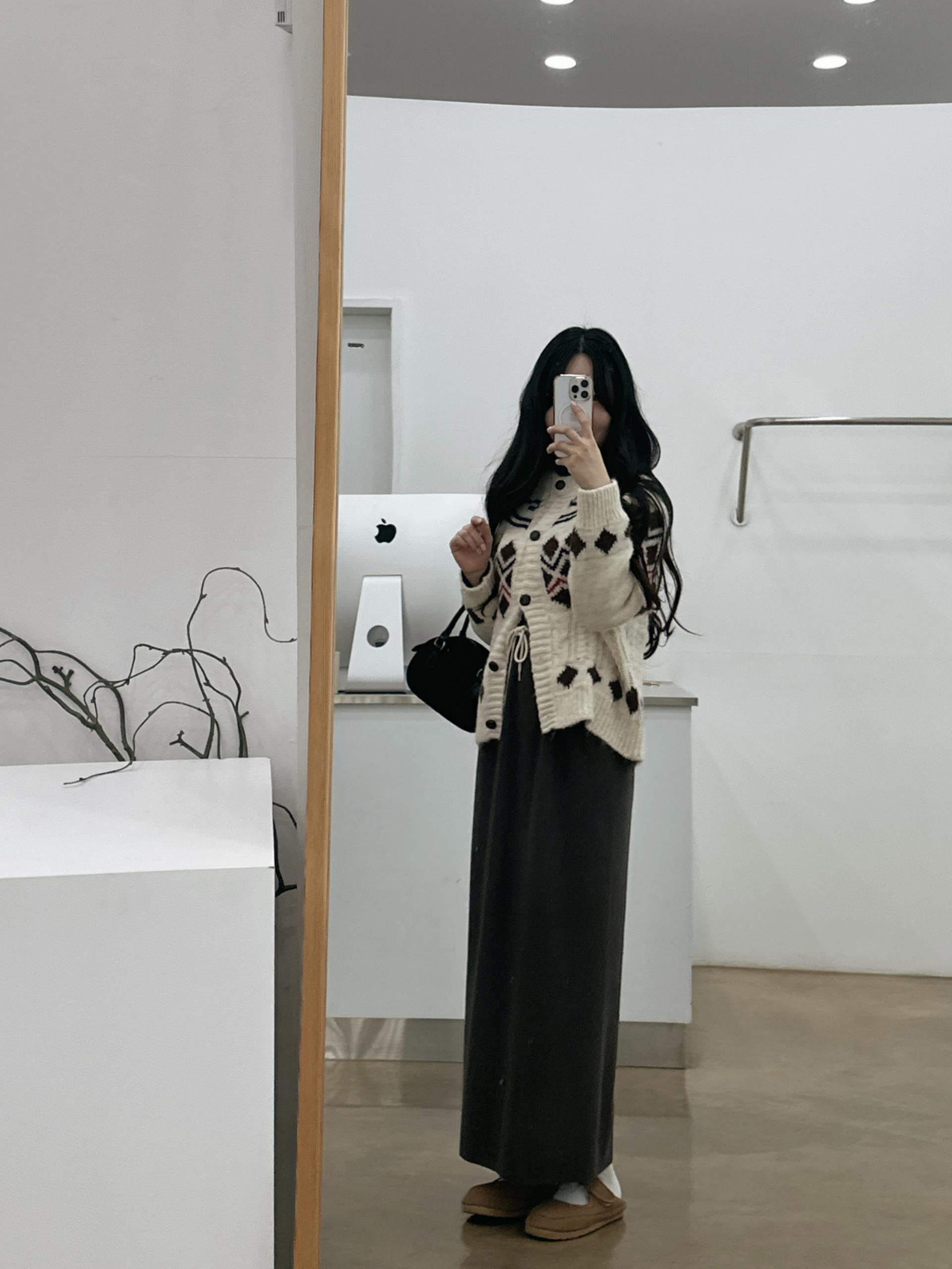 단추도 너무 귀엽고, 아가일패턴의 갬성낙낙한 데일리 겨울가디건입니다:)
