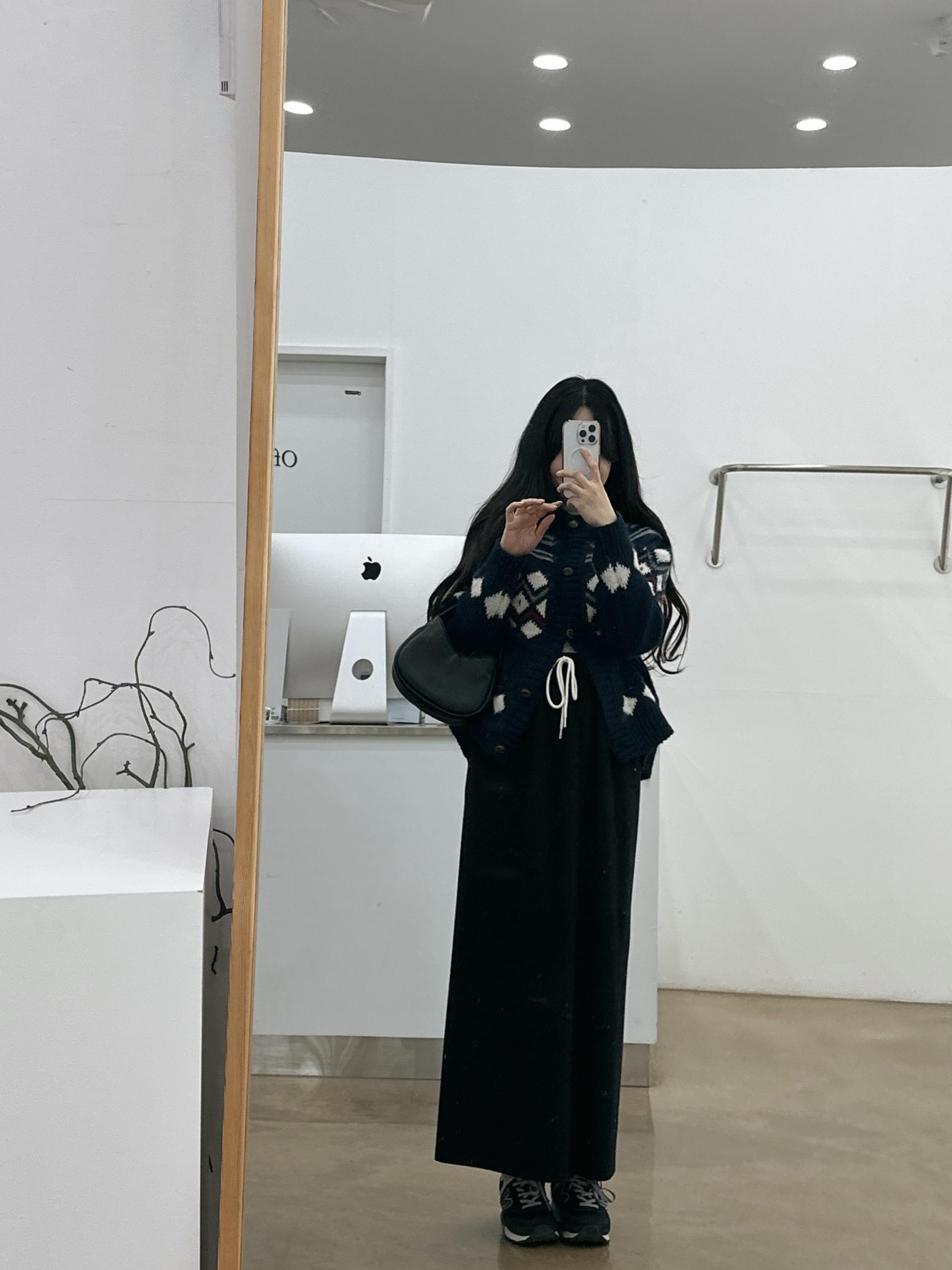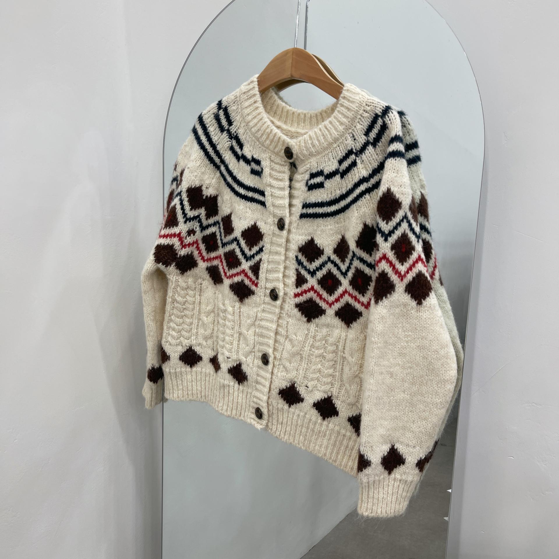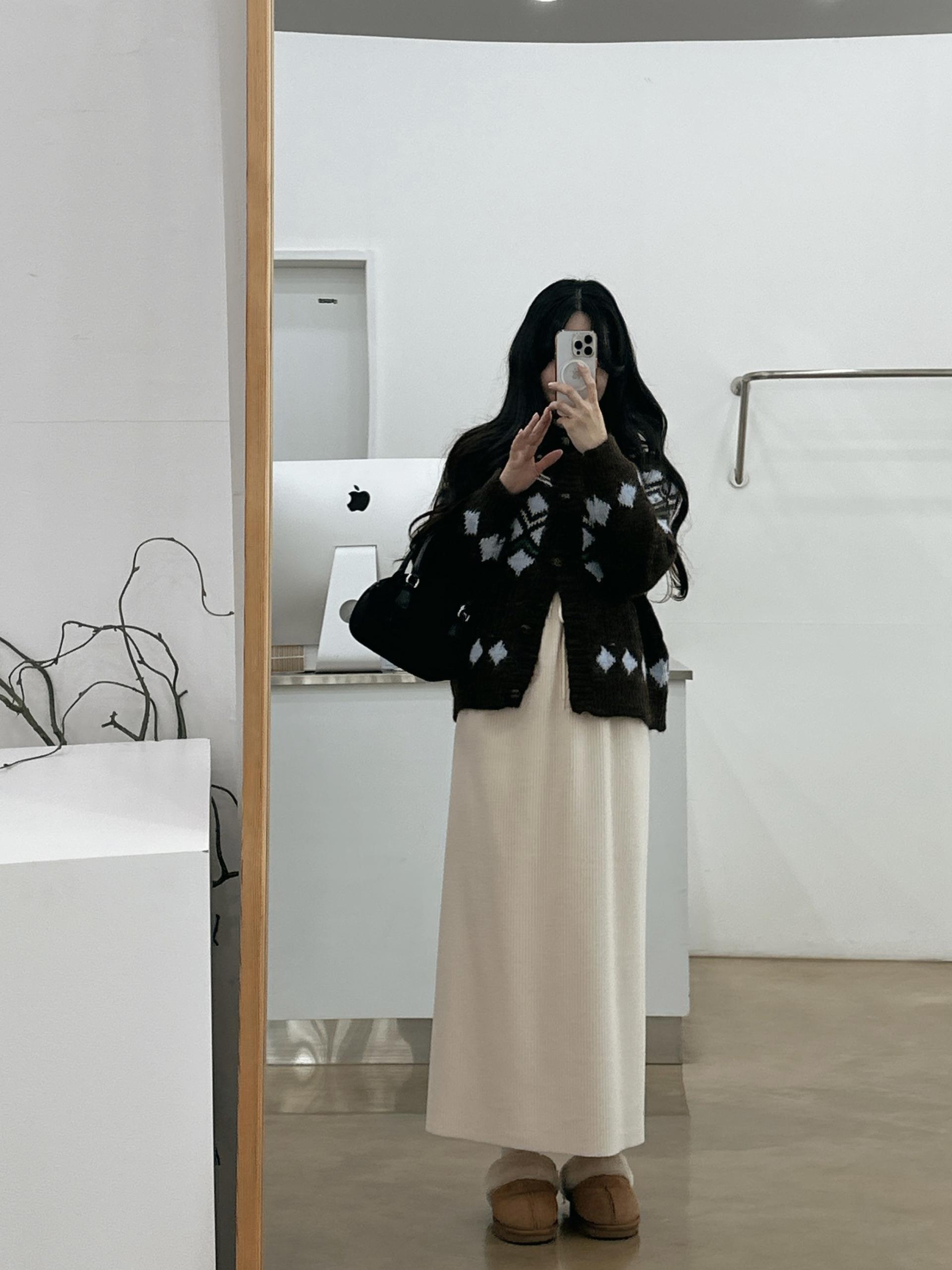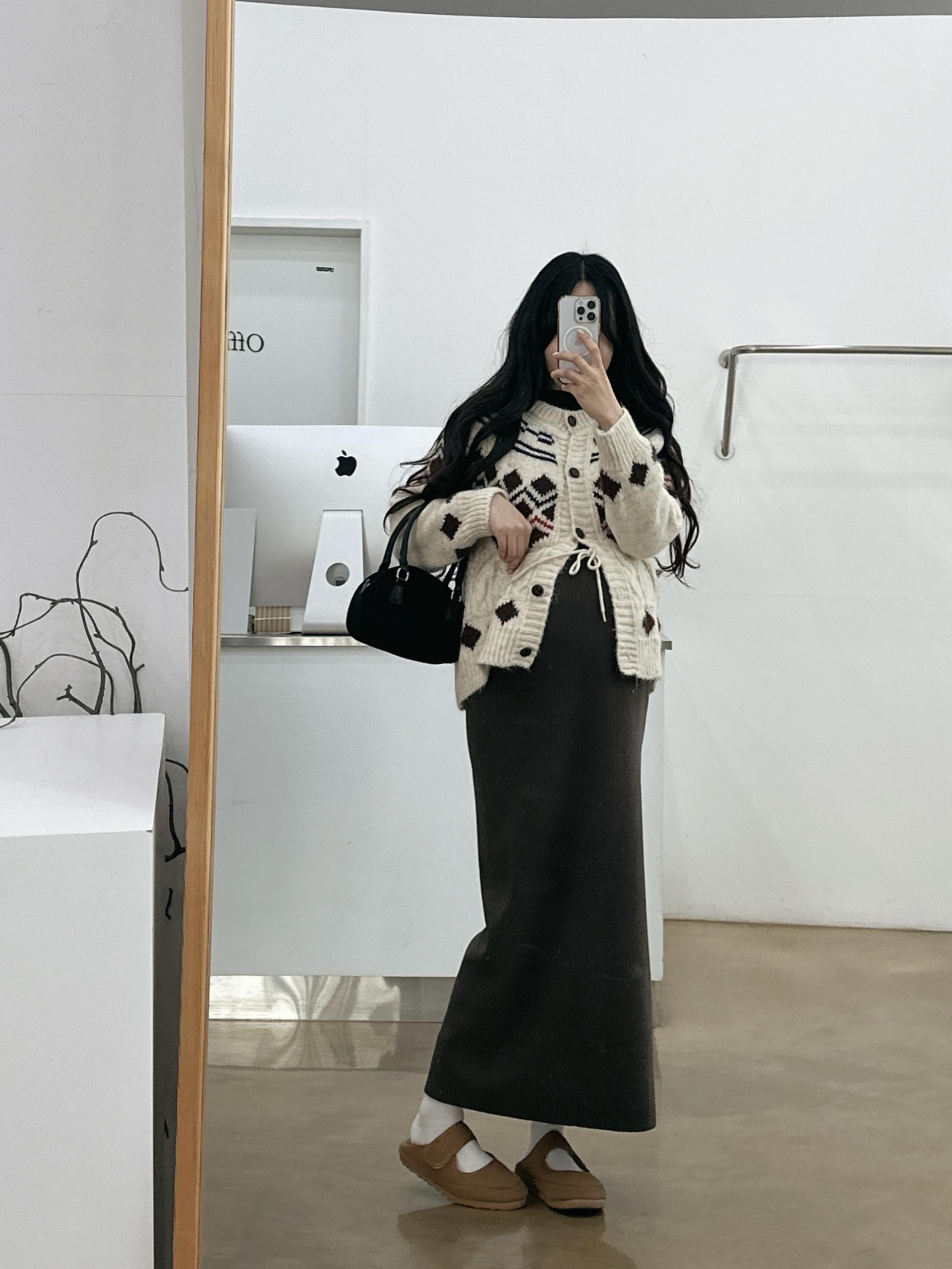 단추도 너무 귀엽고, 아가일패턴의 갬성낙낙한 데일리 겨울가디건입니다:)