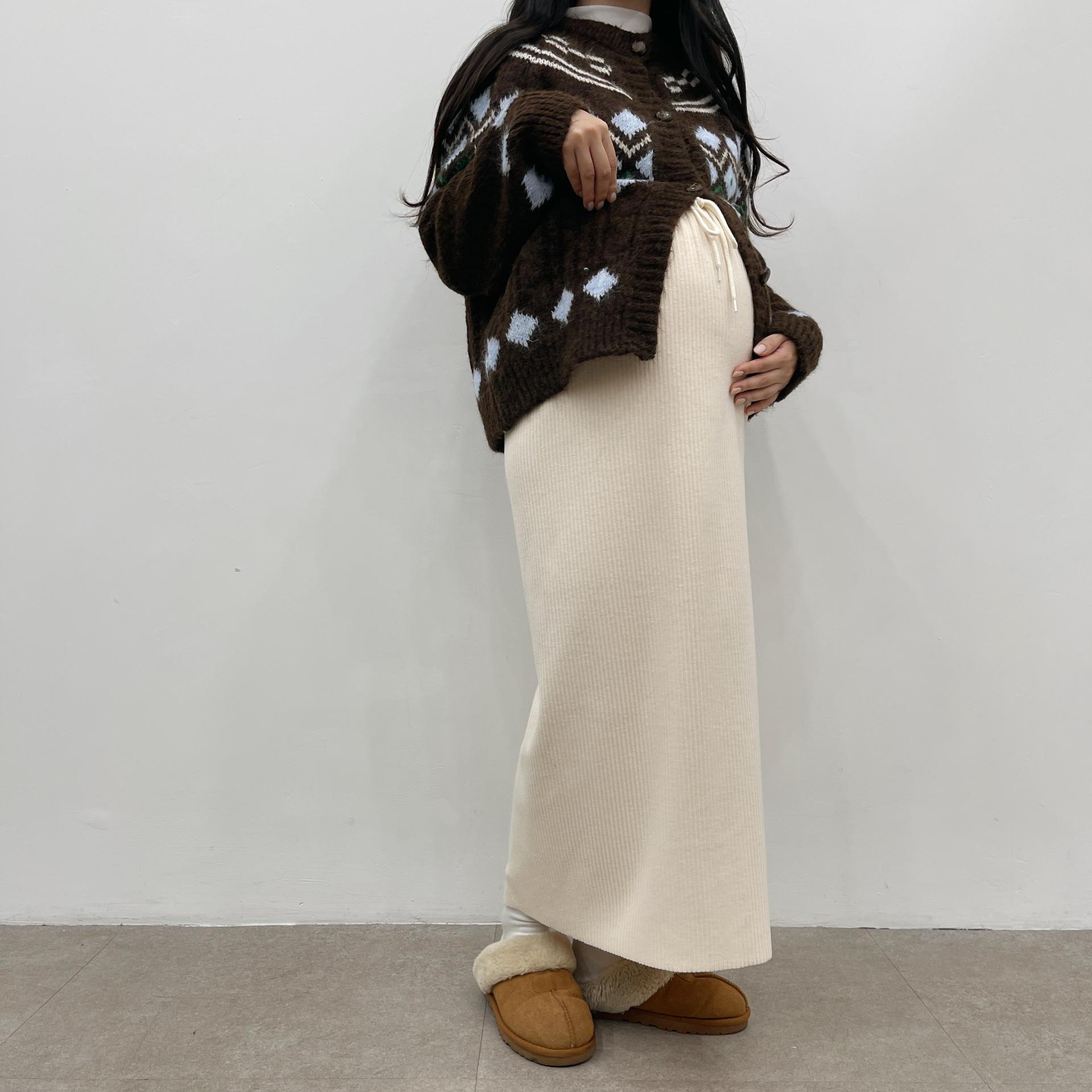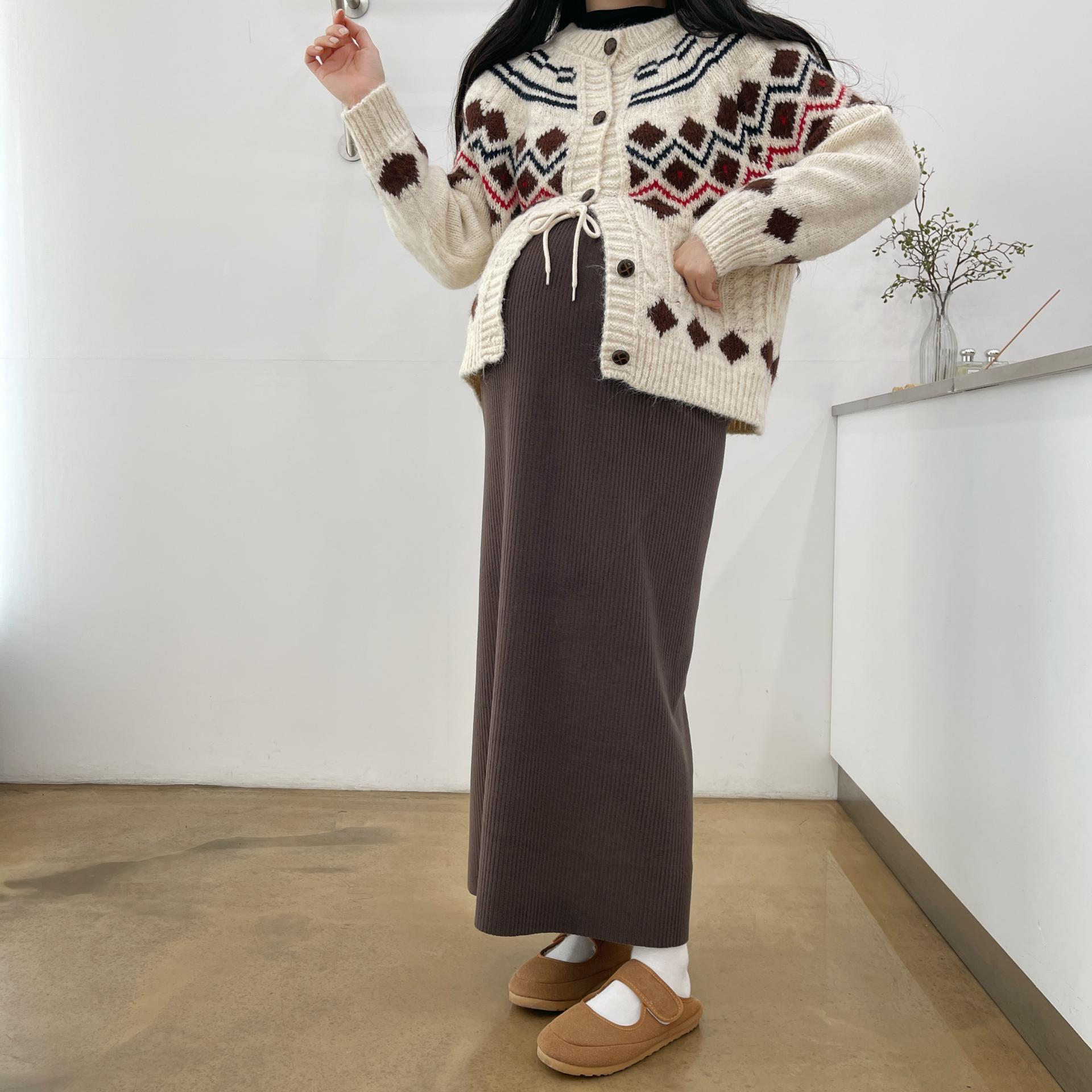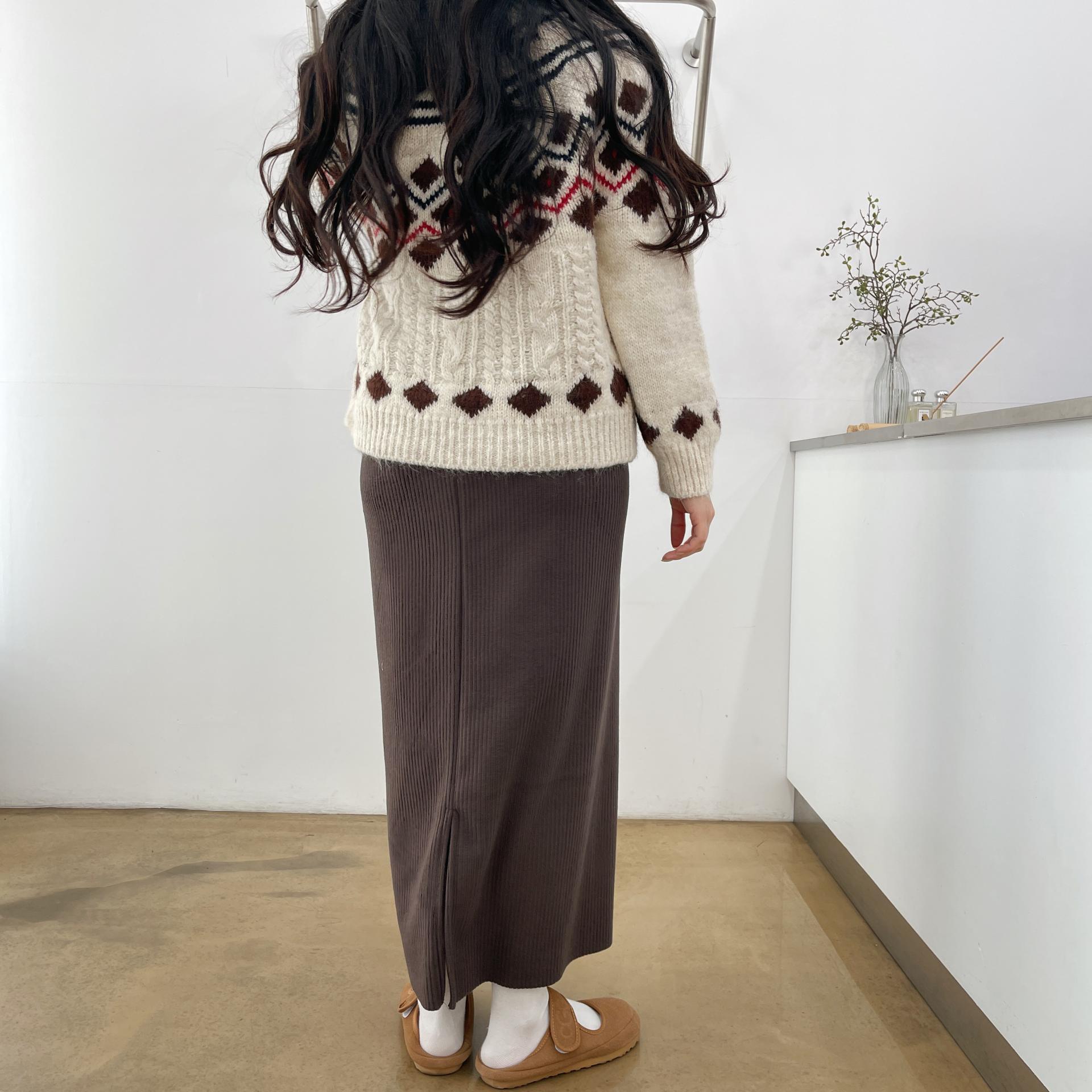 <같이코디한 스커트는 롱,기모골지밴딩스커트 + 기모반목폴라T 입니다>