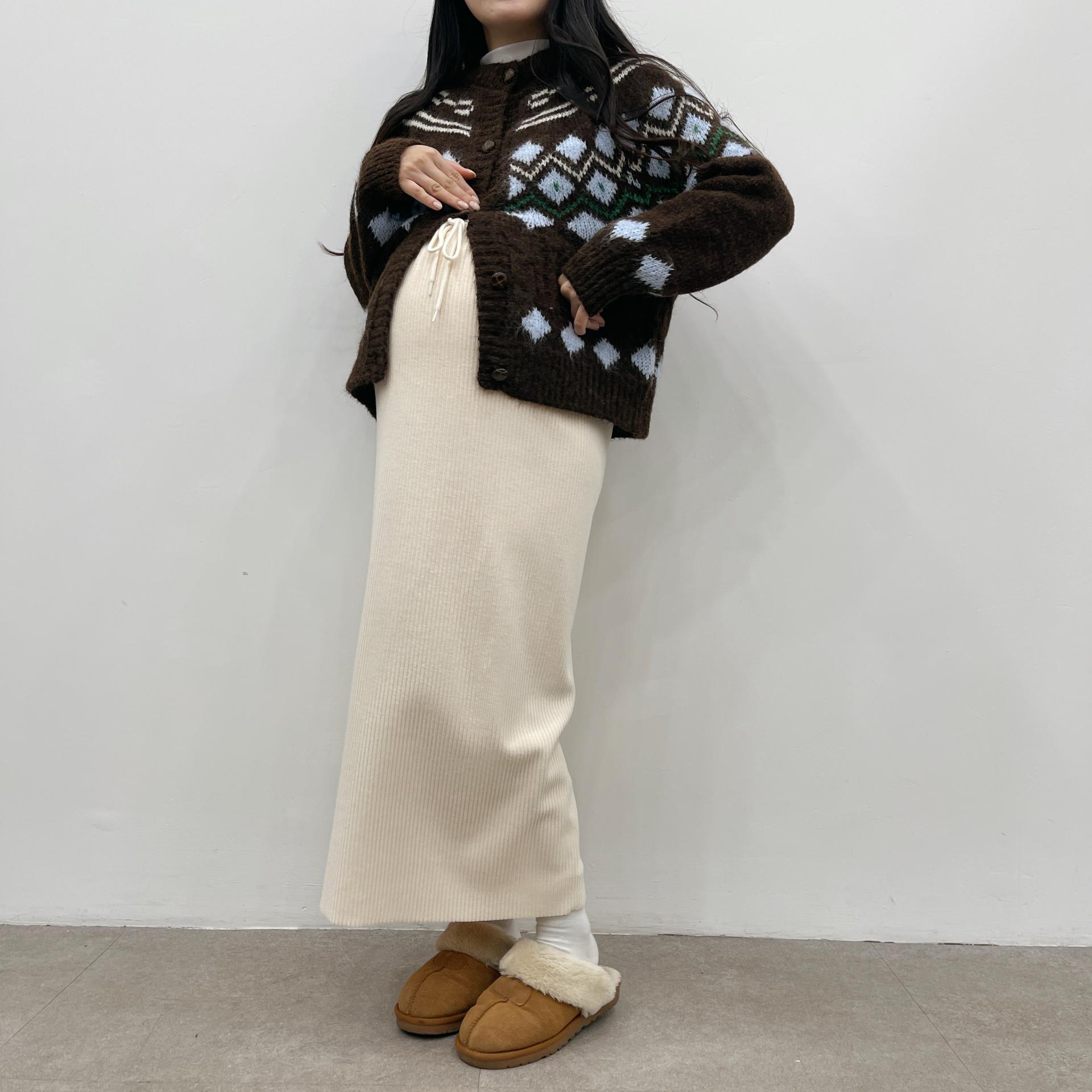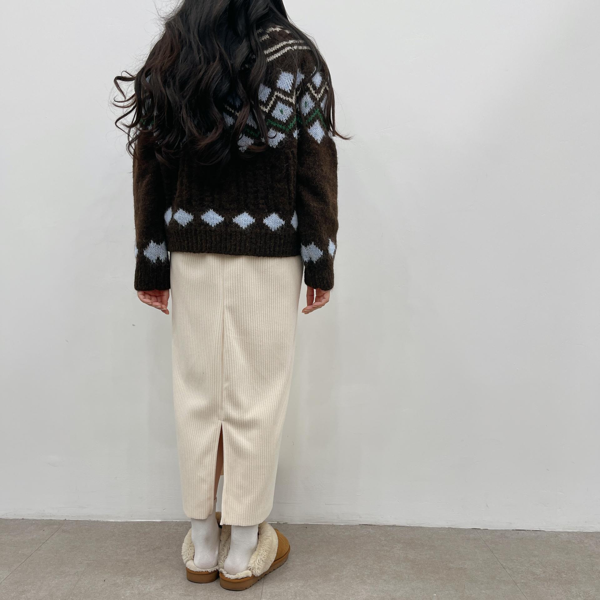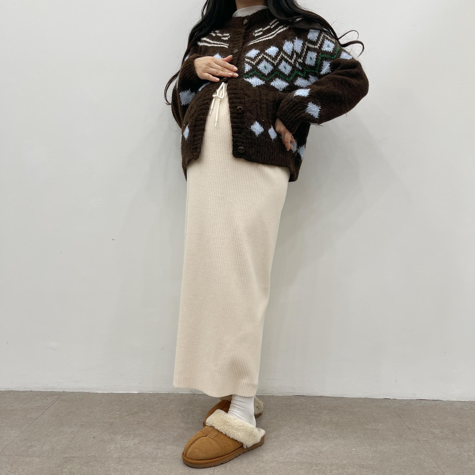 <같이코디한 스커트는 롱,기모골지밴딩스커트 + 기모반목폴라T 입니다>