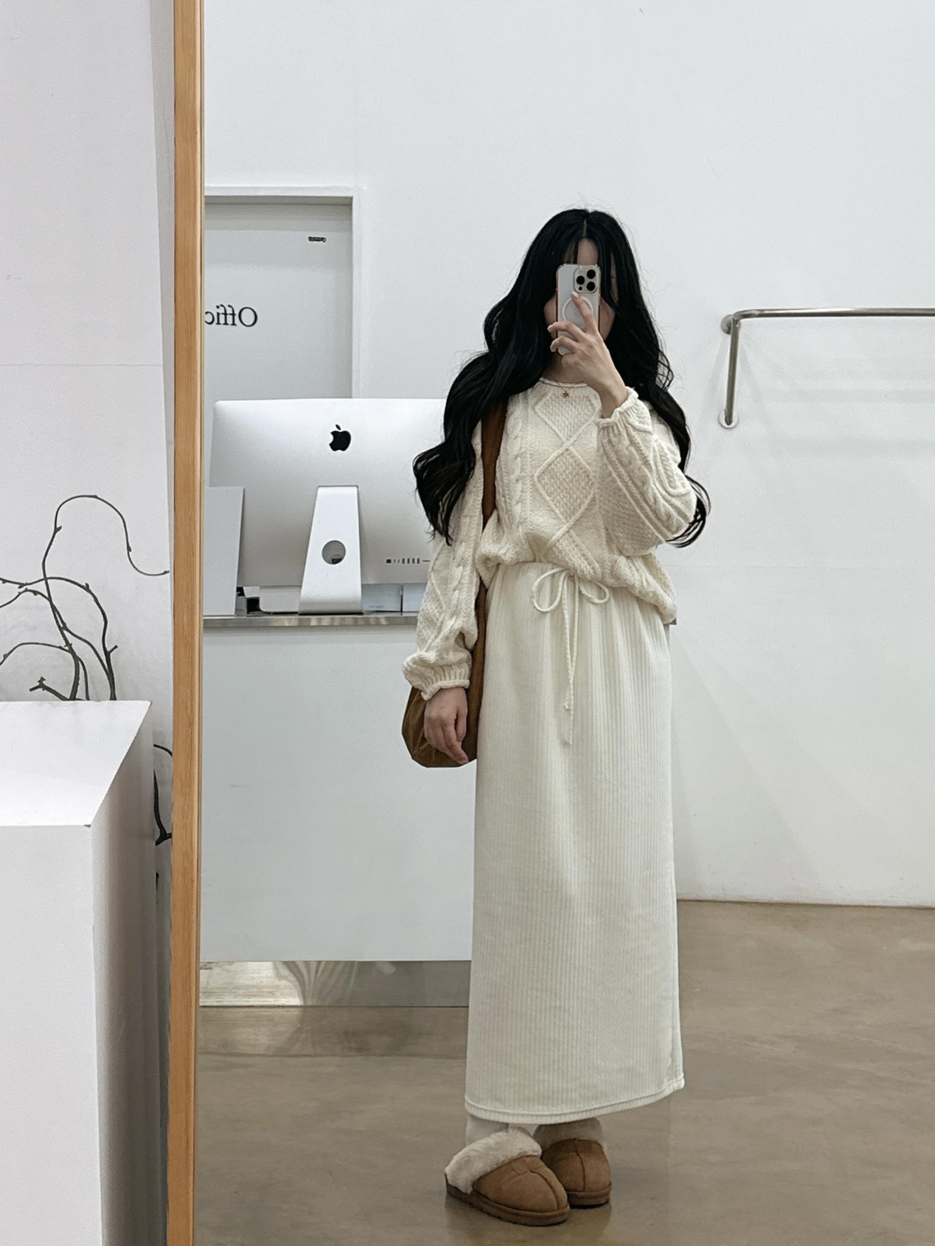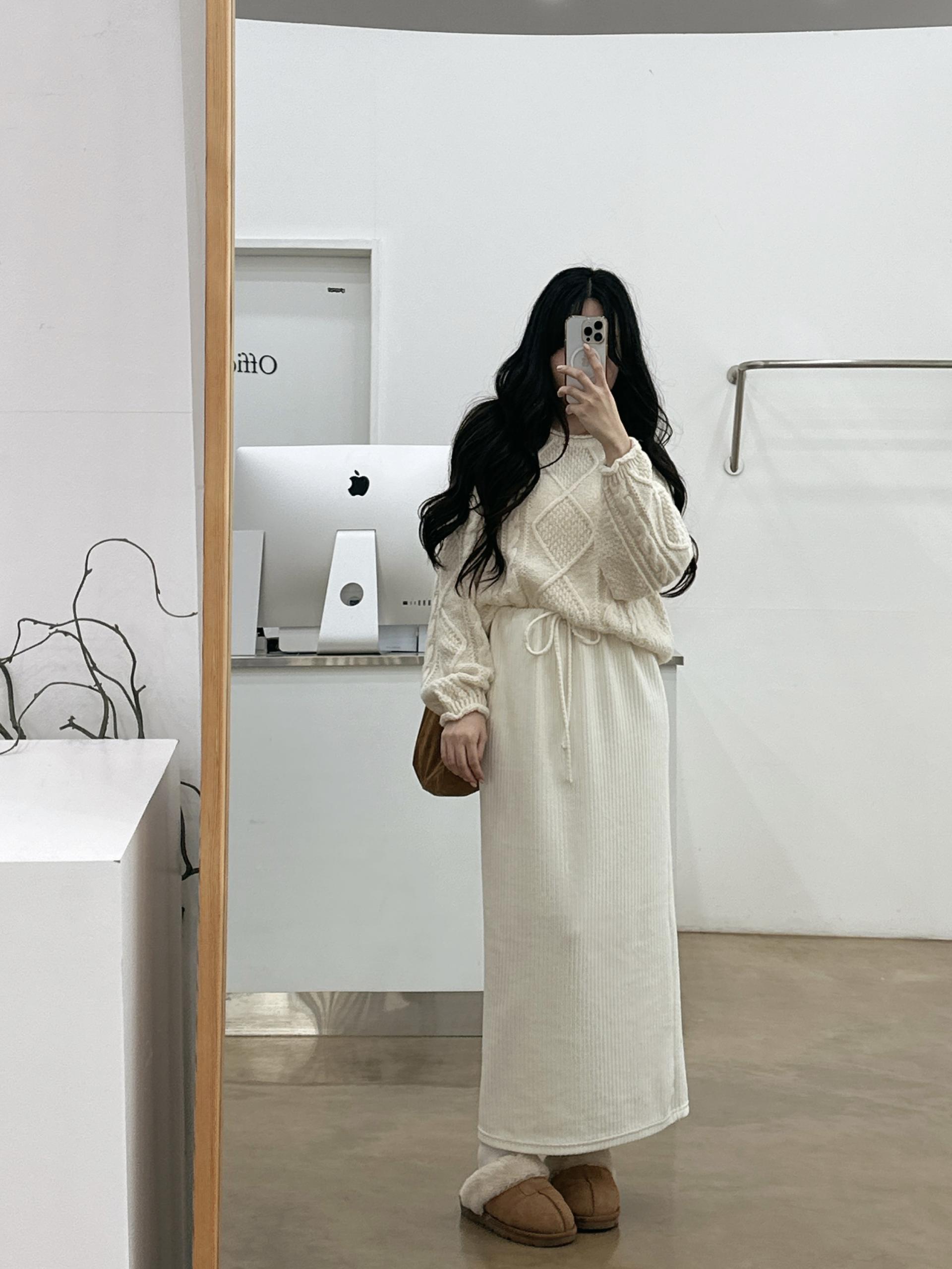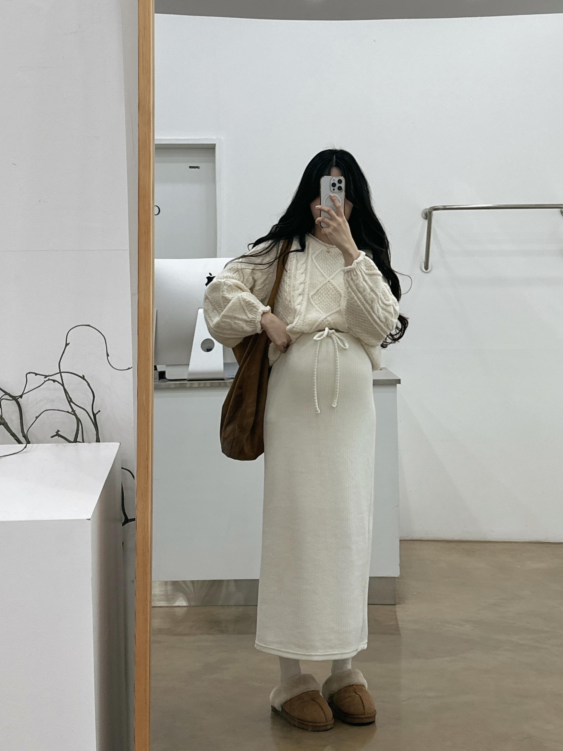 파우더리스커트(크림)+로빈블리니트(아이보리)