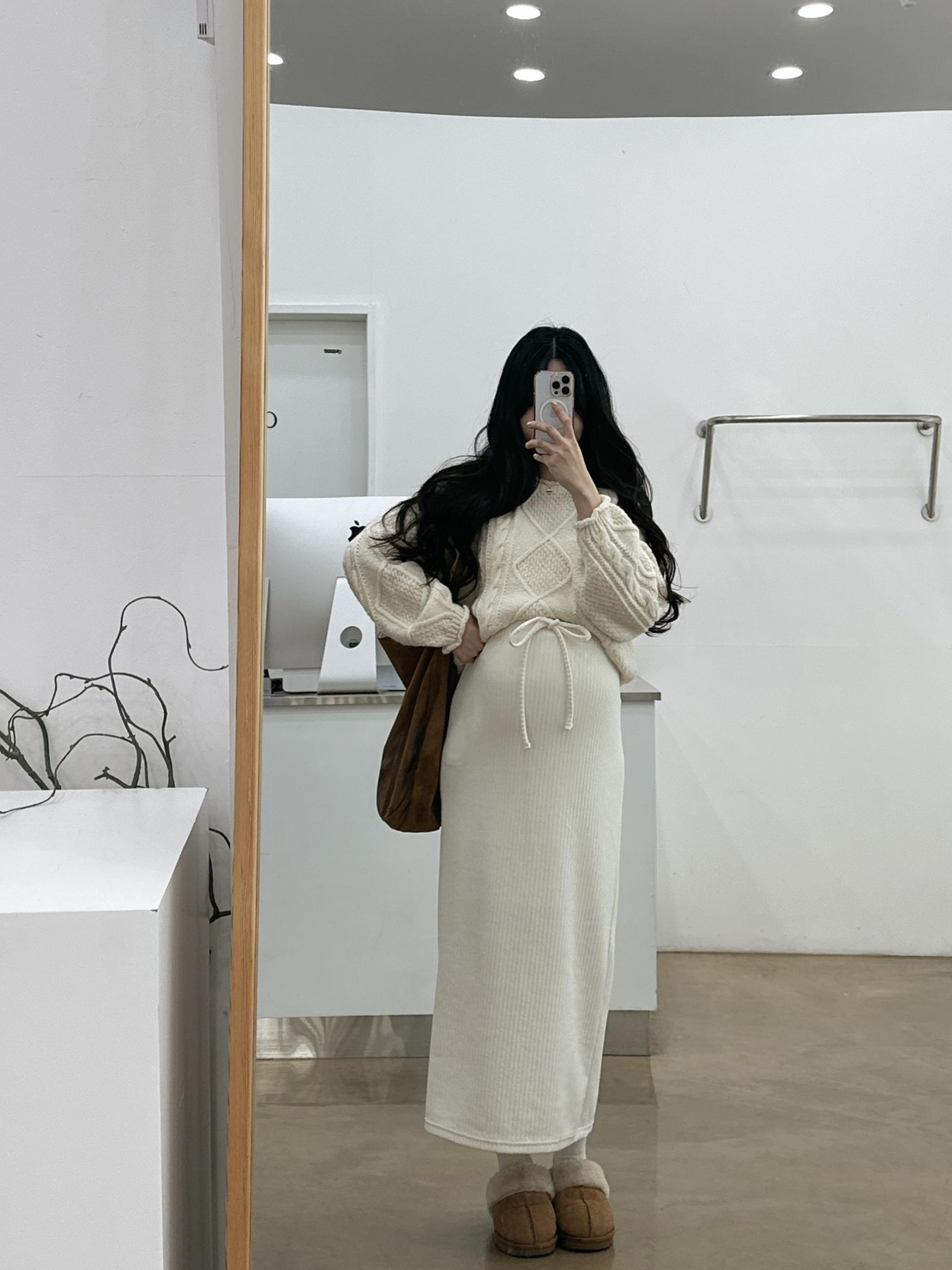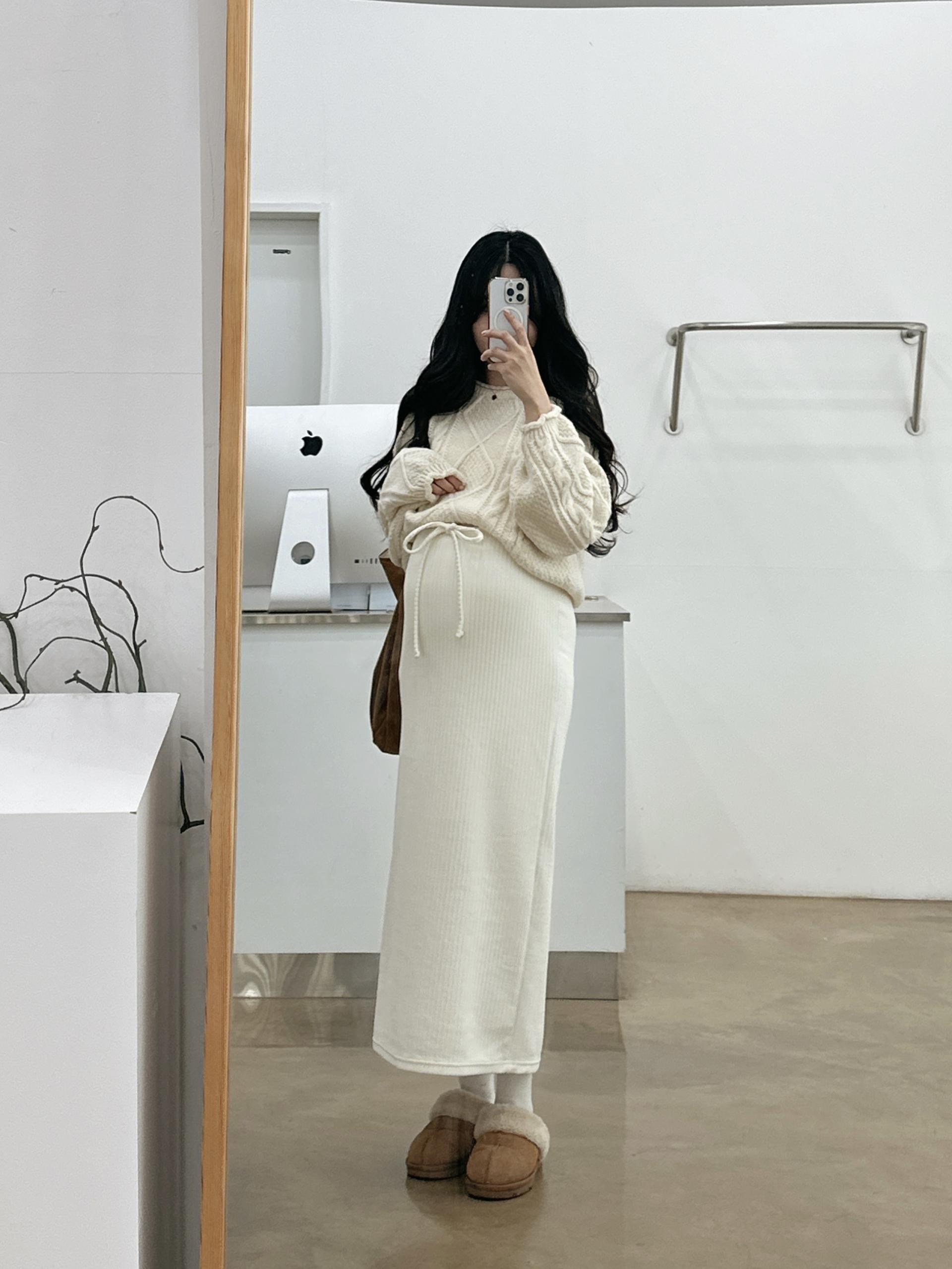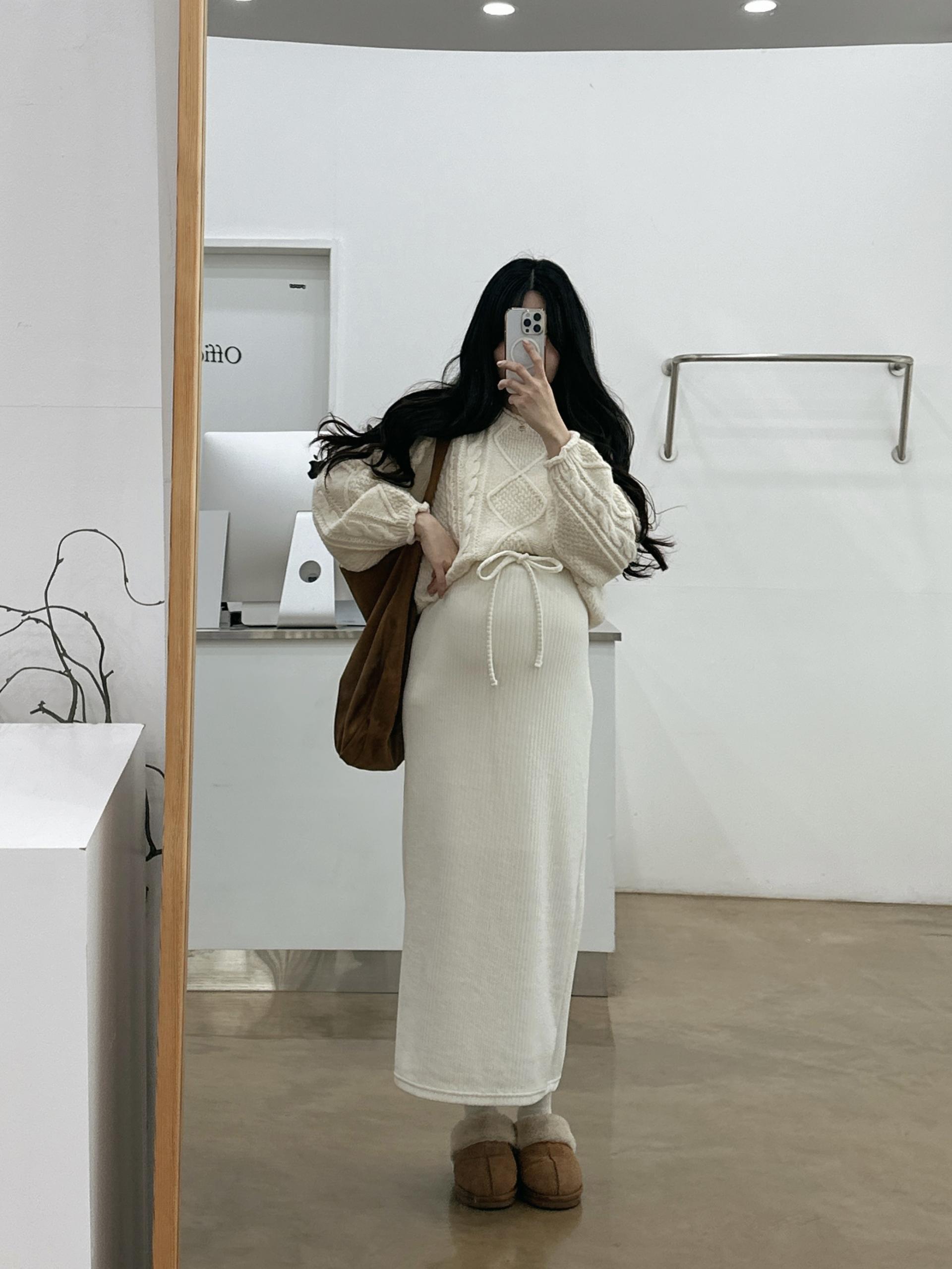 파우더리스커트(크림)+로빈블리니트(아이보리)