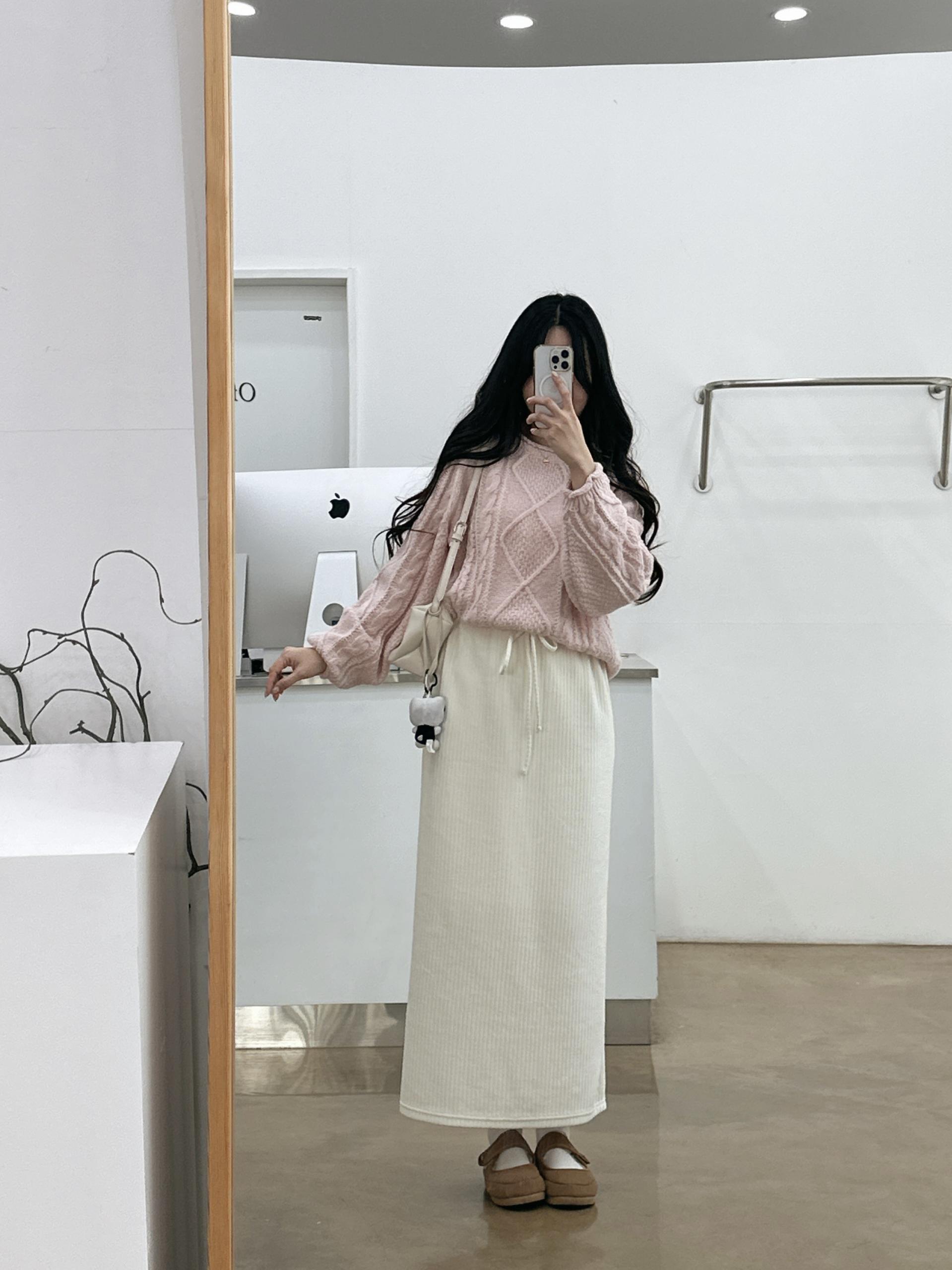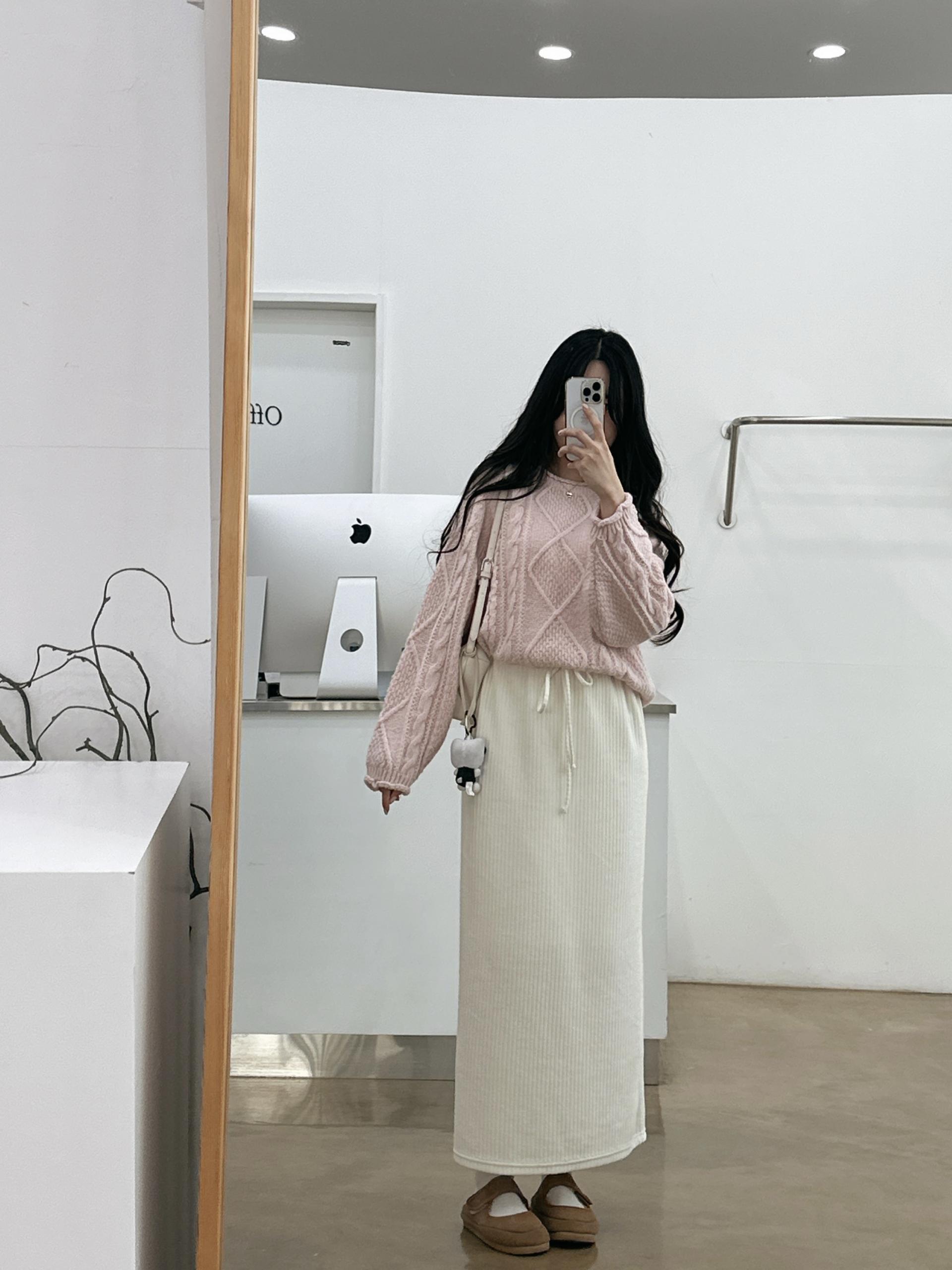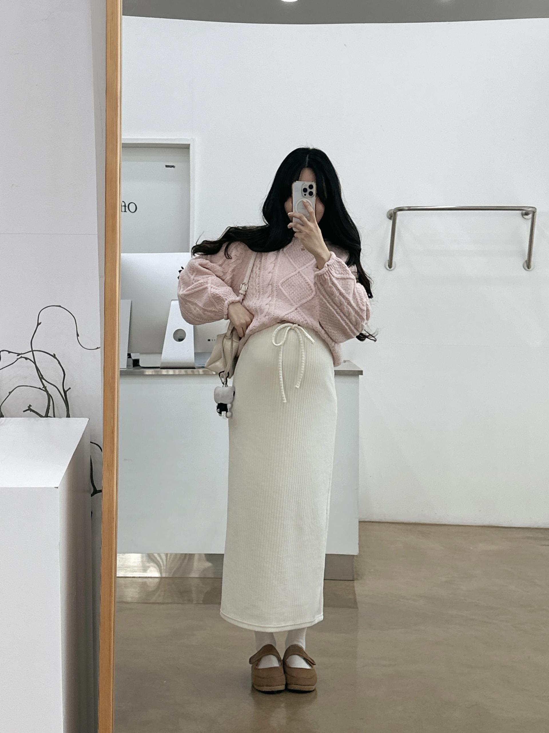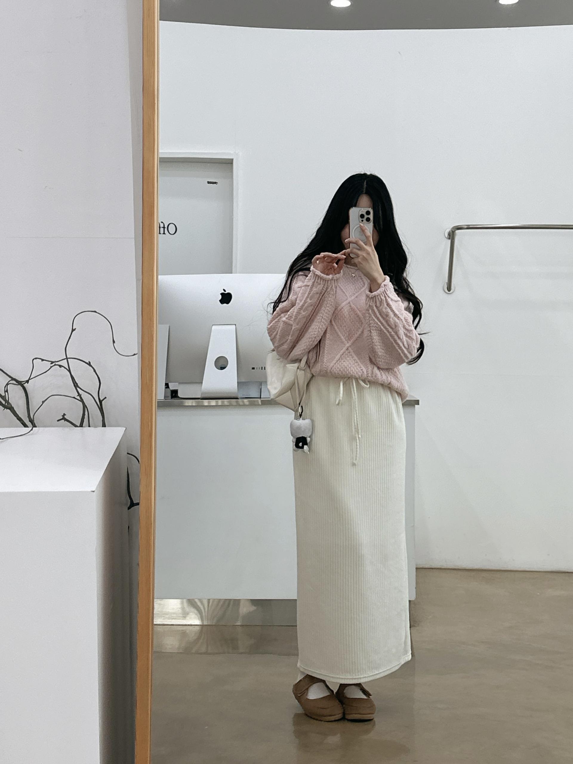 파우더리스커트(크림)+로빈블리니트(핑크)
