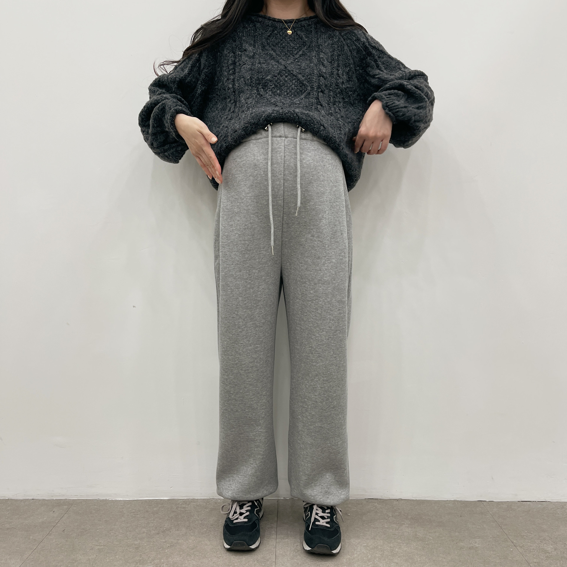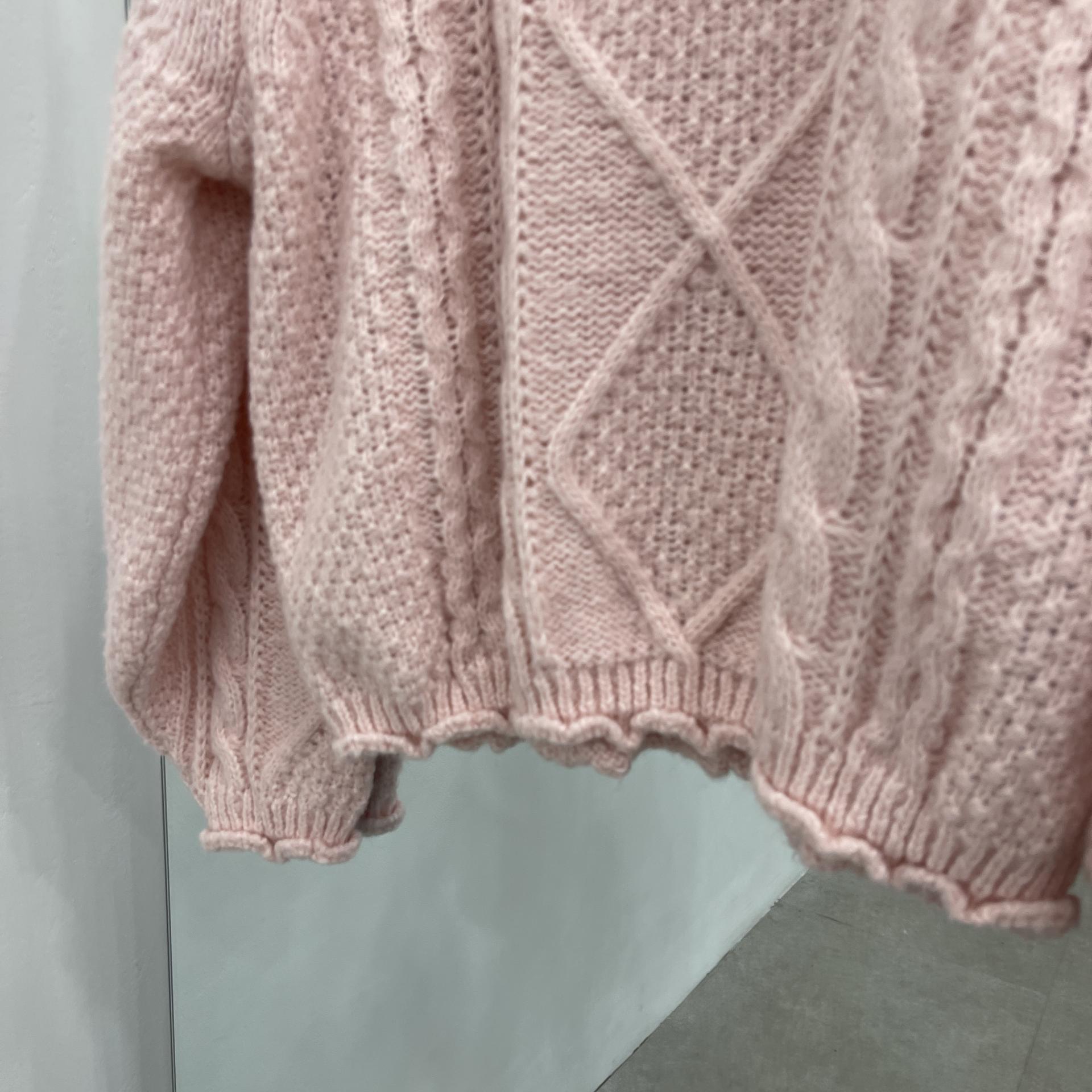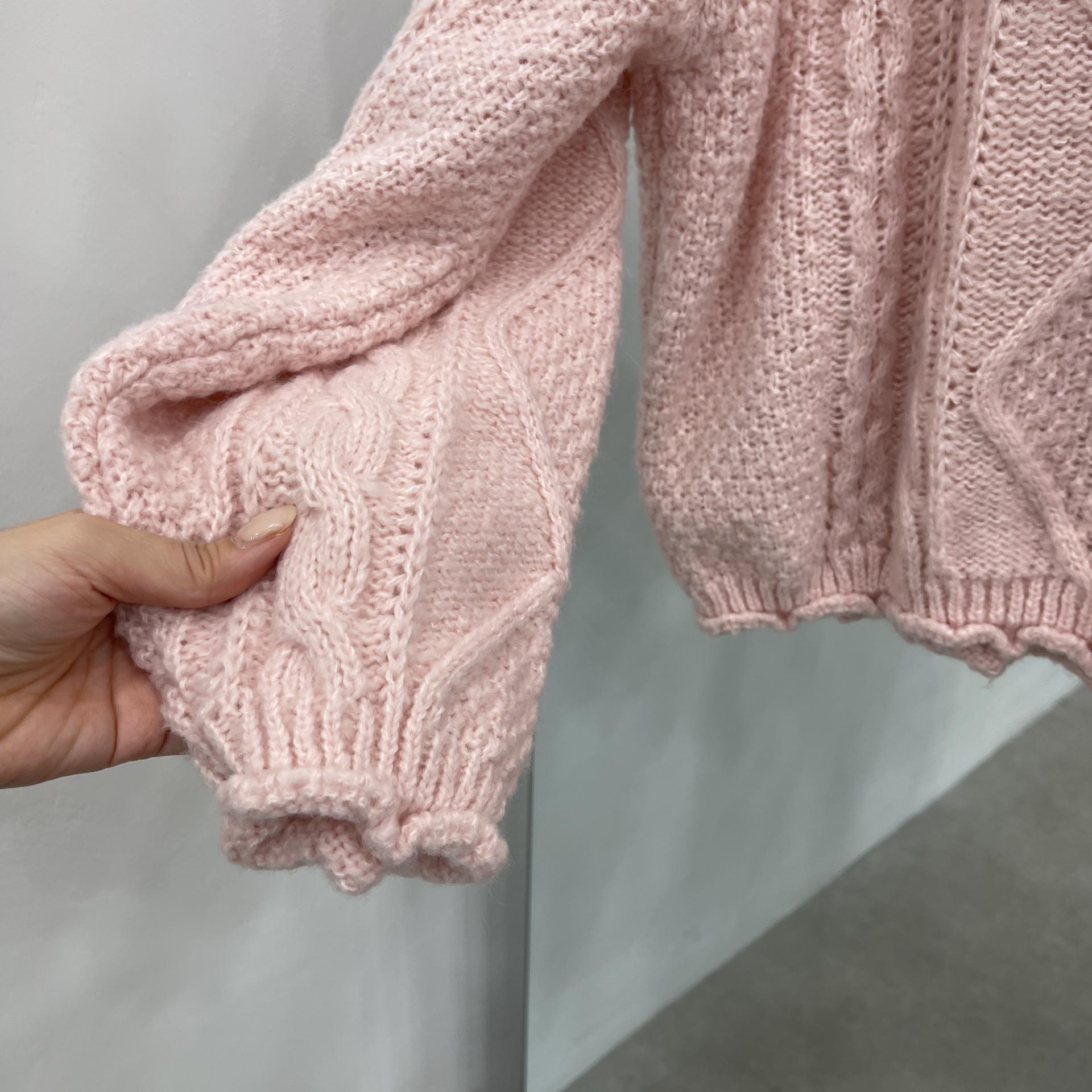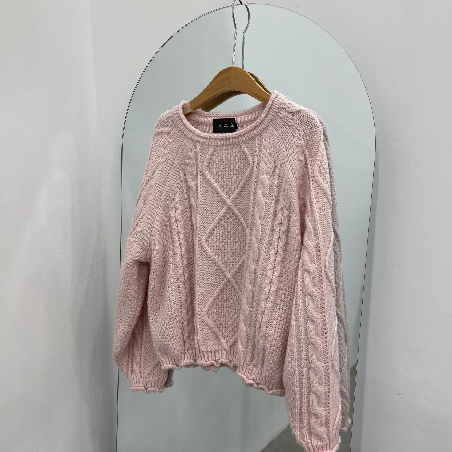 소매와 밑단 물결처리로 러블리함을 더 올린 꽈배기니트에요