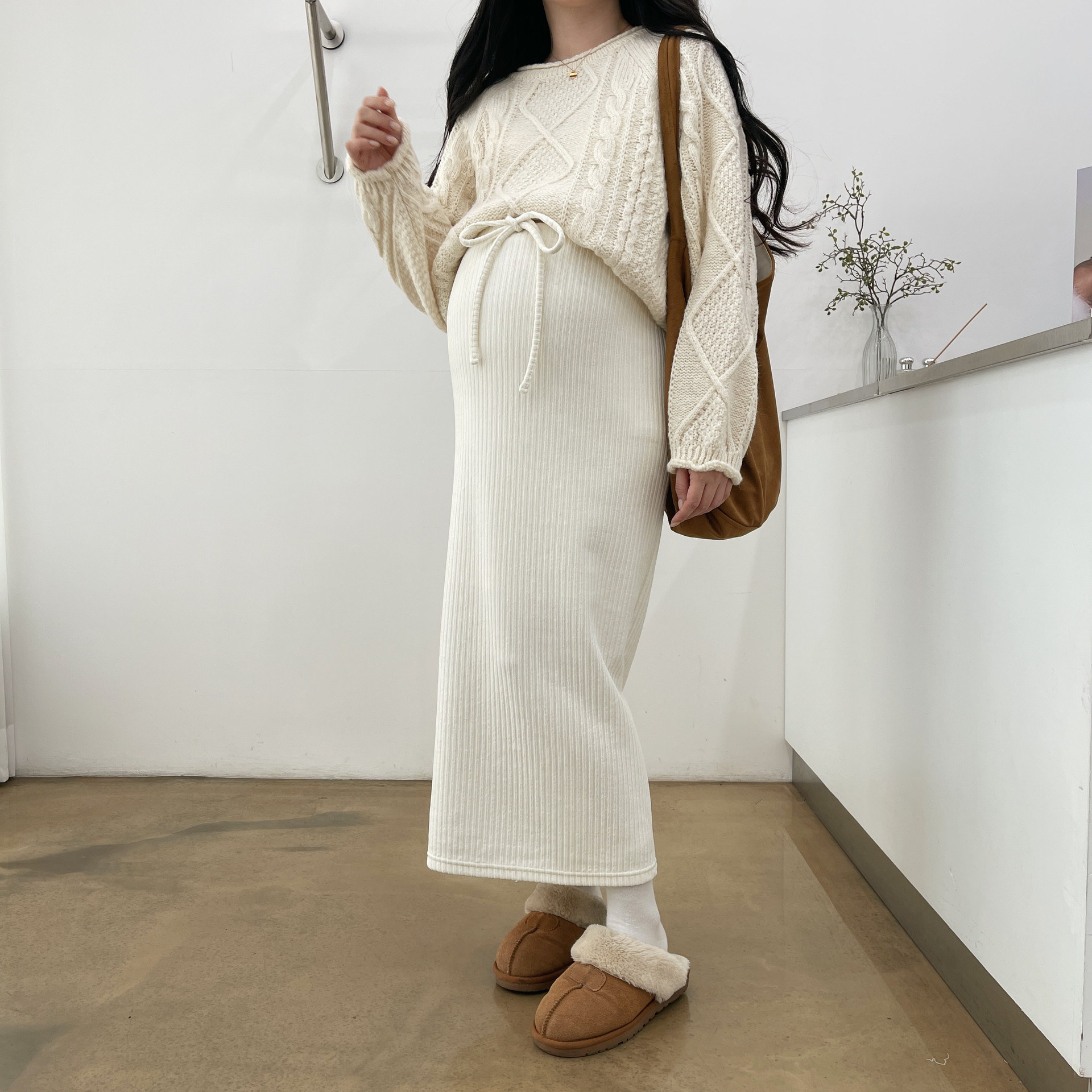 파우더리스커트(크림)+로빈블리니트(아이보리)