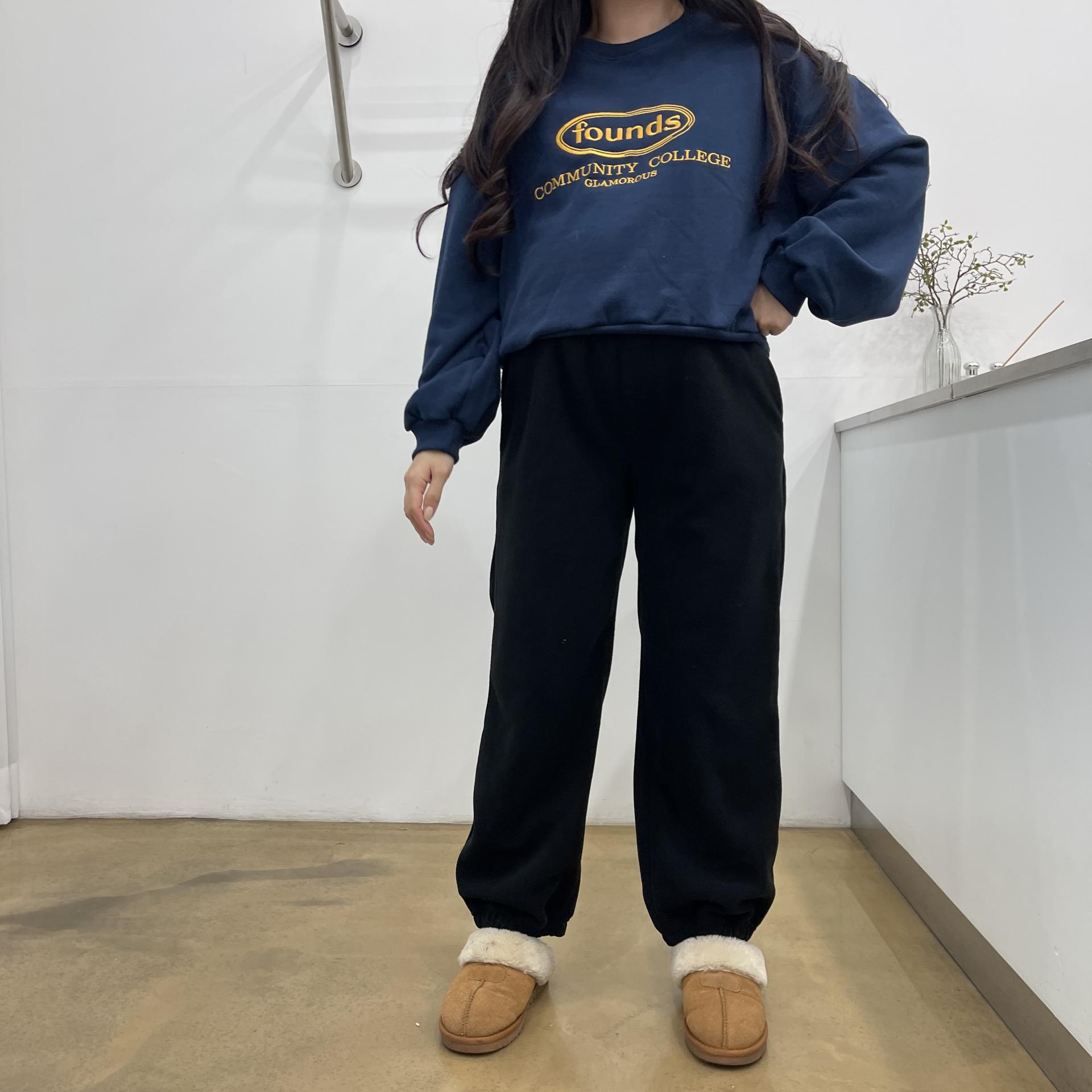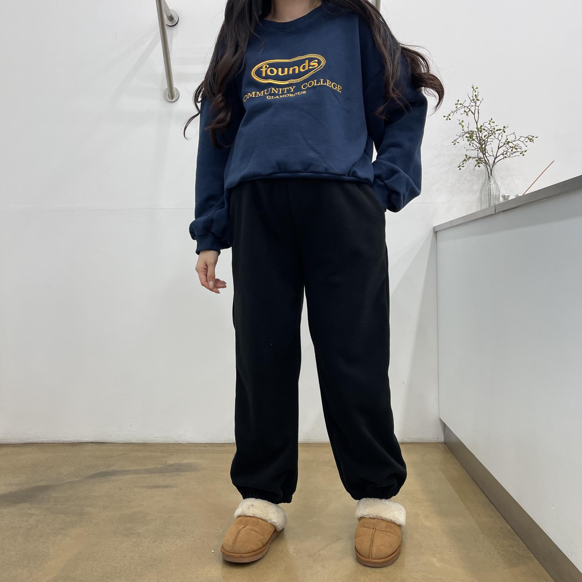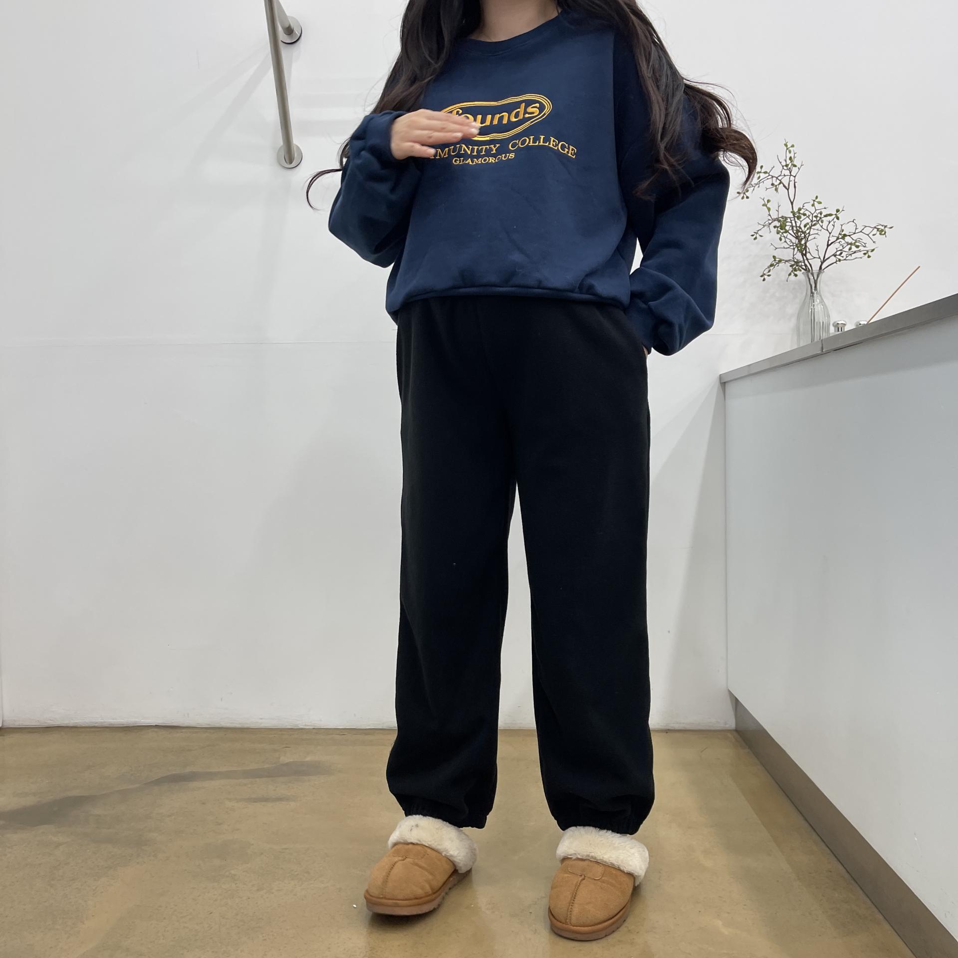 파운드맨투맨(네이비) + 임부후리스조거팬츠(블랙)