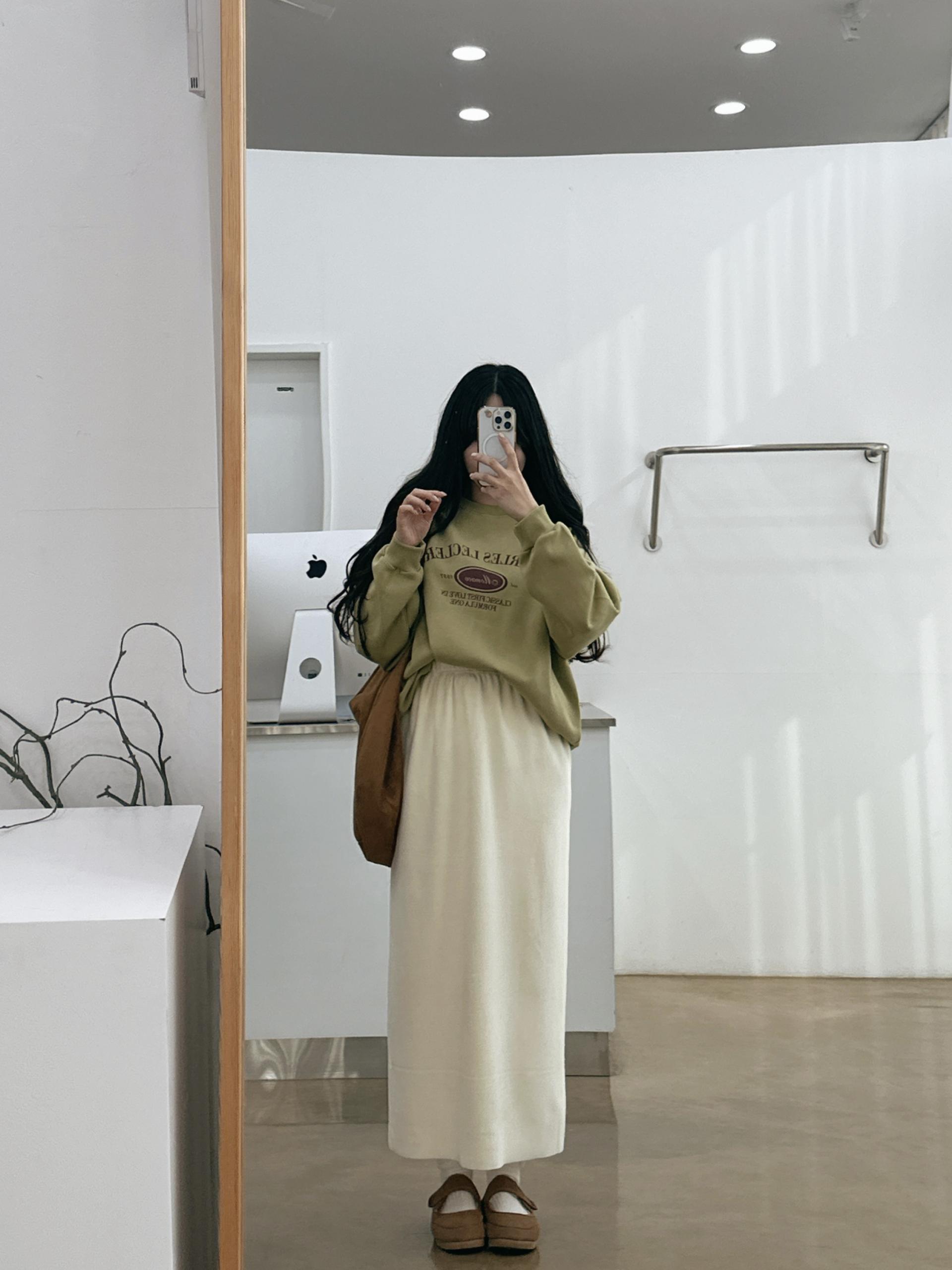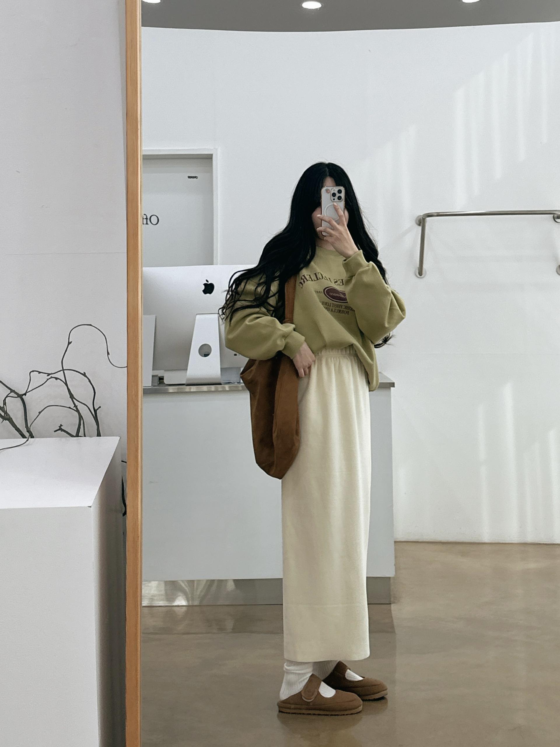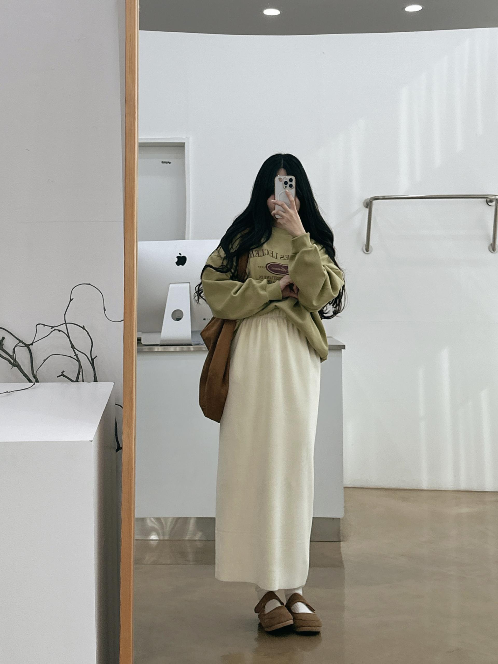 <같이코디한 스커트는 벨로아일자스커트 / 윈터,스트링맥시롱스커트 입니다>