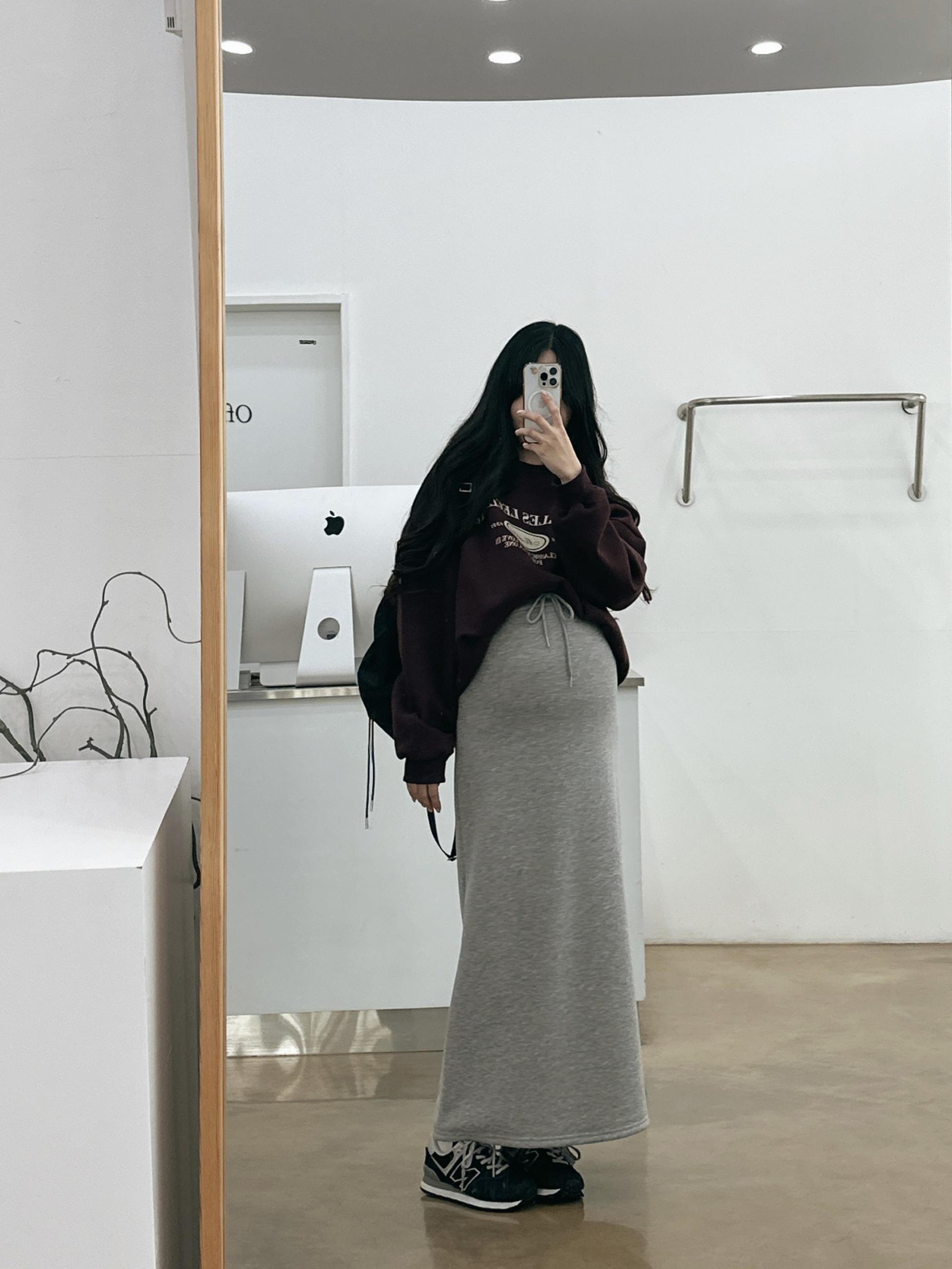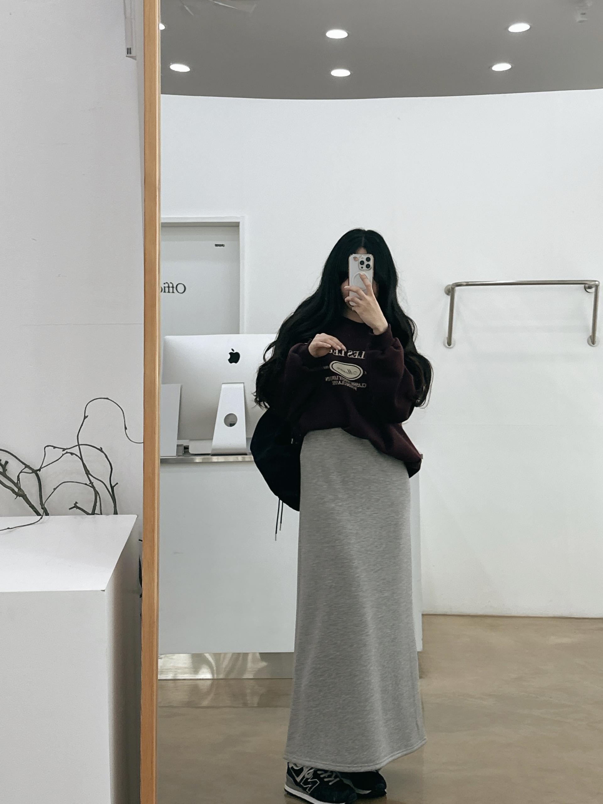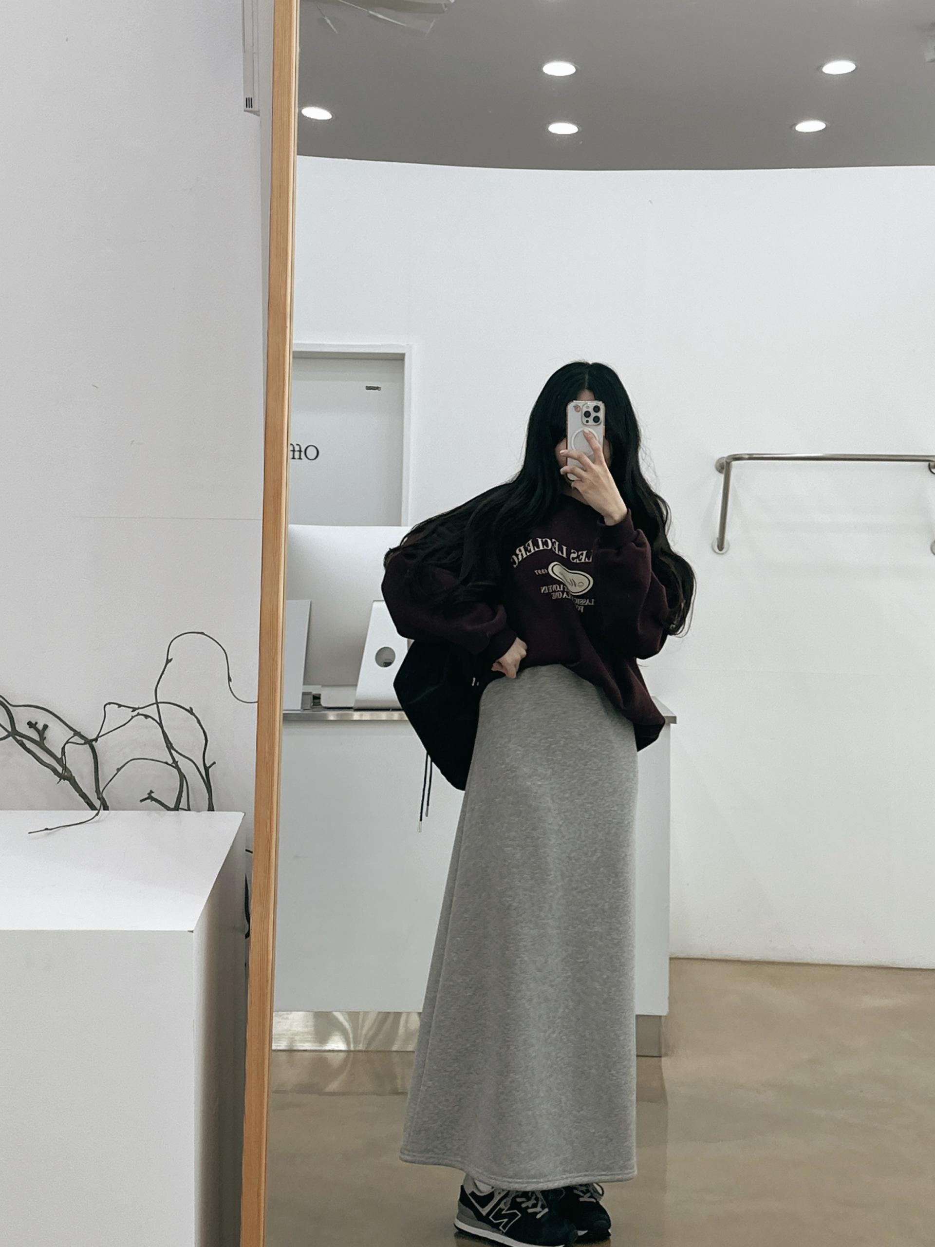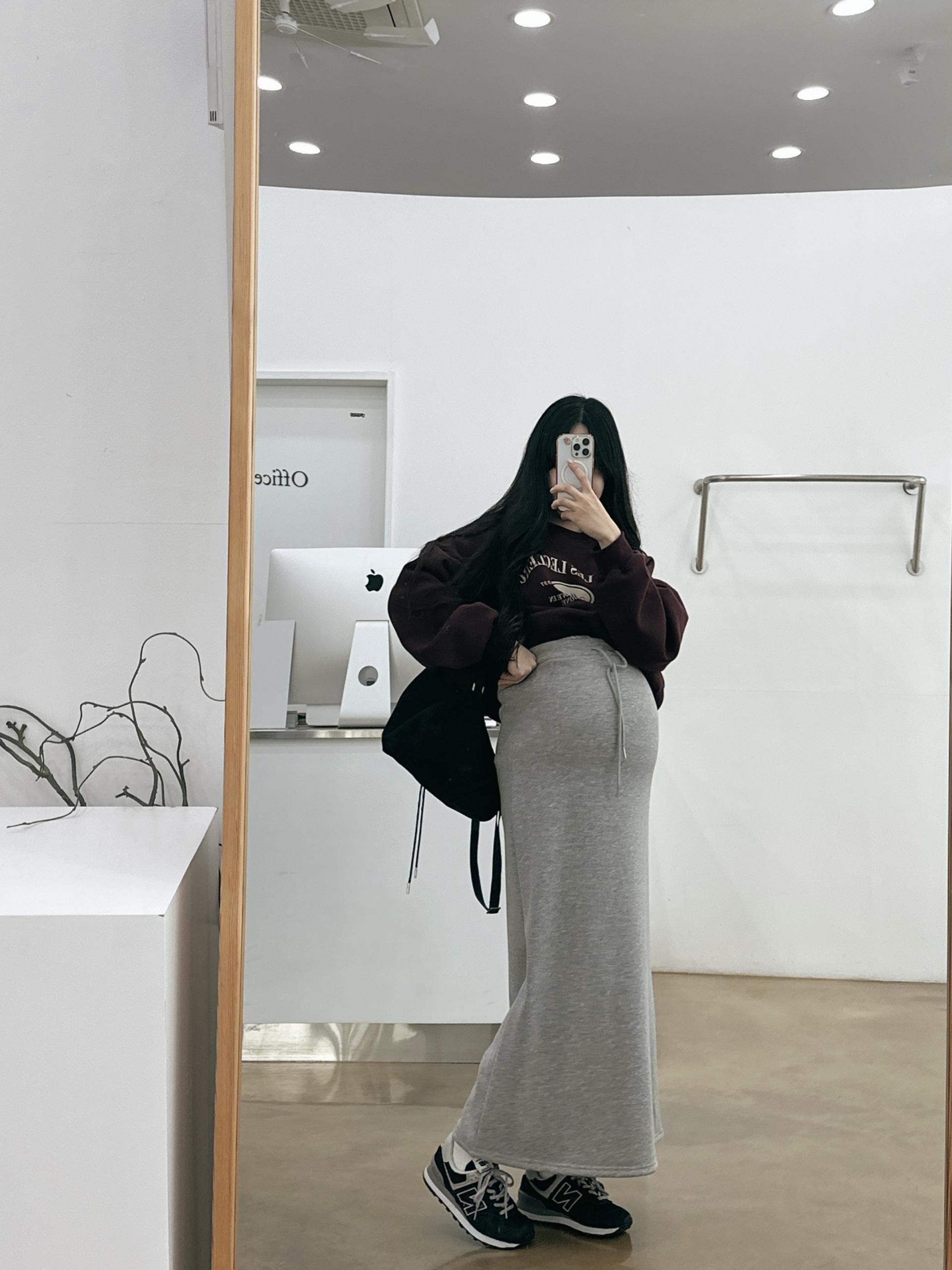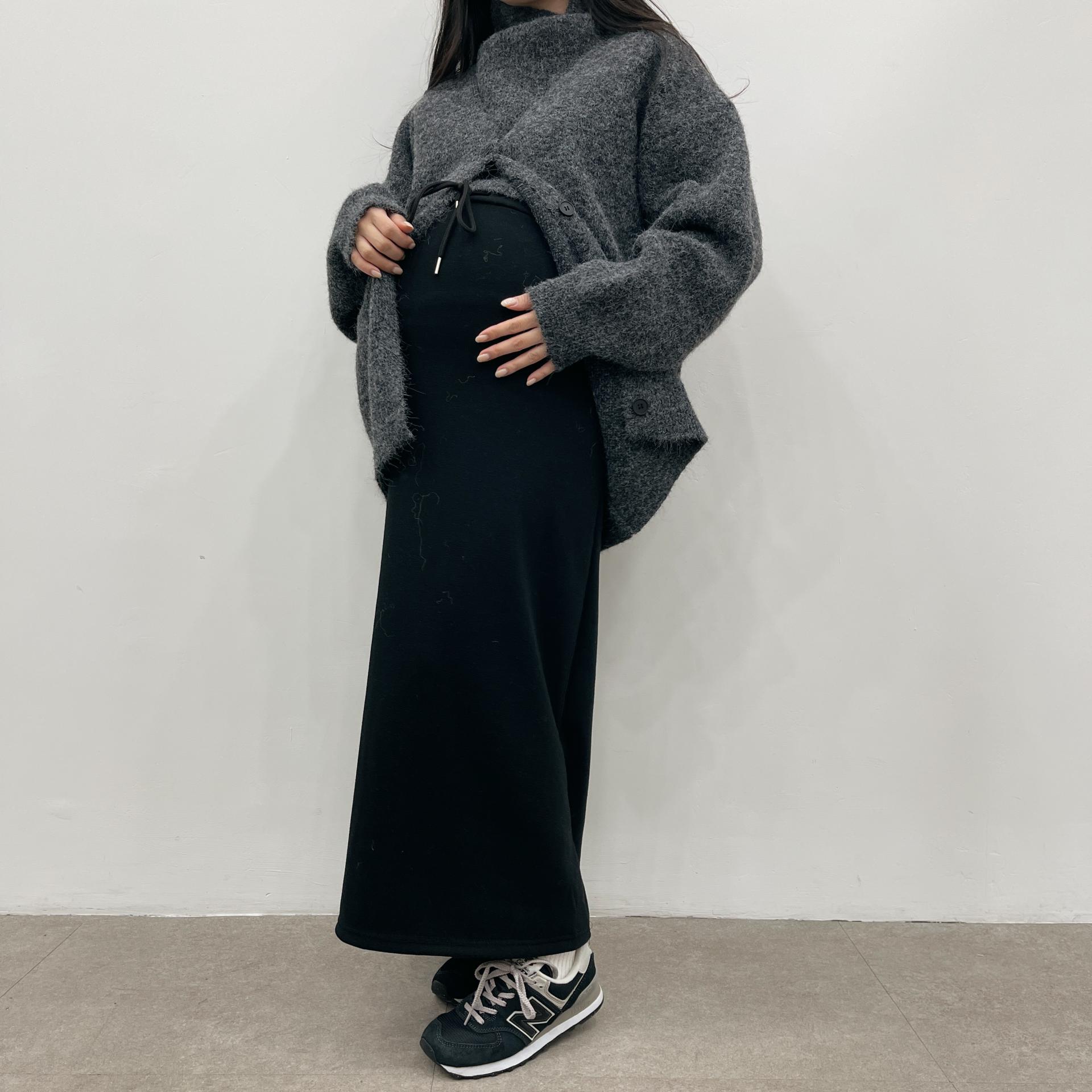 허리는 스트링으로 사이즈구애 없이 입으실 수 있는 겨울 스커트입니다:)