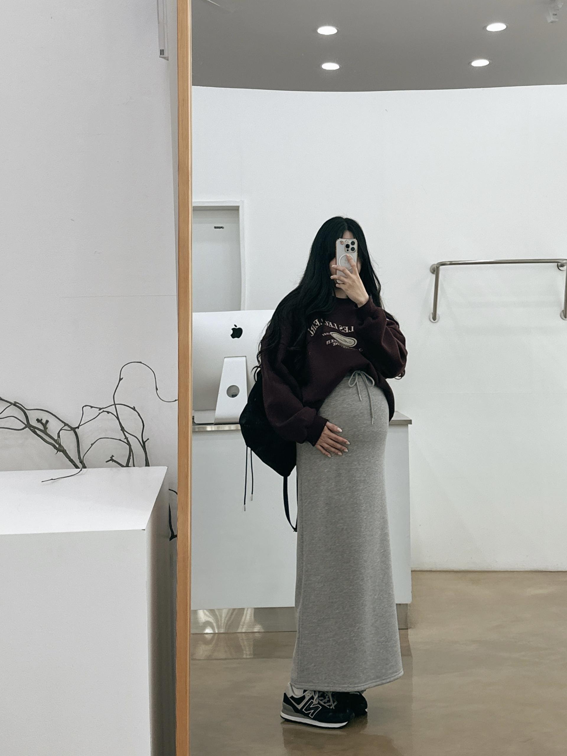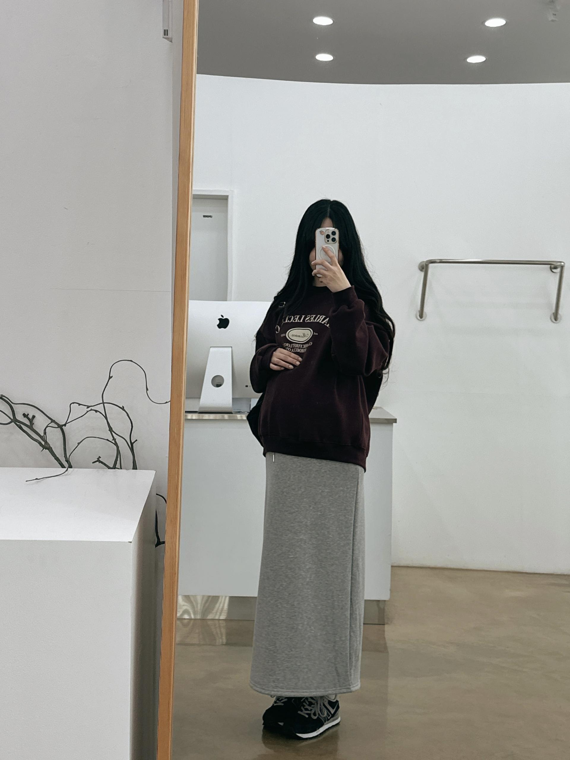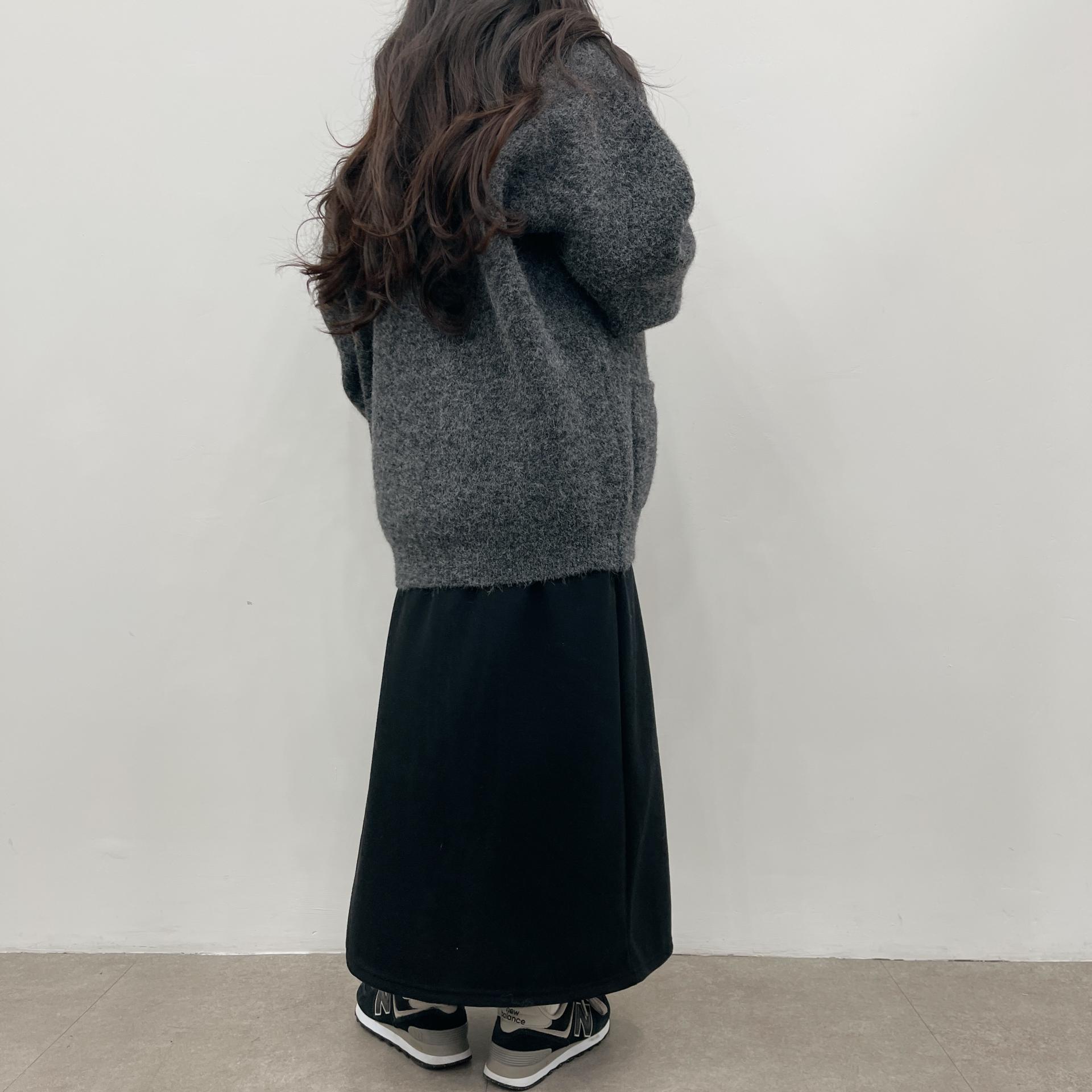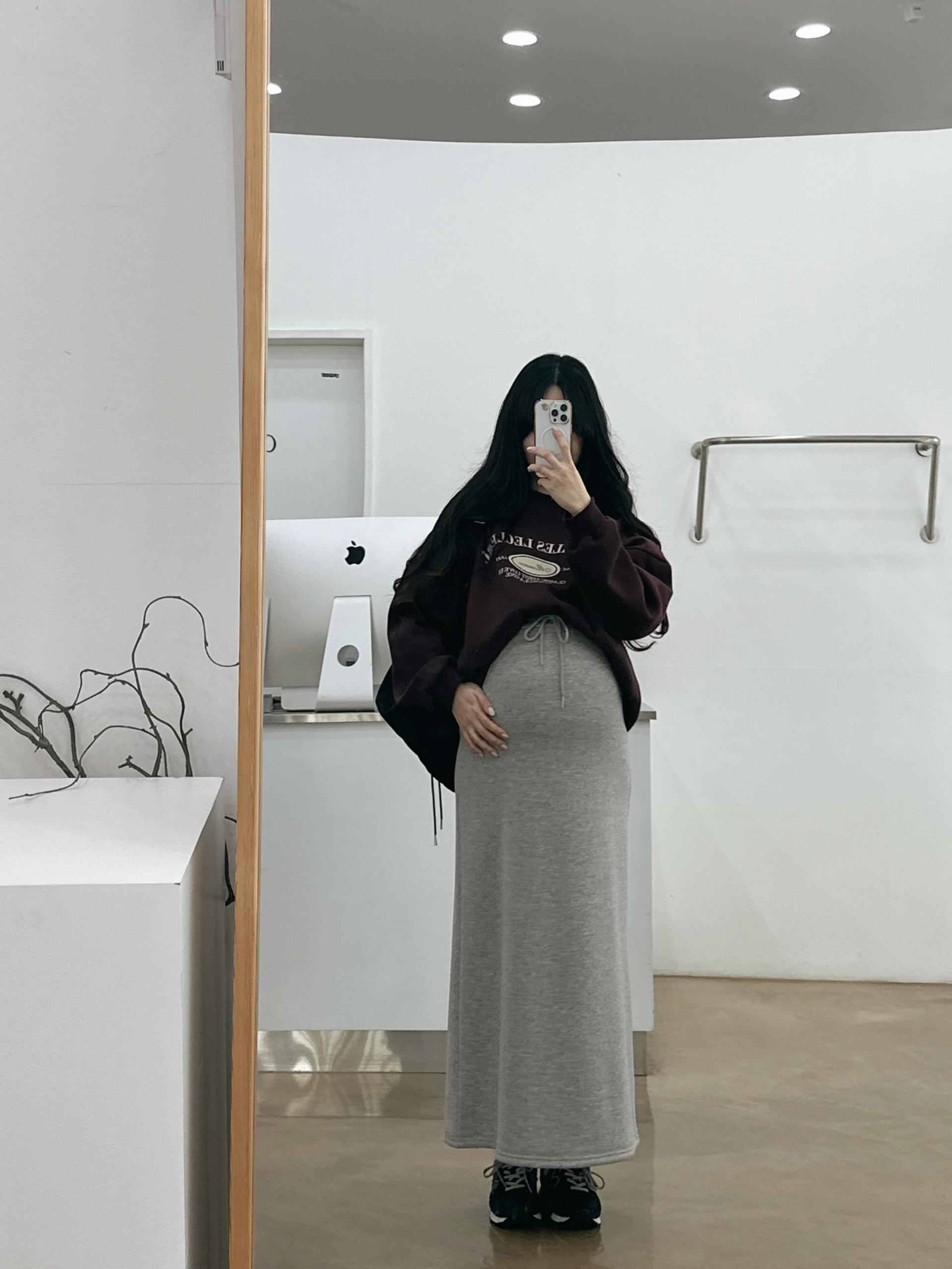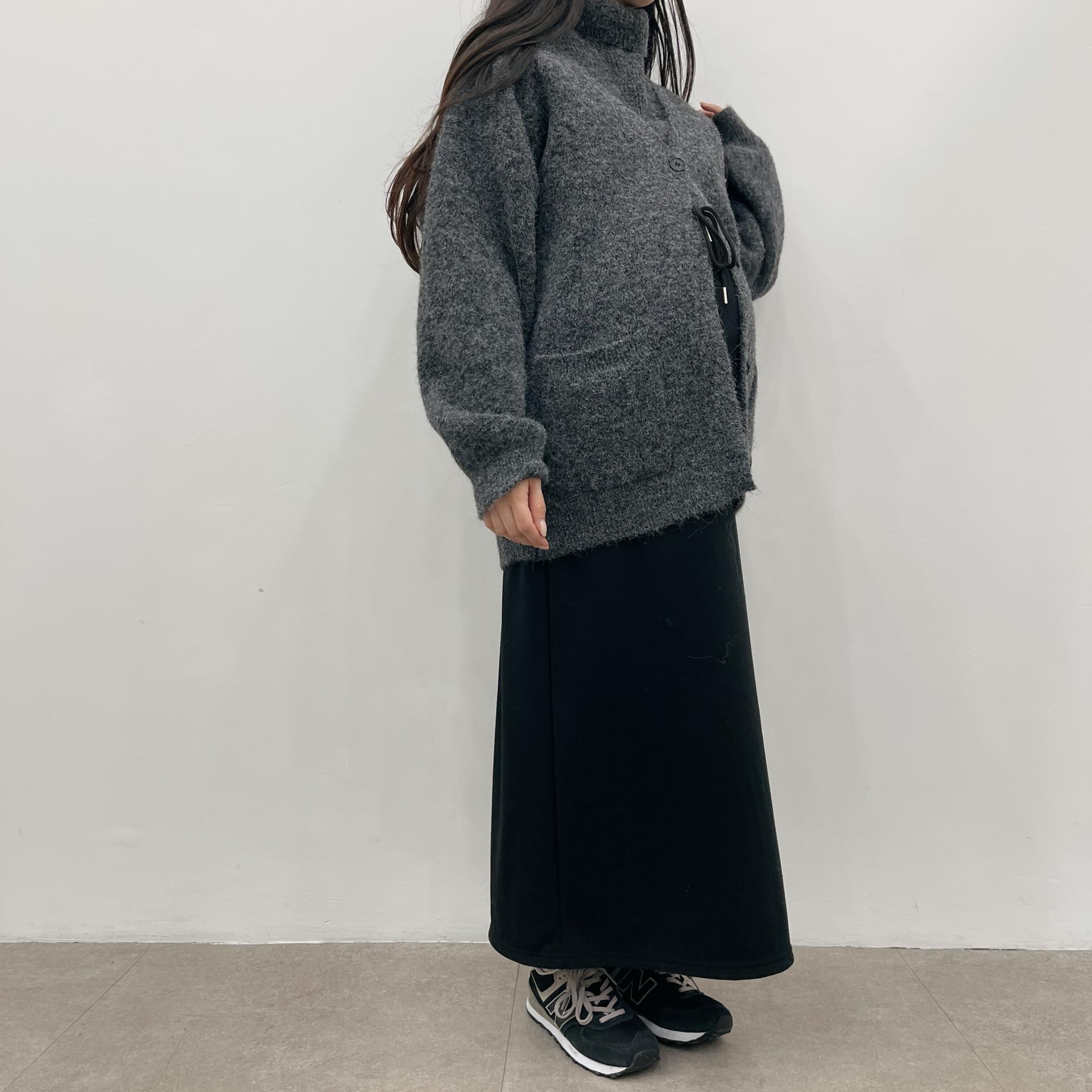 허리는 스트링으로 사이즈구애 없이 입으실 수 있는 겨울 스커트입니다:)