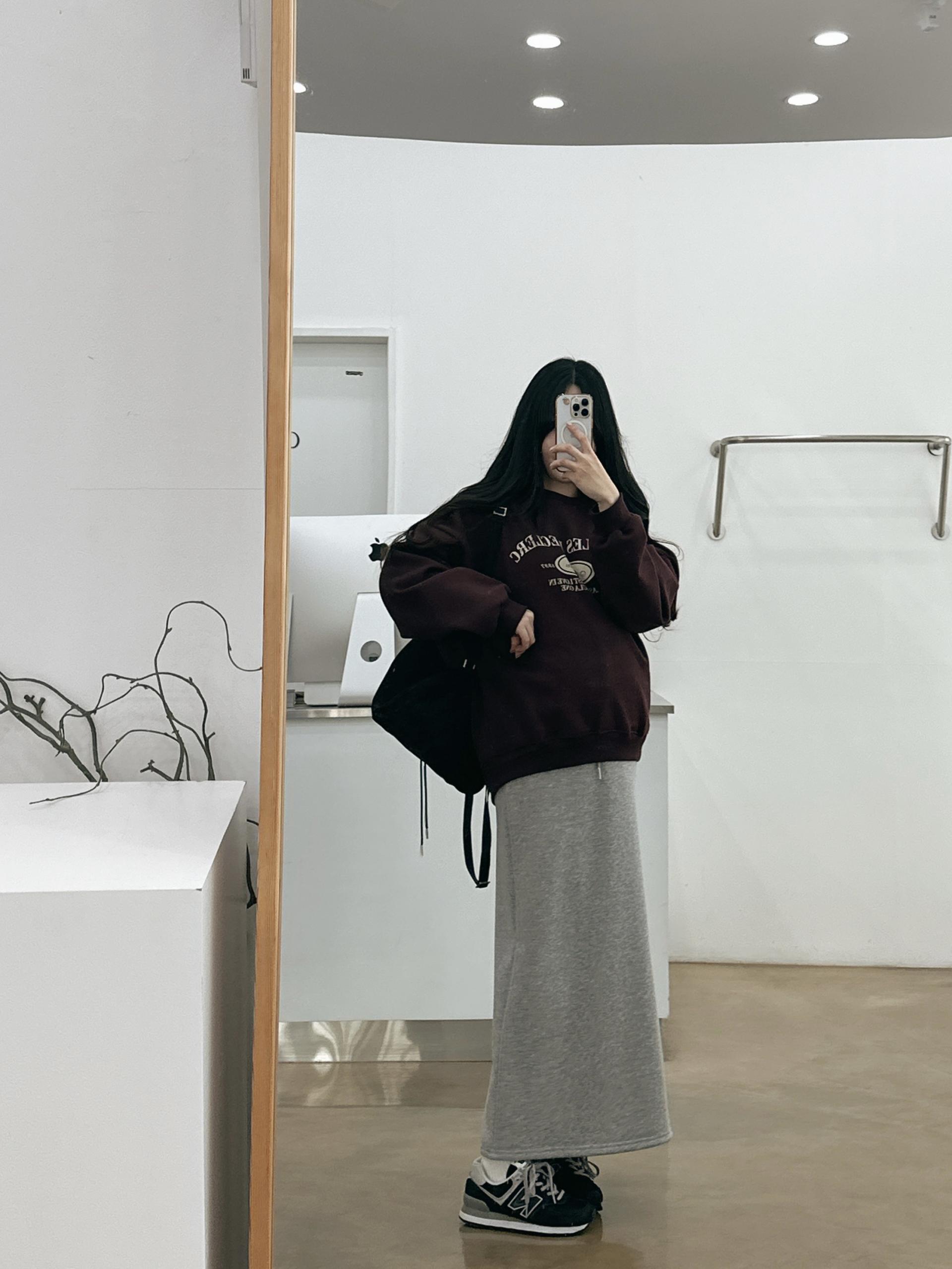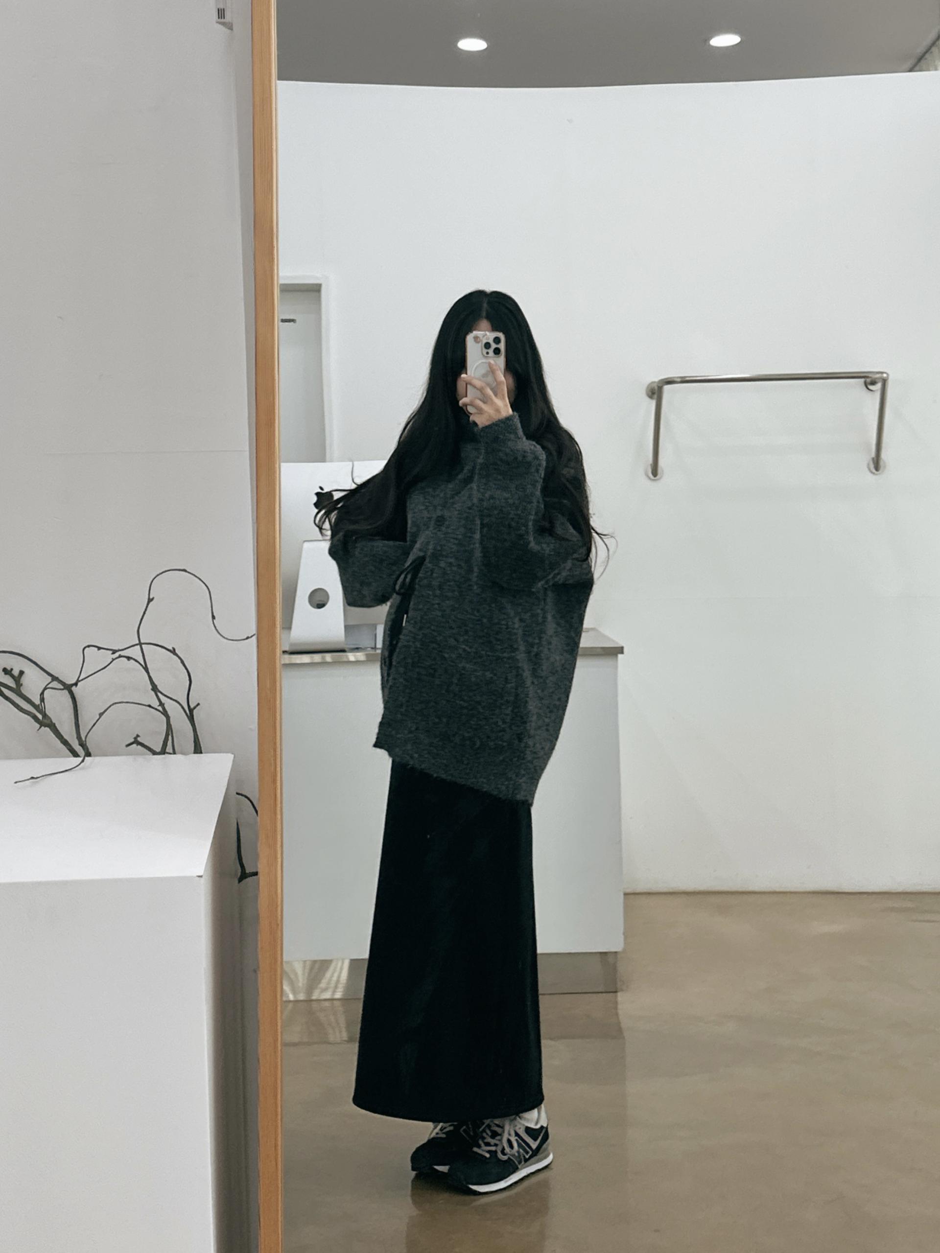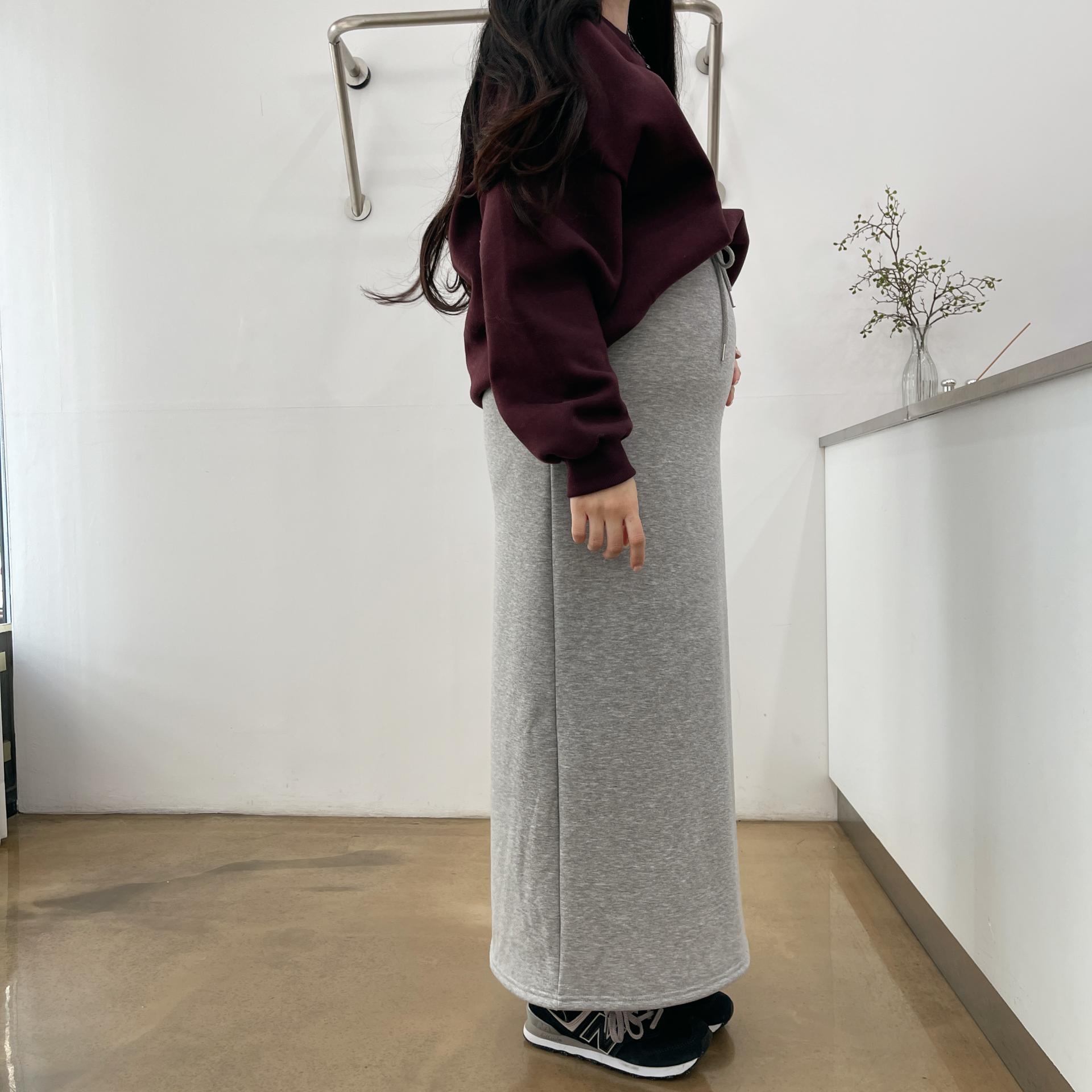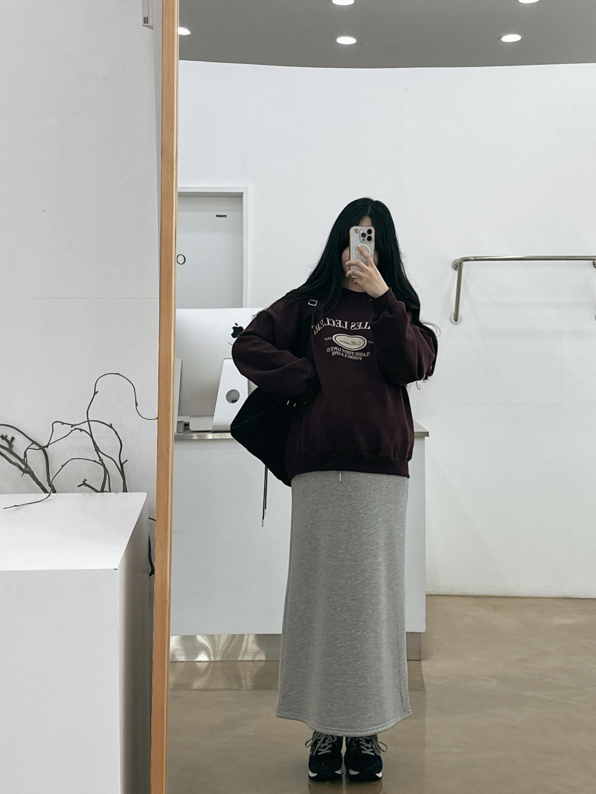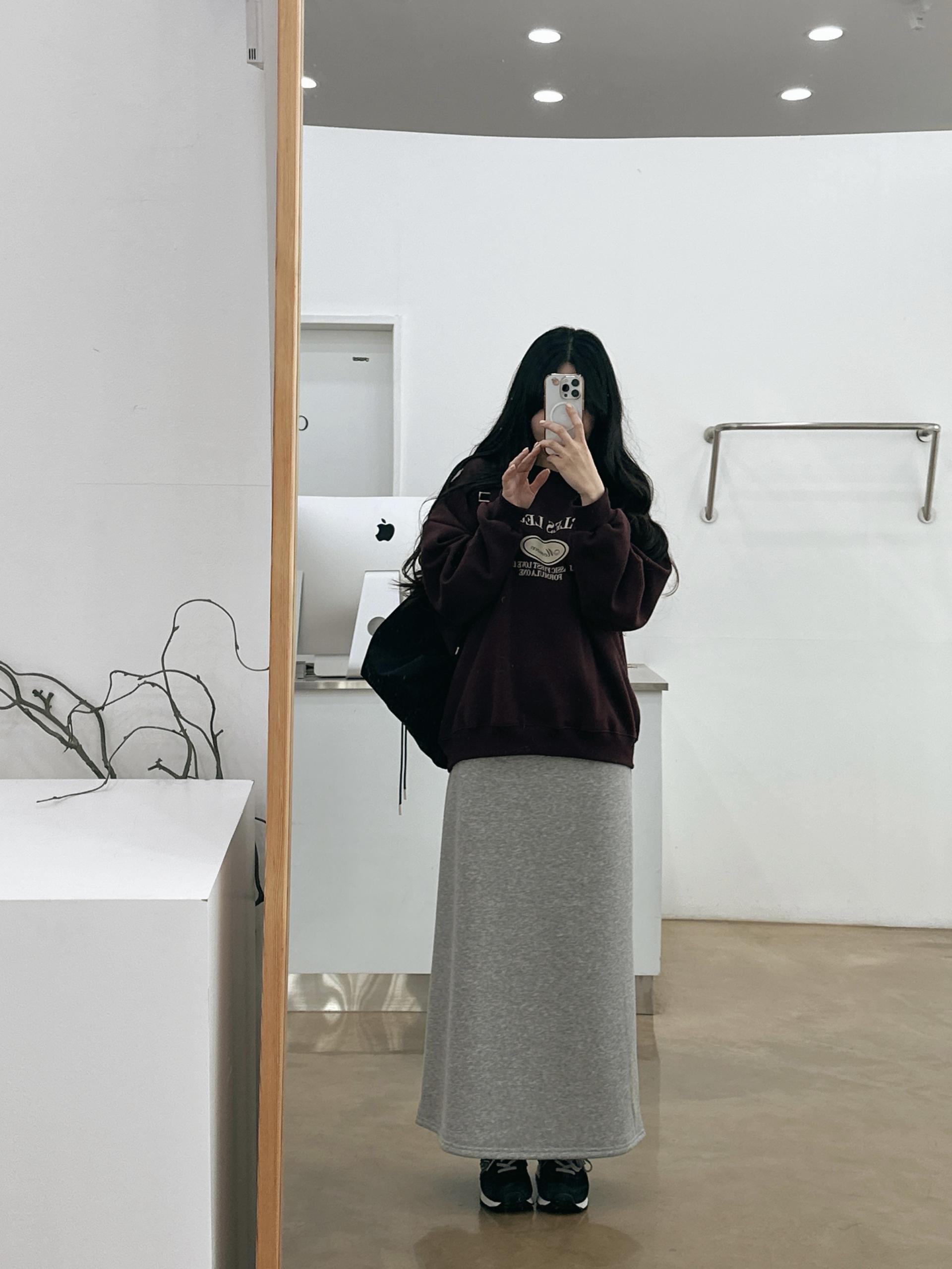 허리는 스트링으로 사이즈구애 없이 입으실 수 있는 겨울 스커트입니다:)