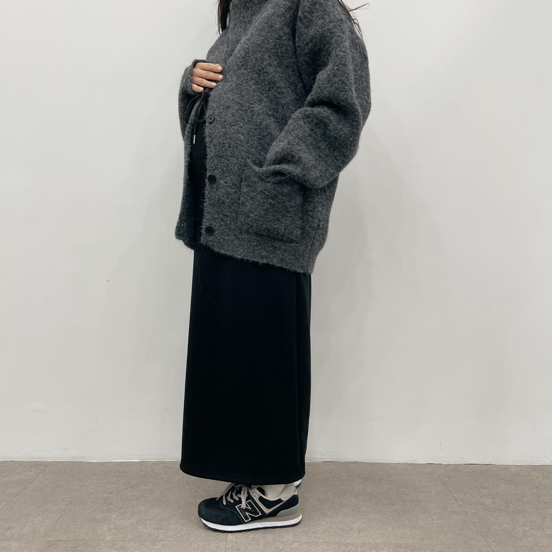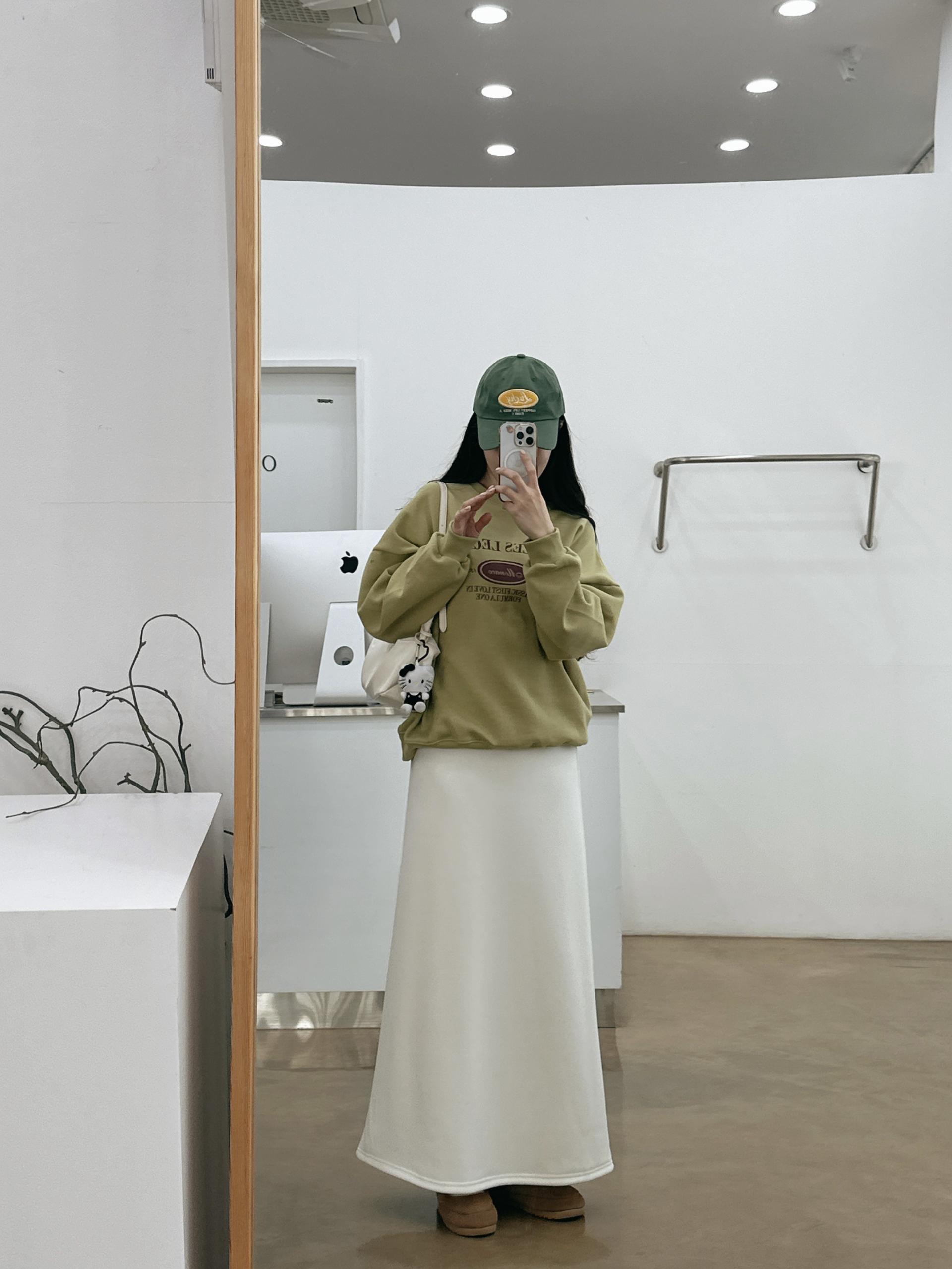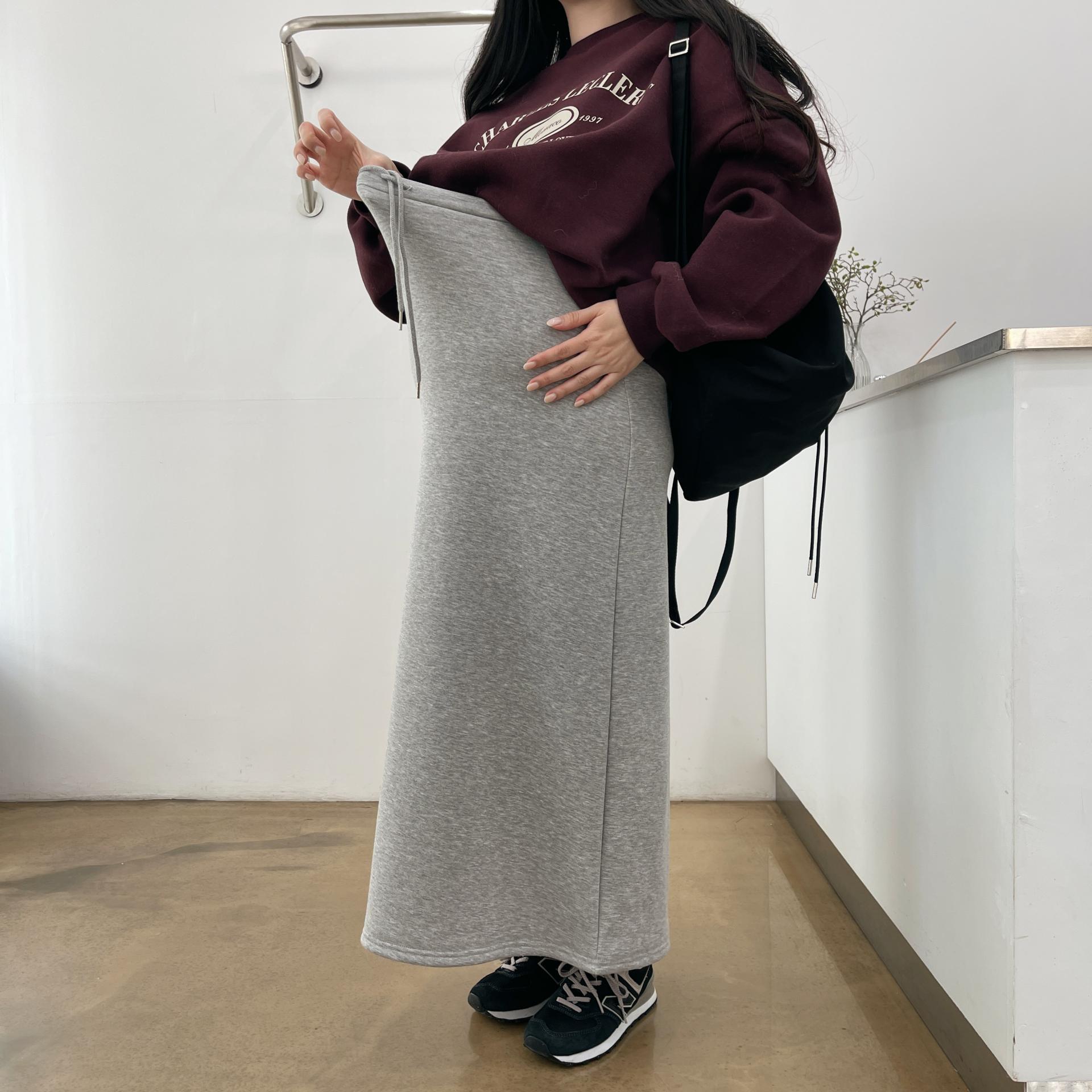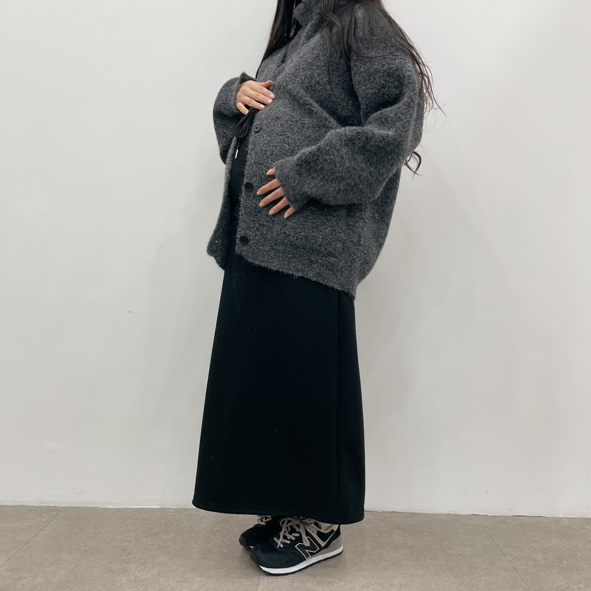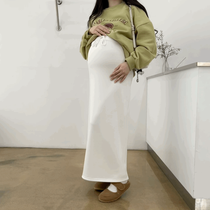 허리는 스트링으로 사이즈구애 없이 입으실 수 있는 겨울 스커트입니다:)