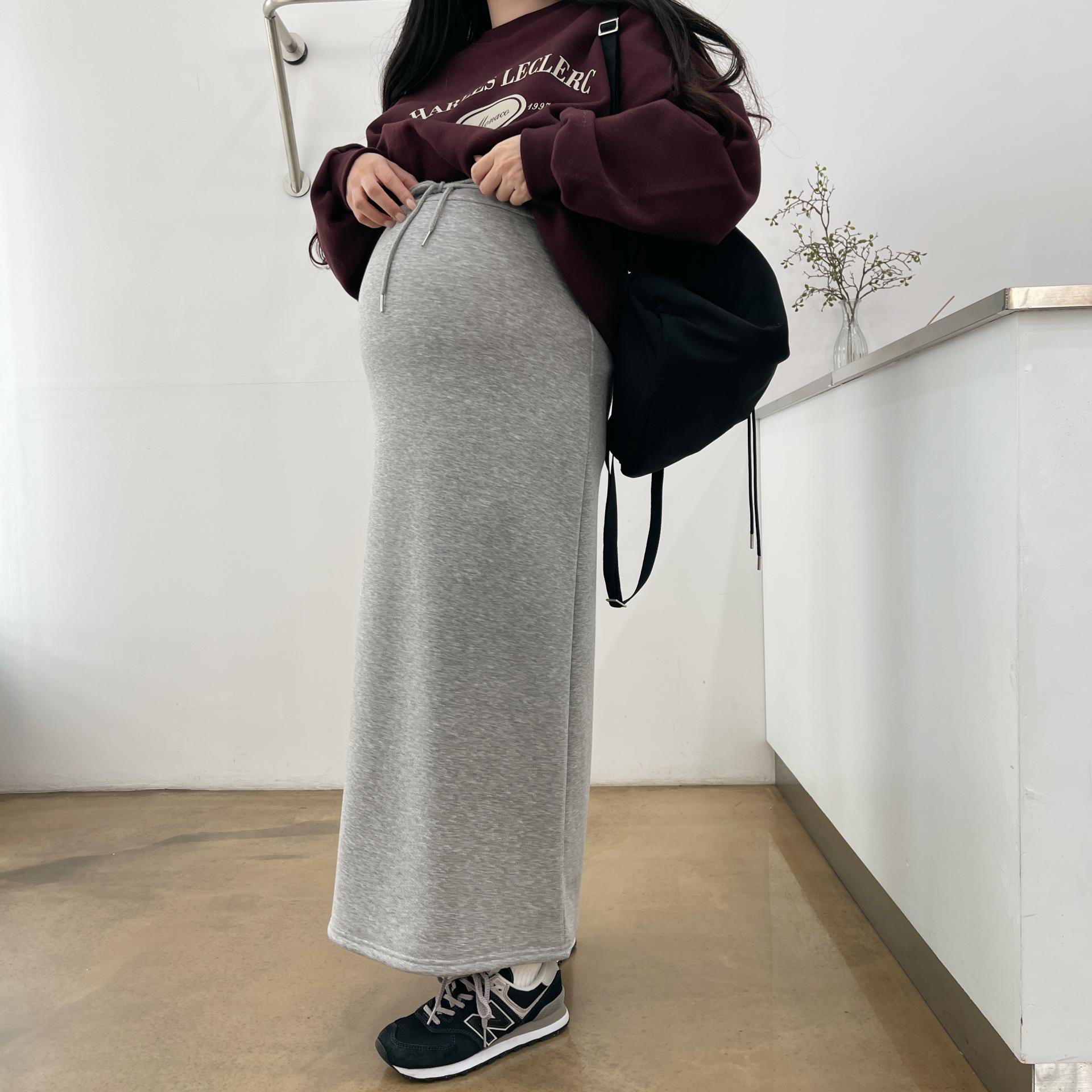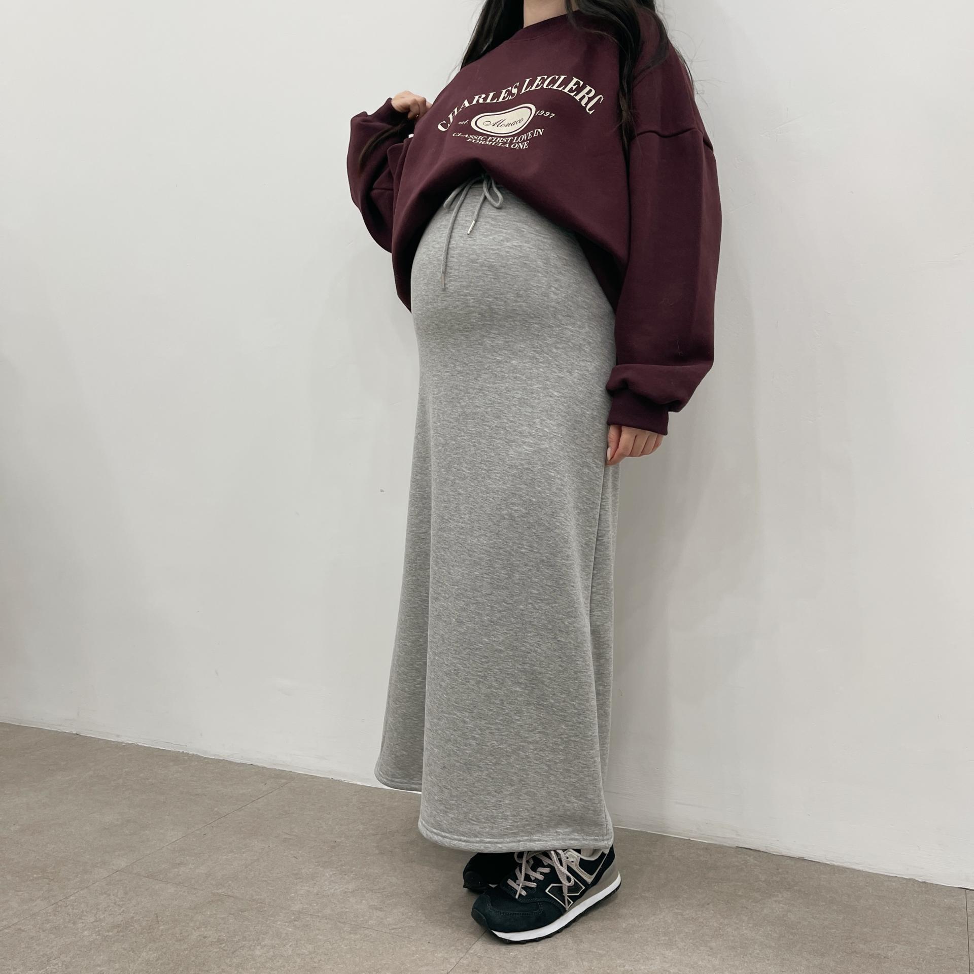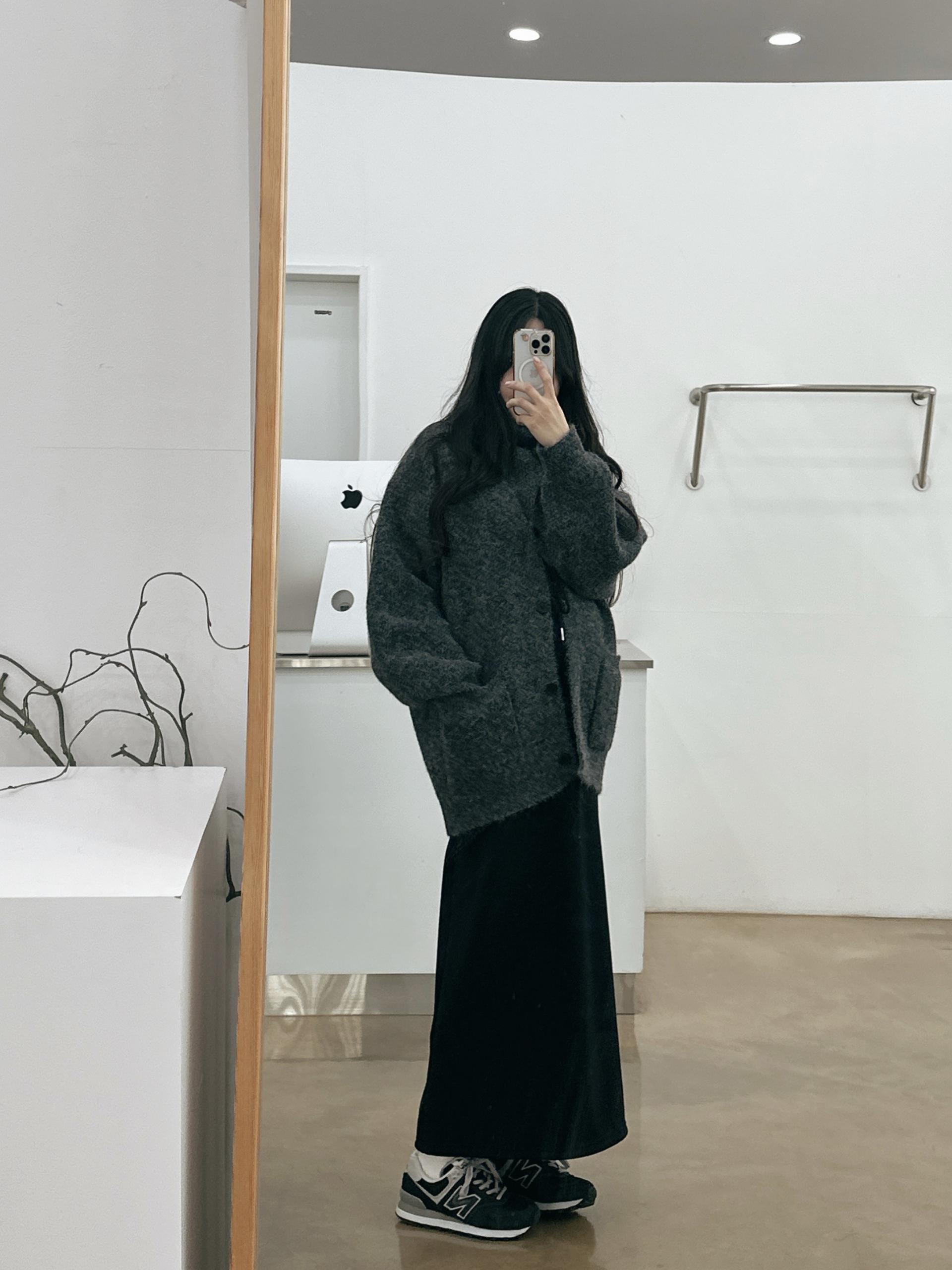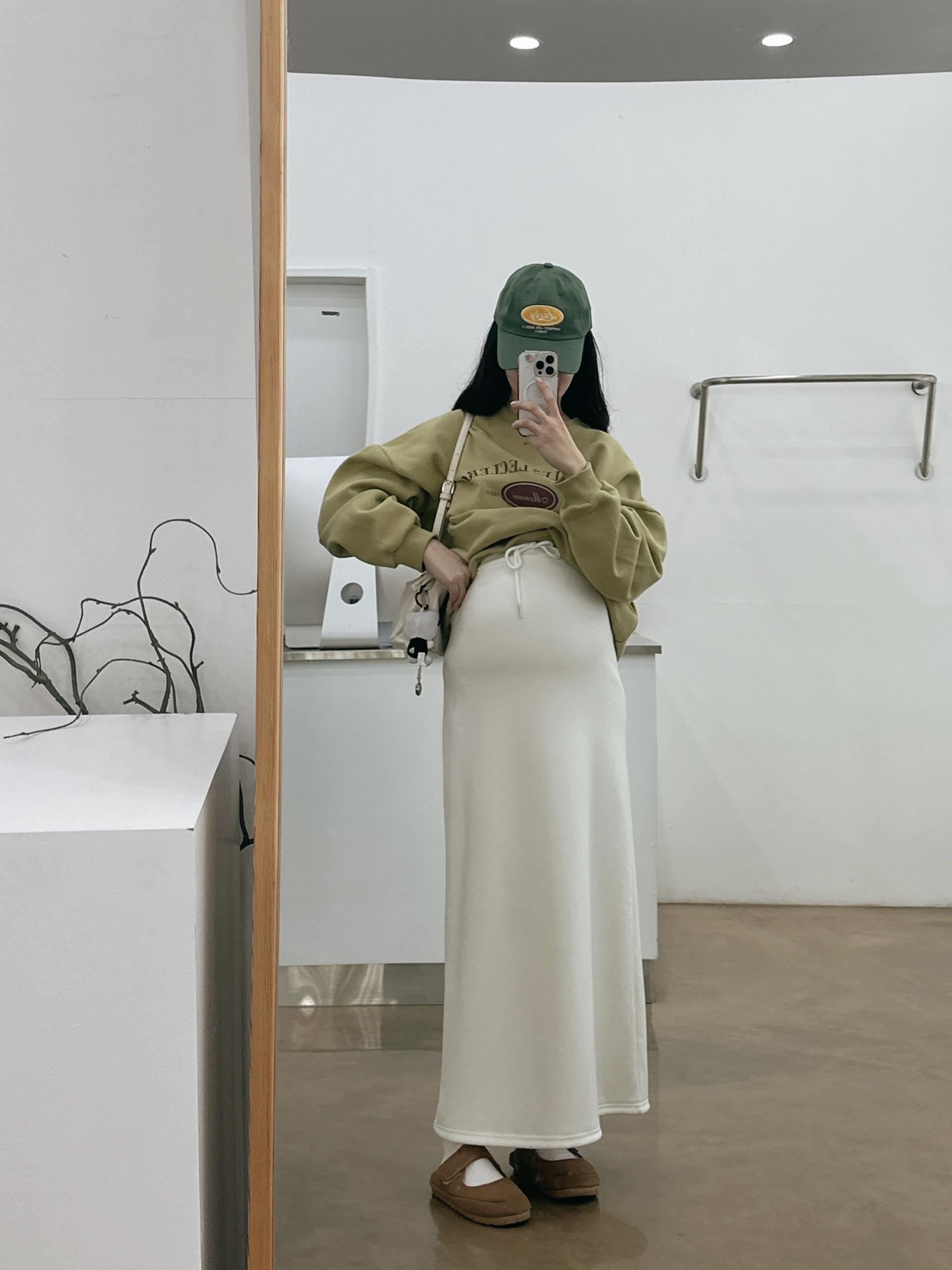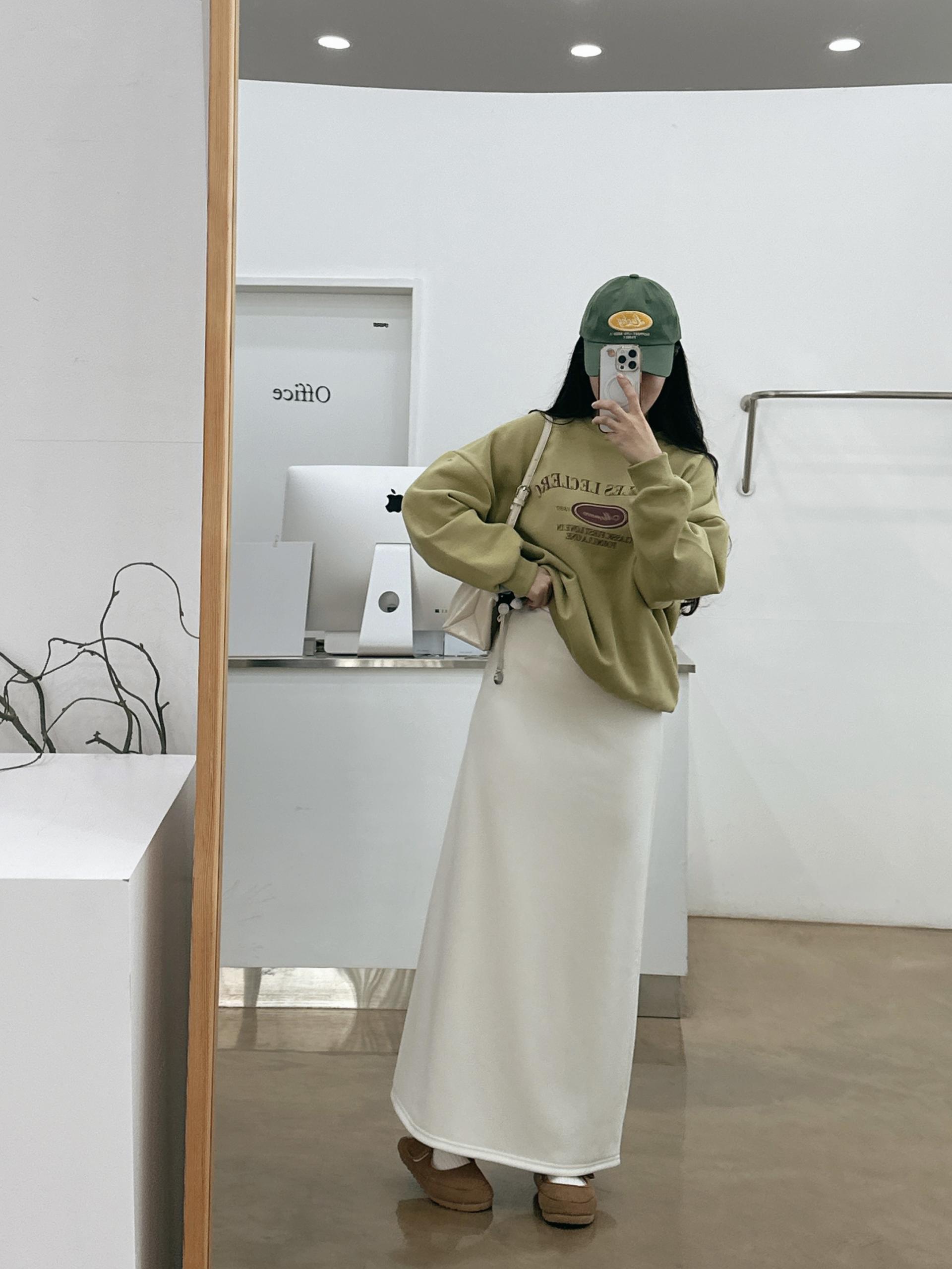 허리는 스트링으로 사이즈구애 없이 입으실 수 있는 겨울 스커트입니다:)
