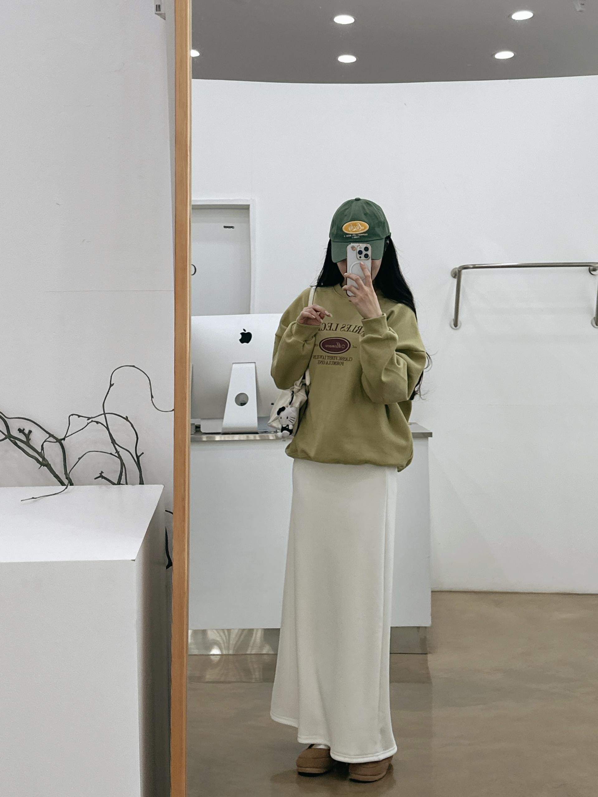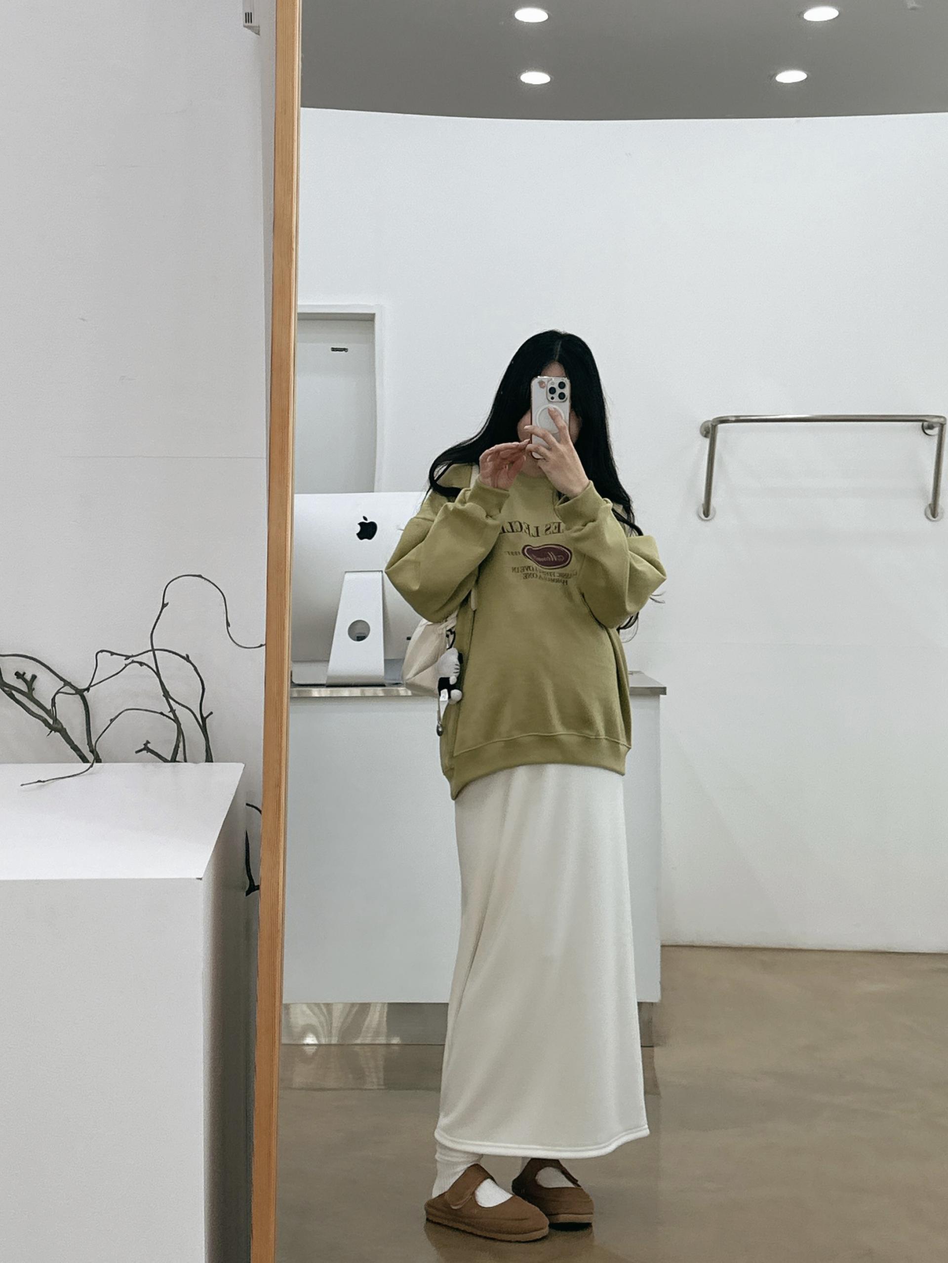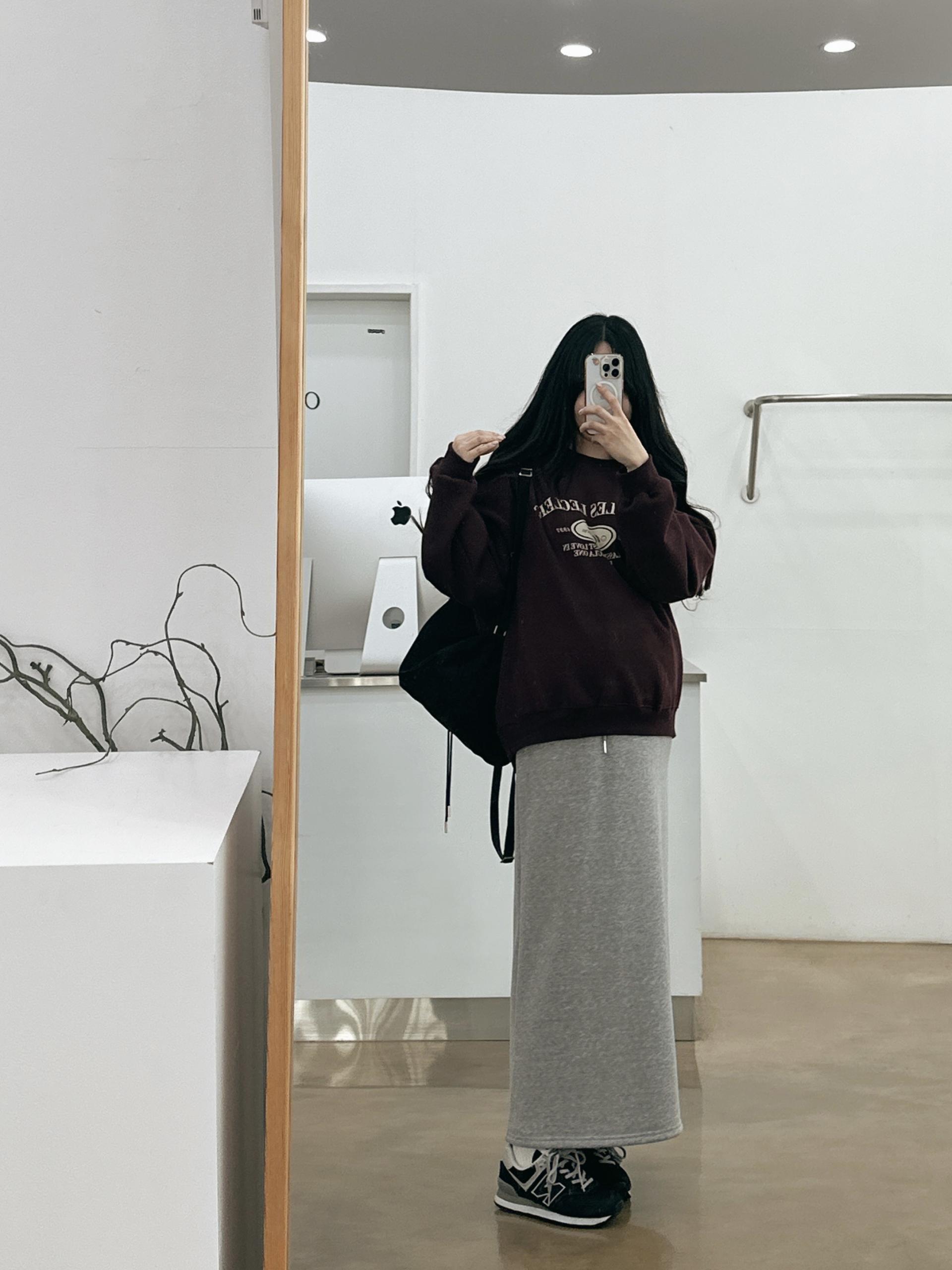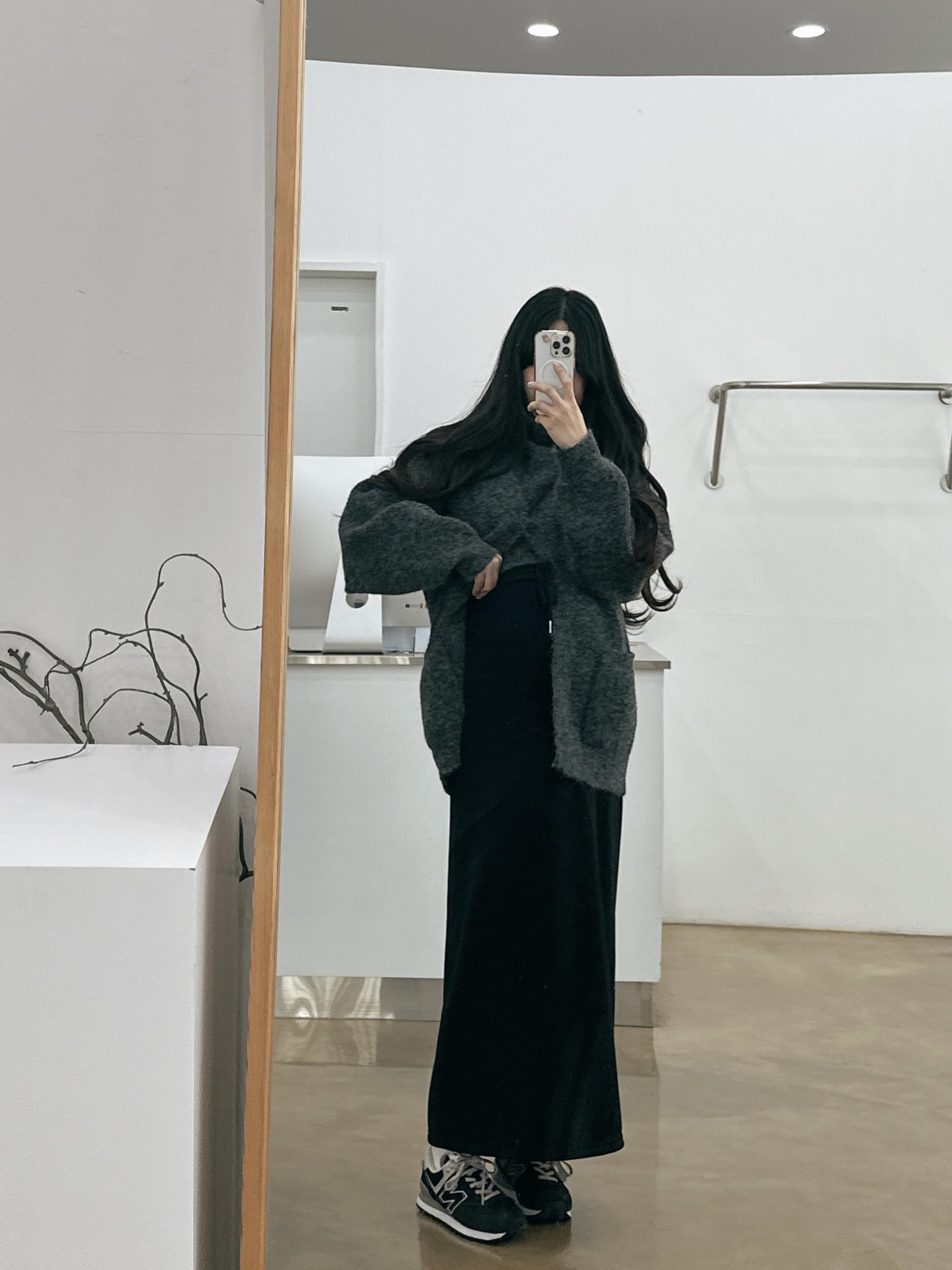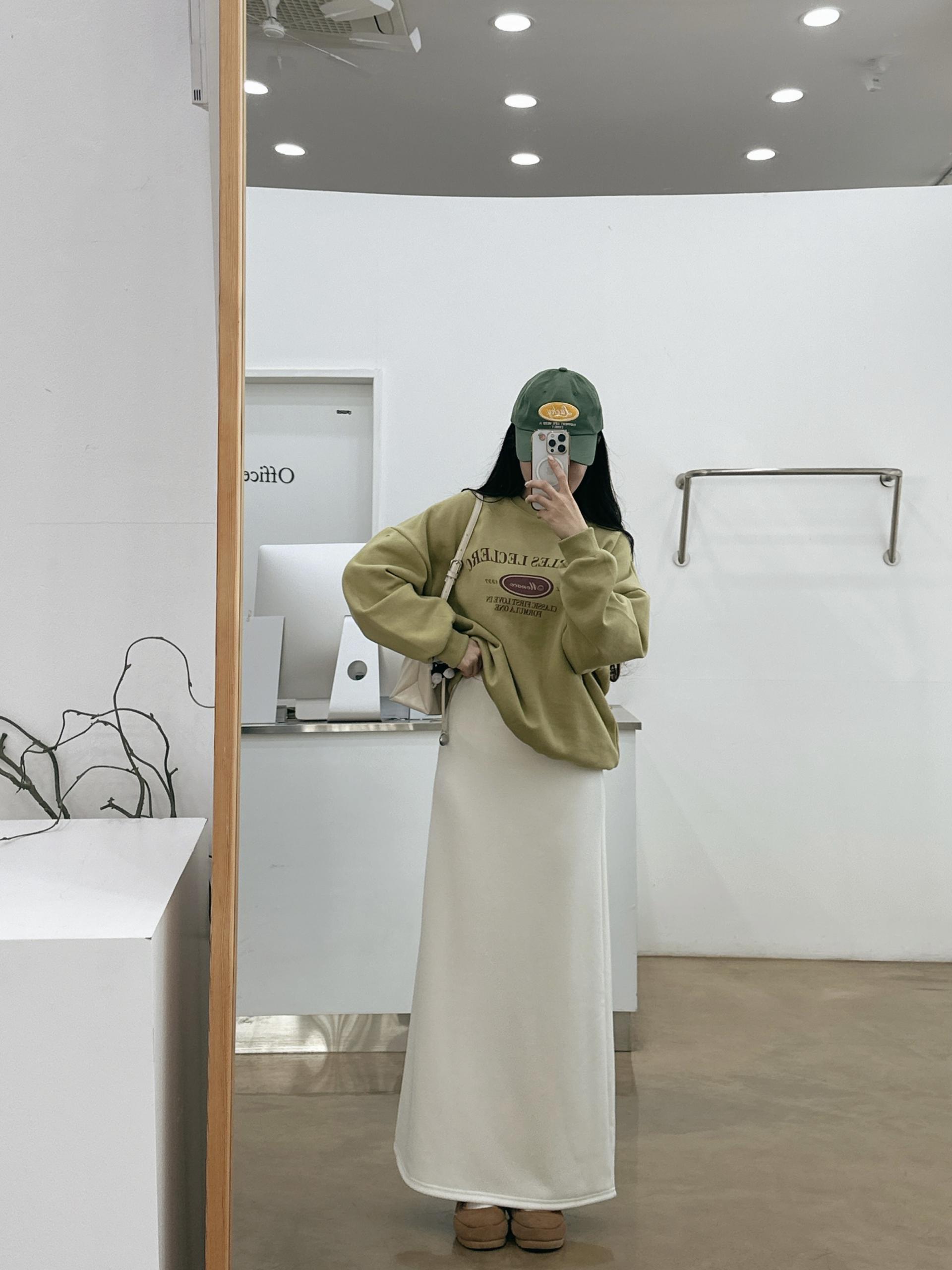 허리는 스트링으로 사이즈구애 없이 입으실 수 있는 겨울 스커트입니다:)
