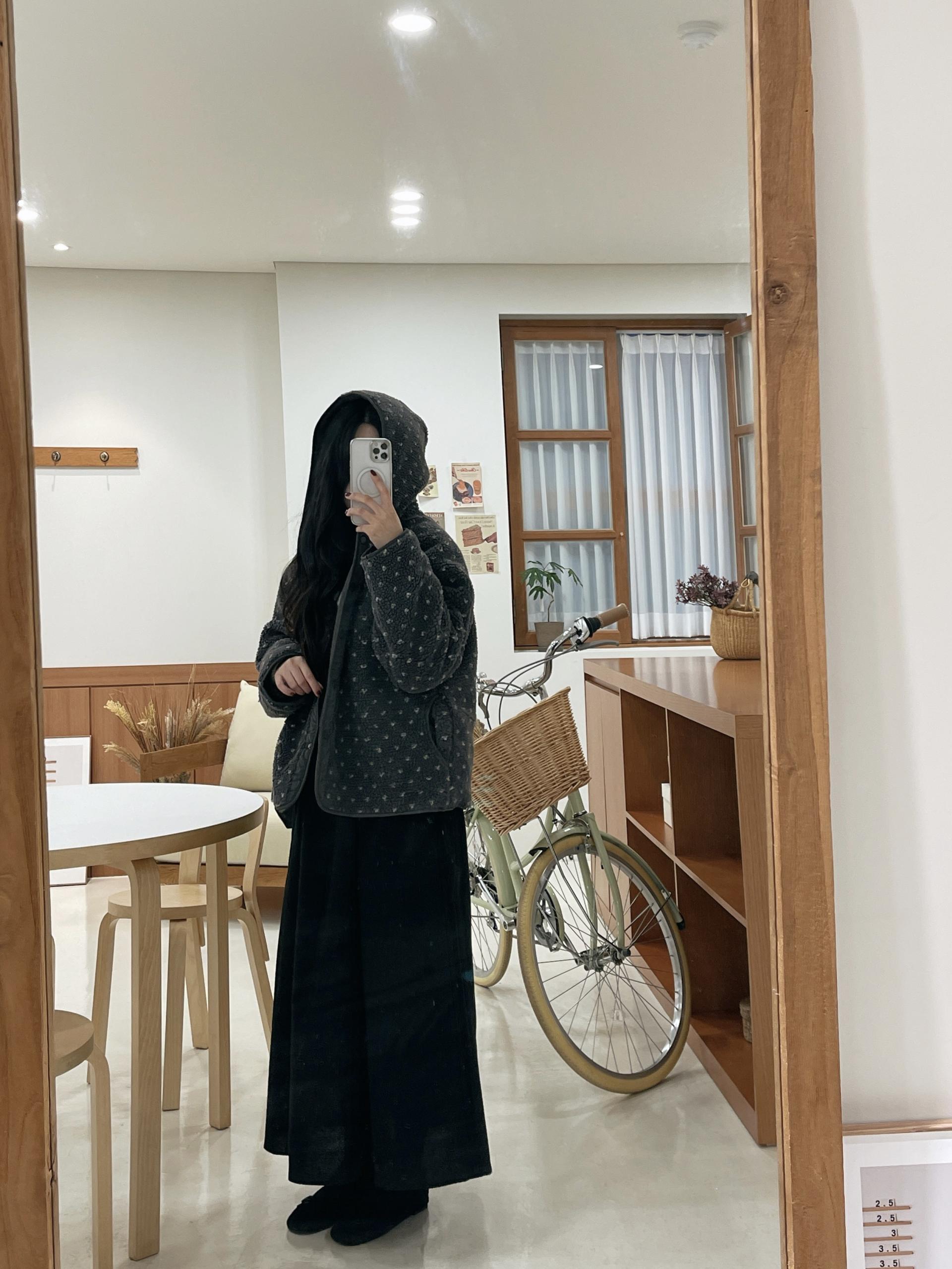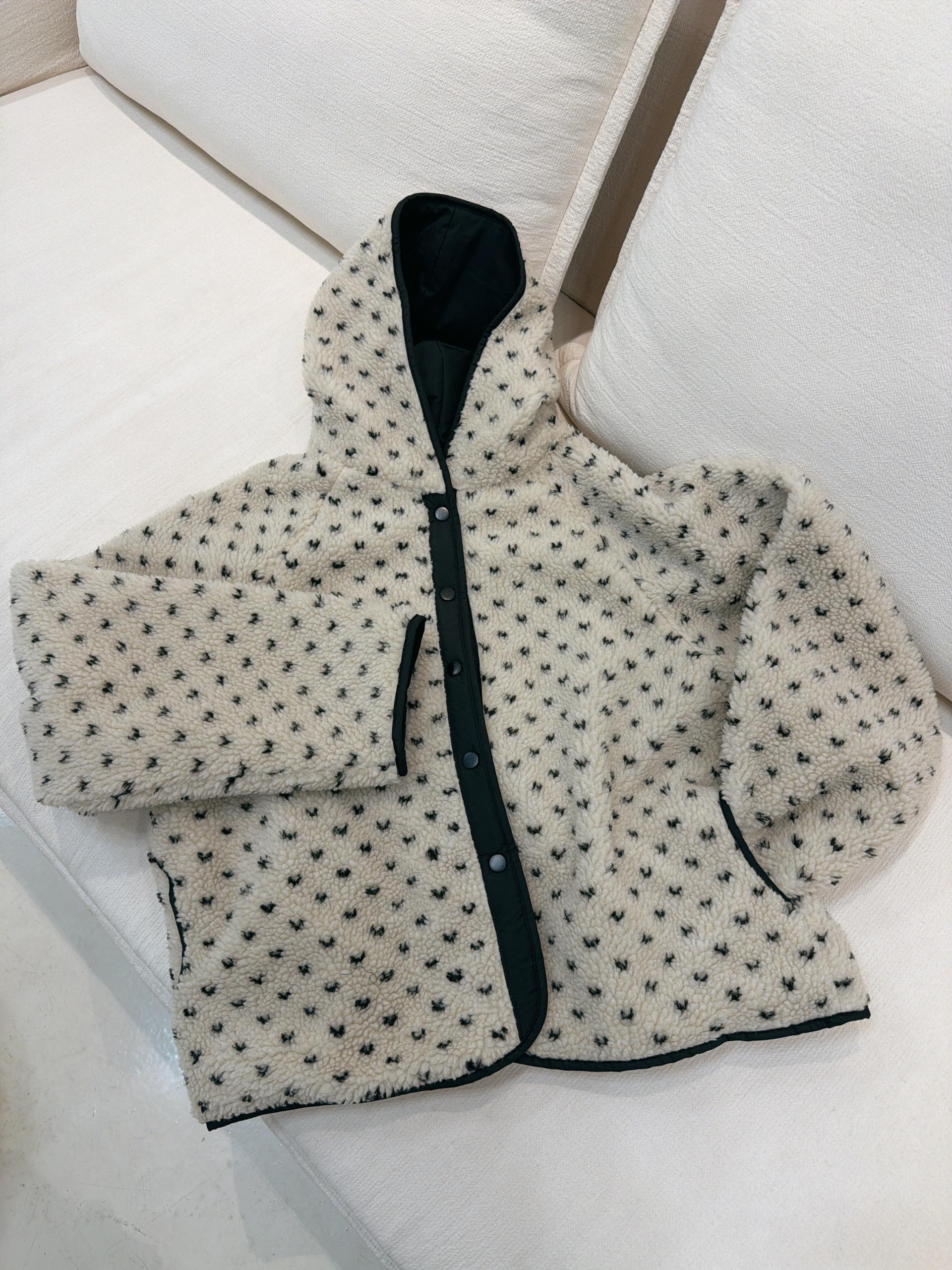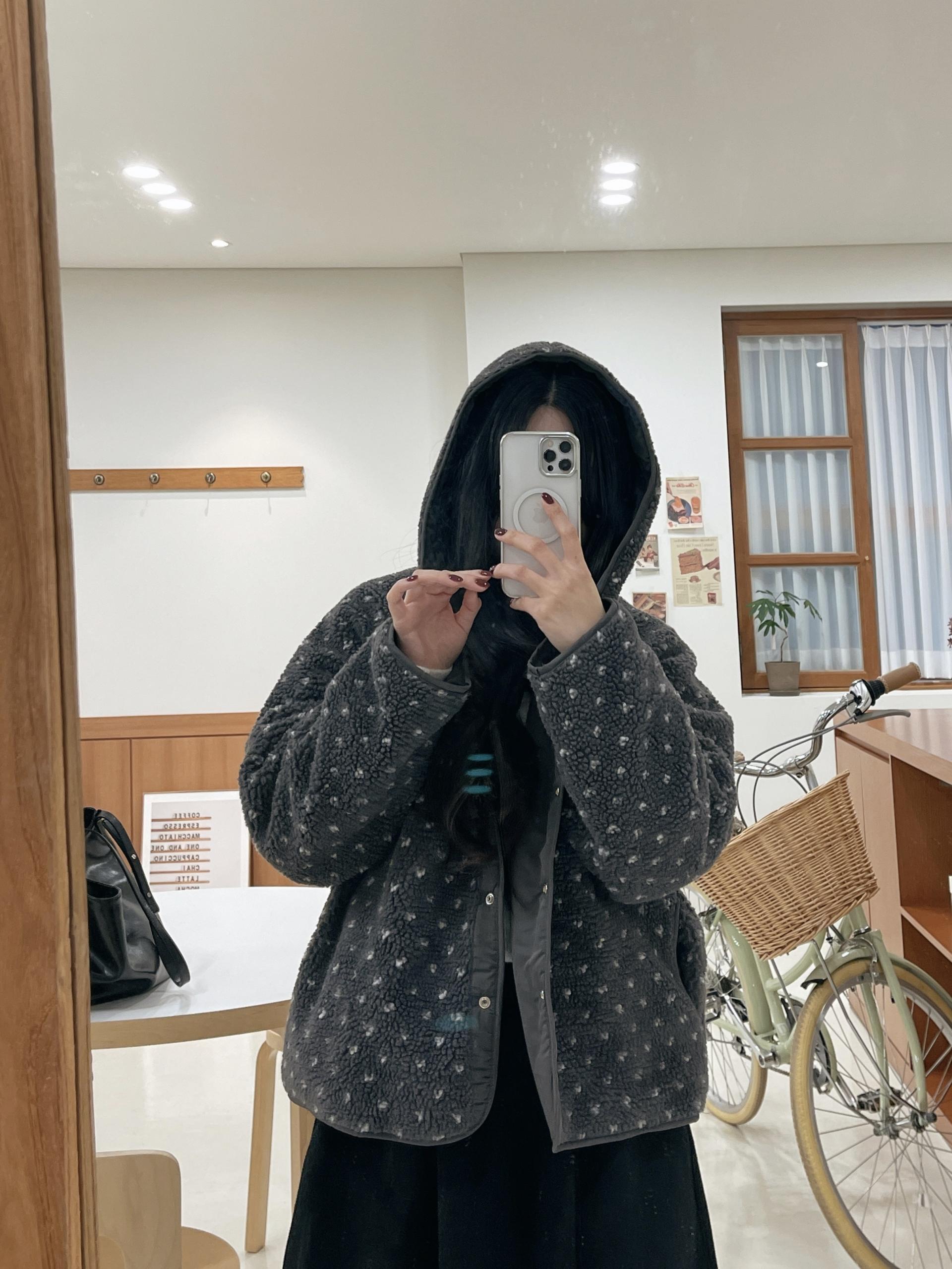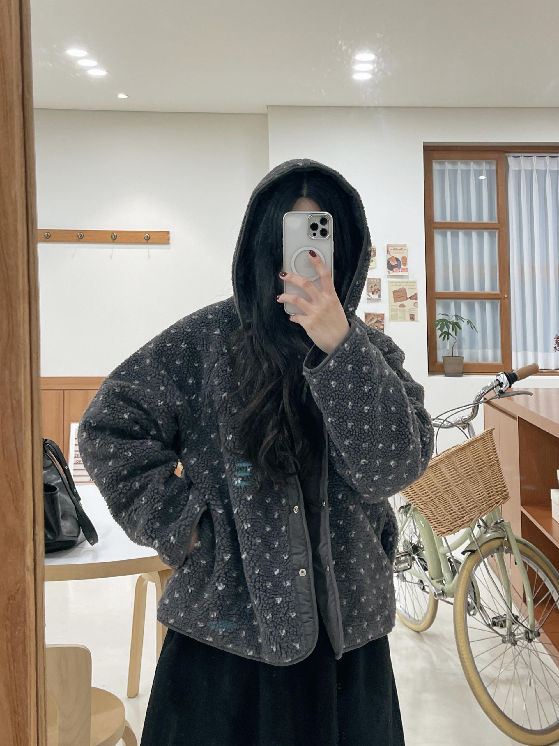 귀여운 하트도트에 배색을 더하고, 후드로 귀여움을 추가한