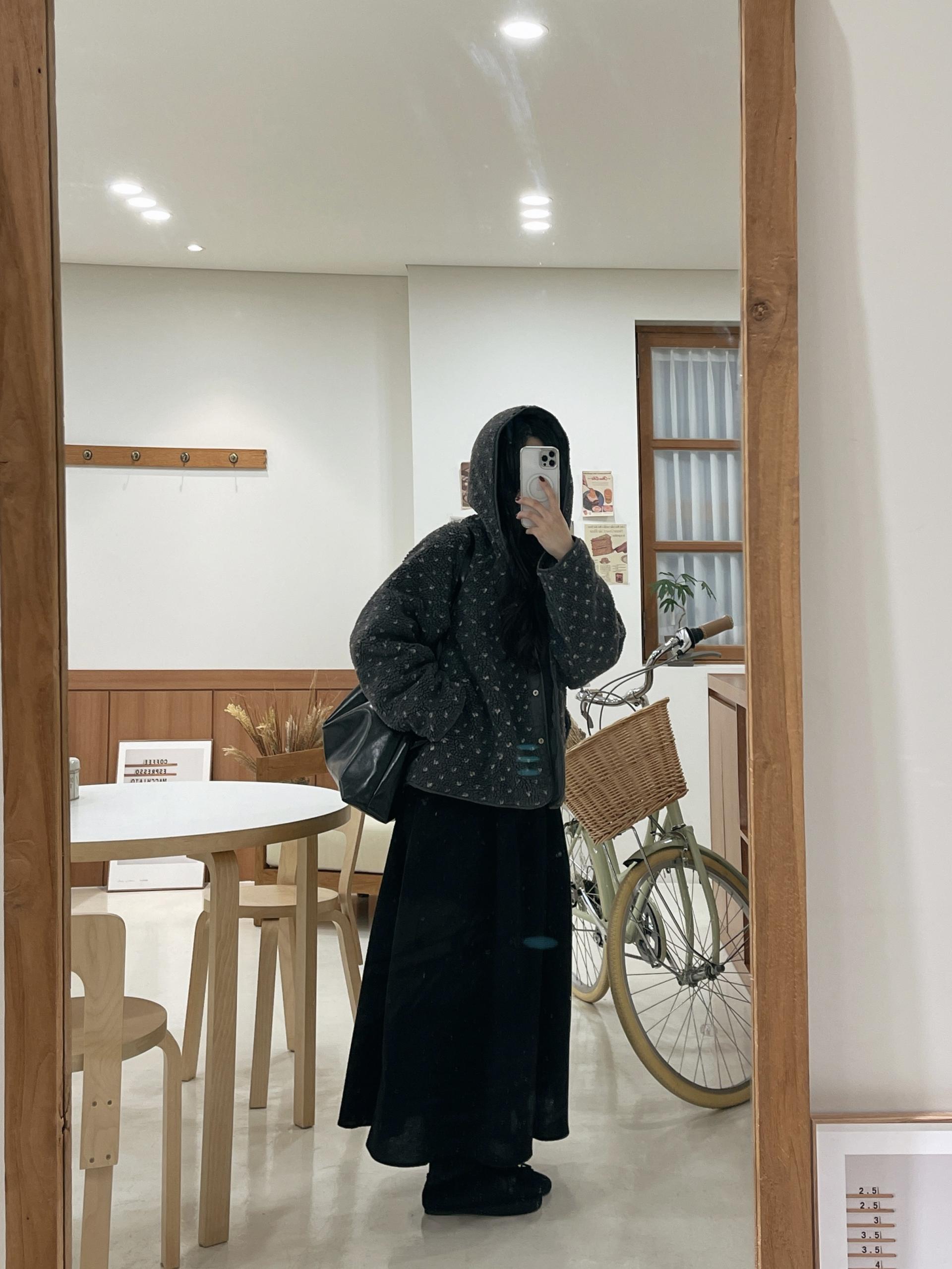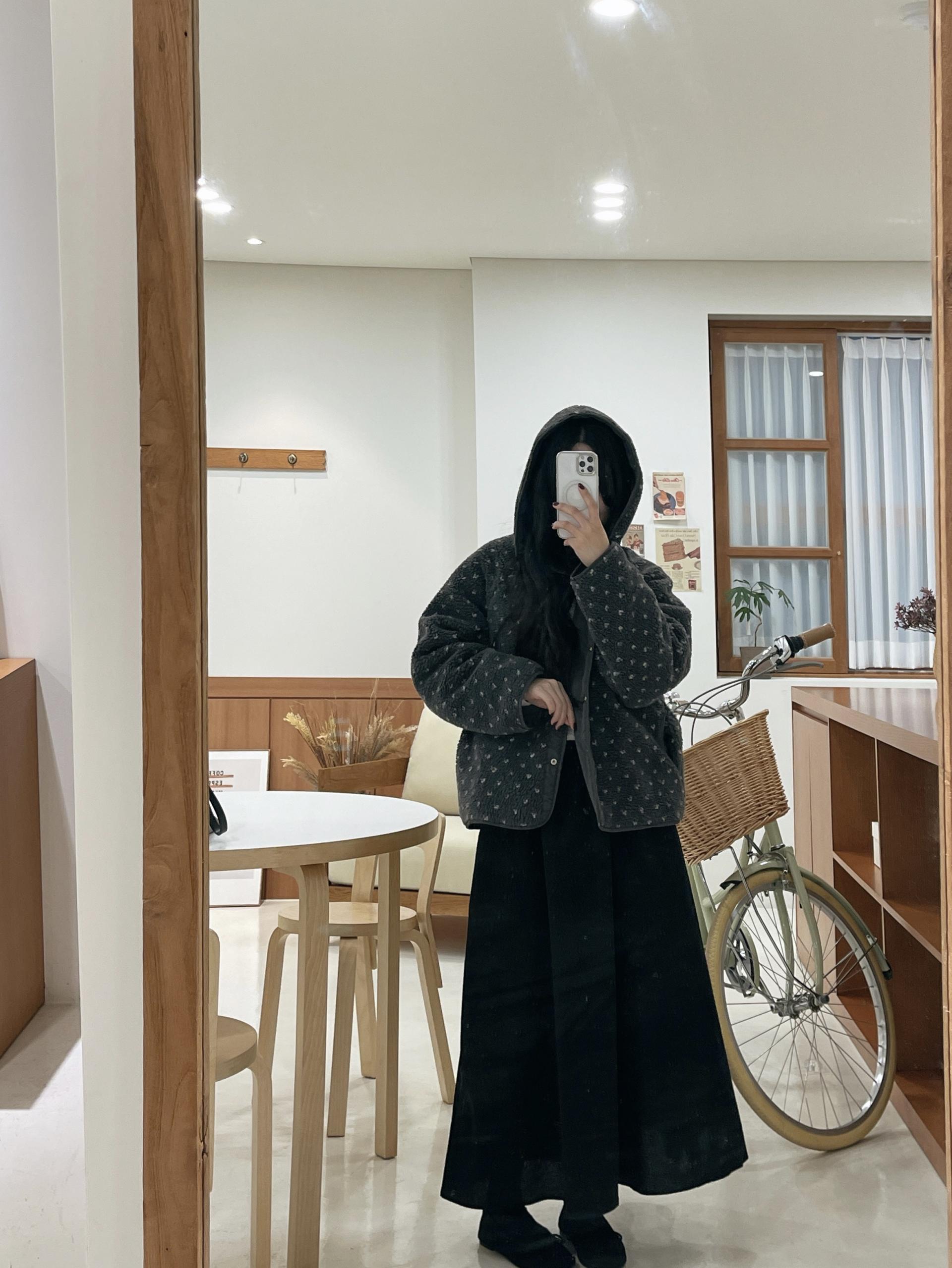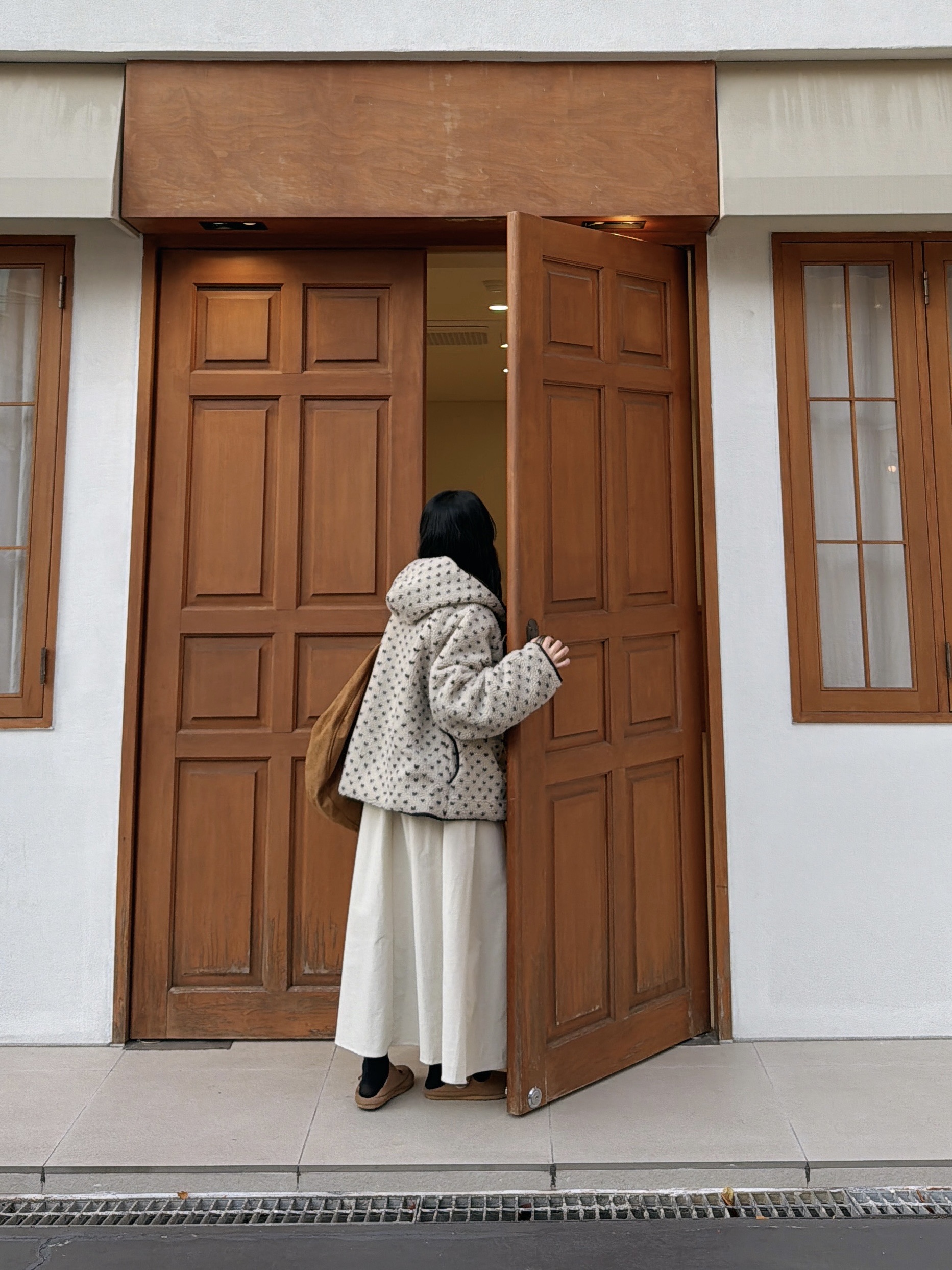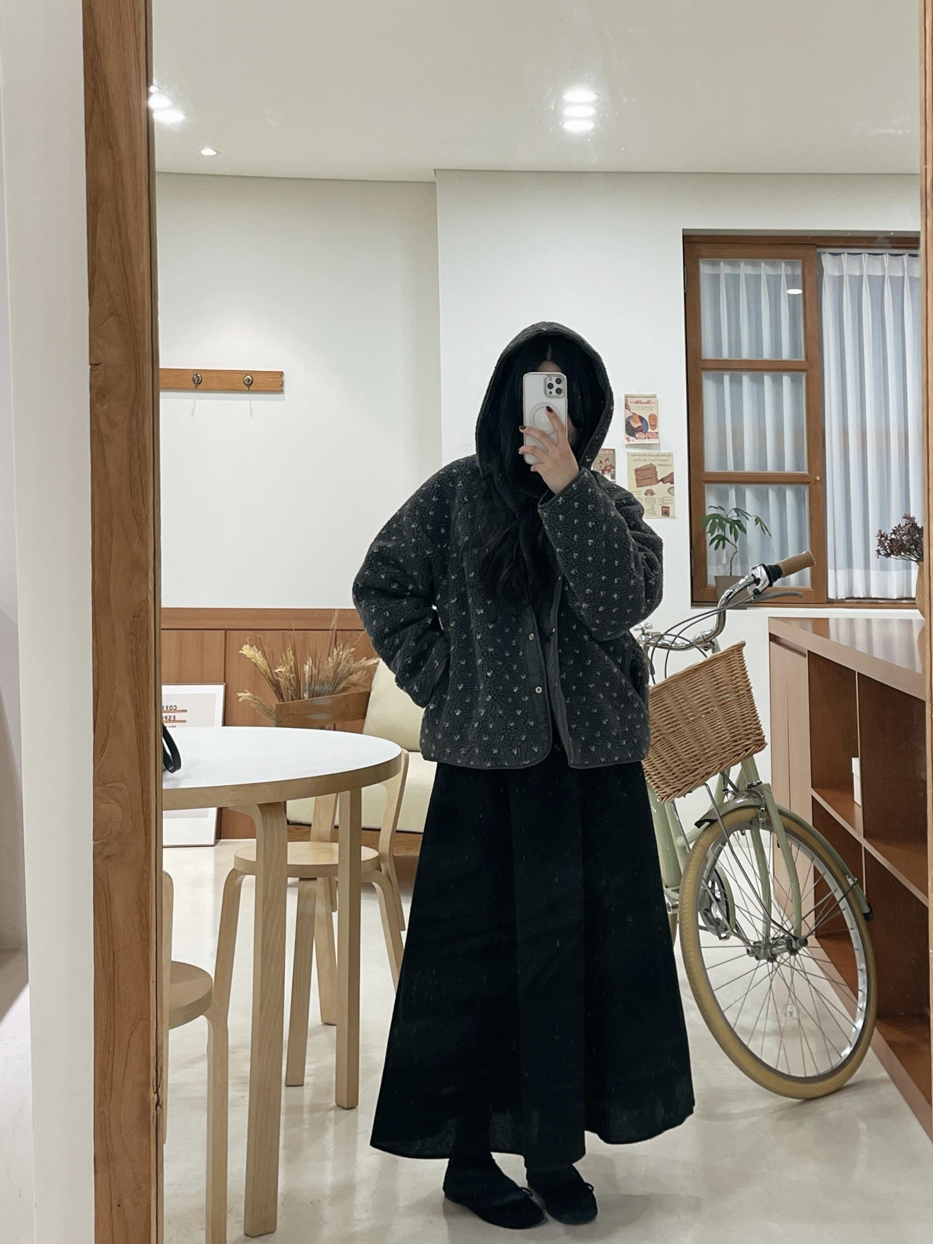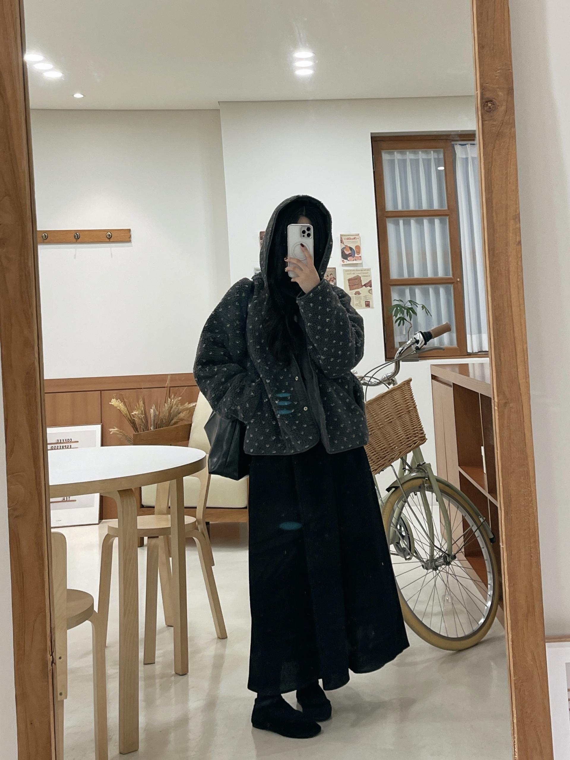 귀여운 하트도트에 배색을 더하고, 후드로 귀여움을 추가한