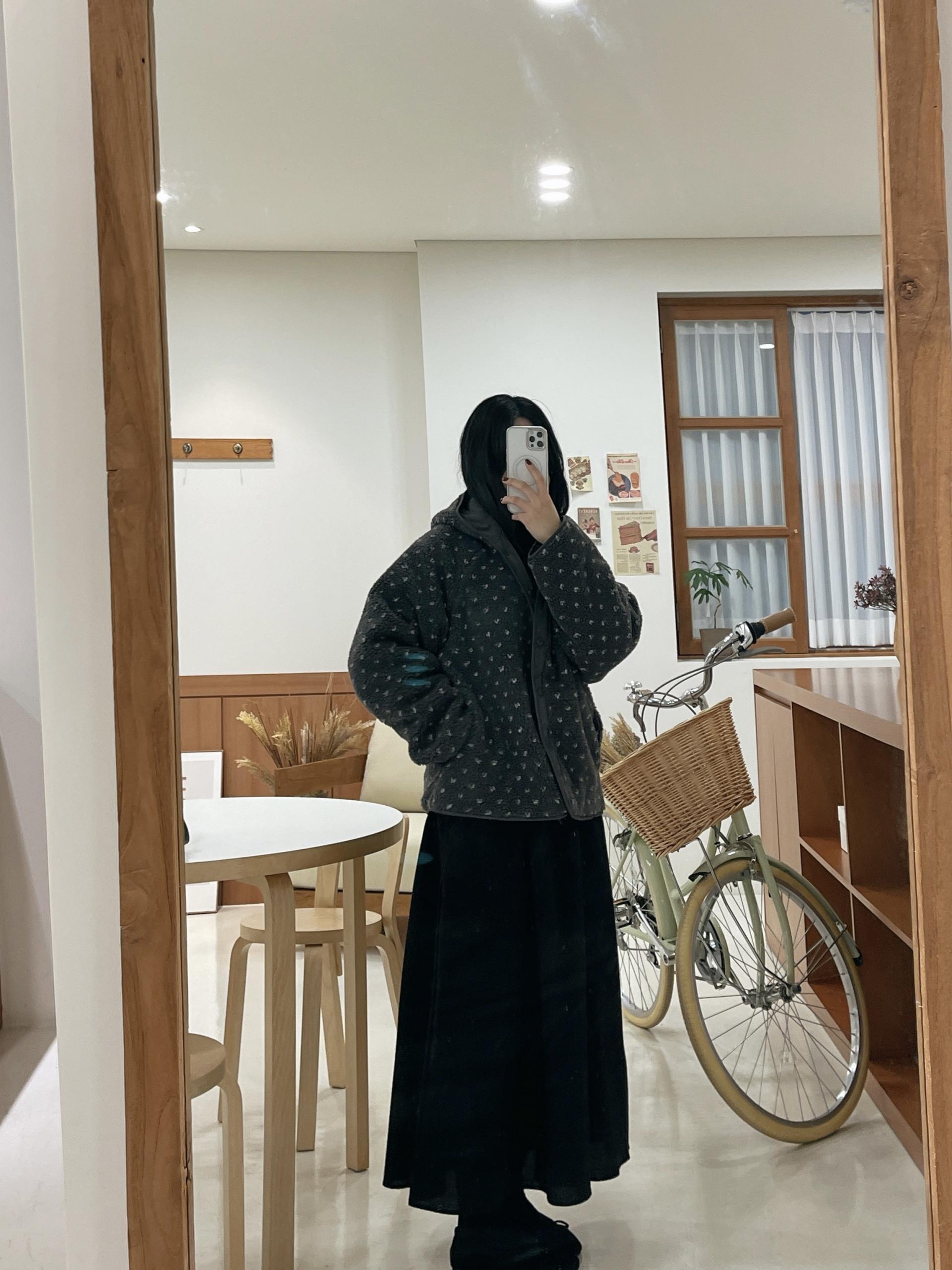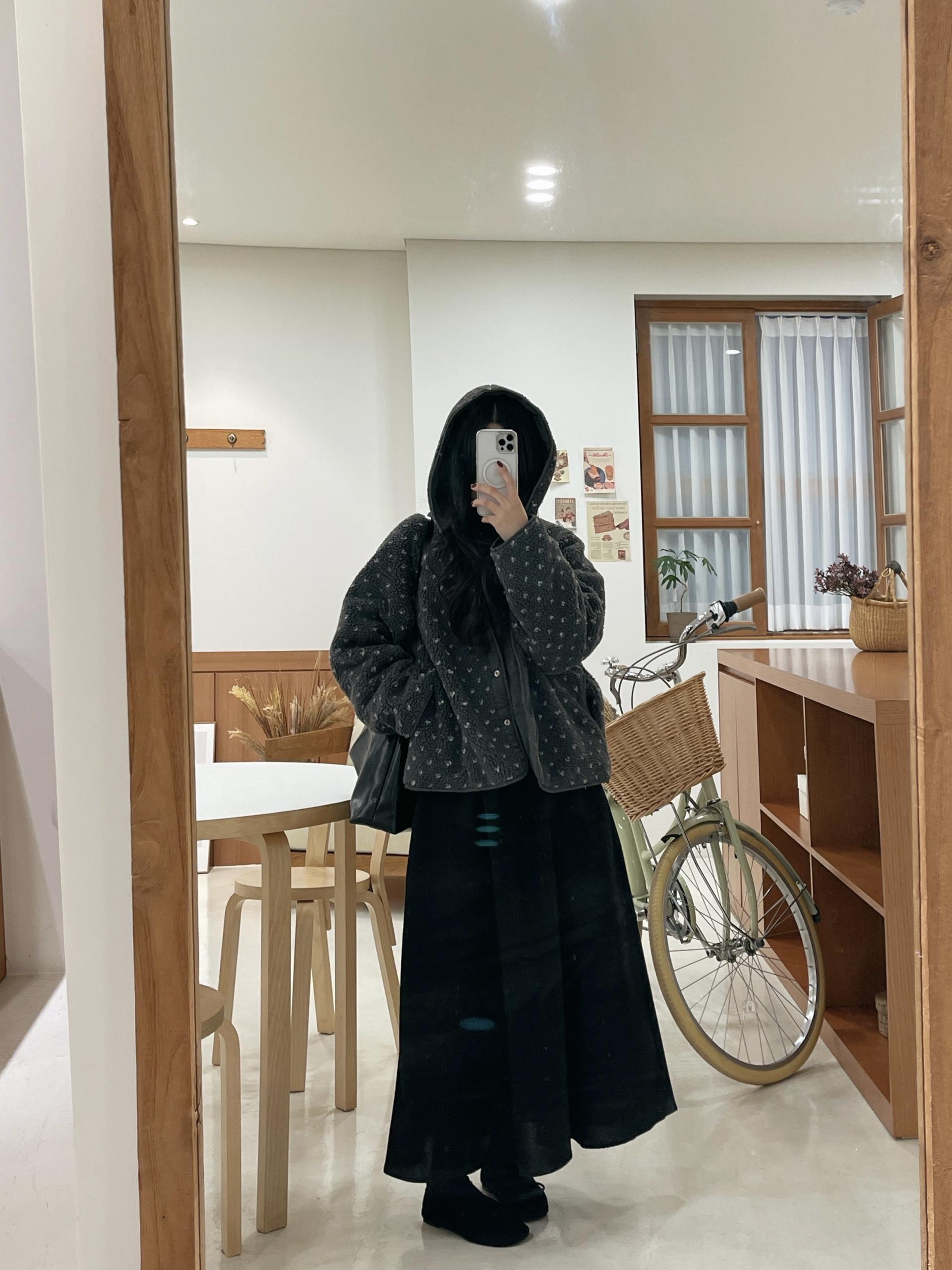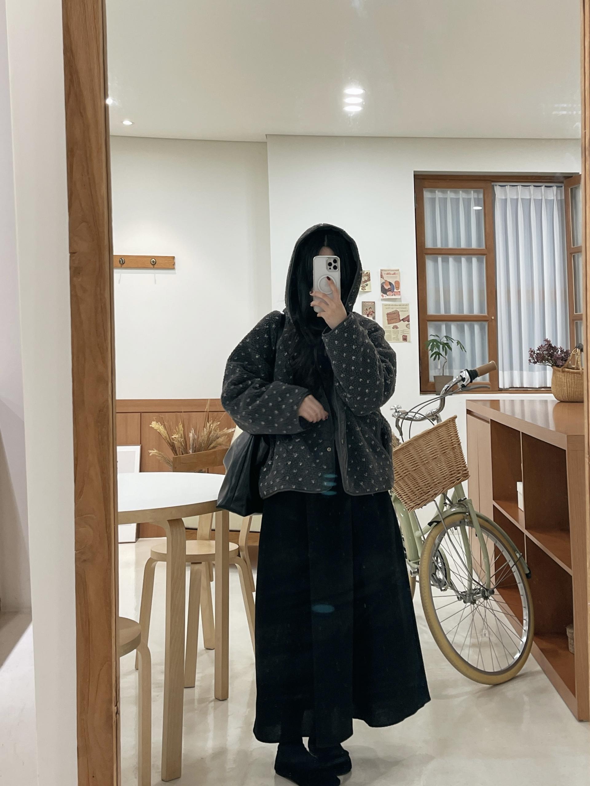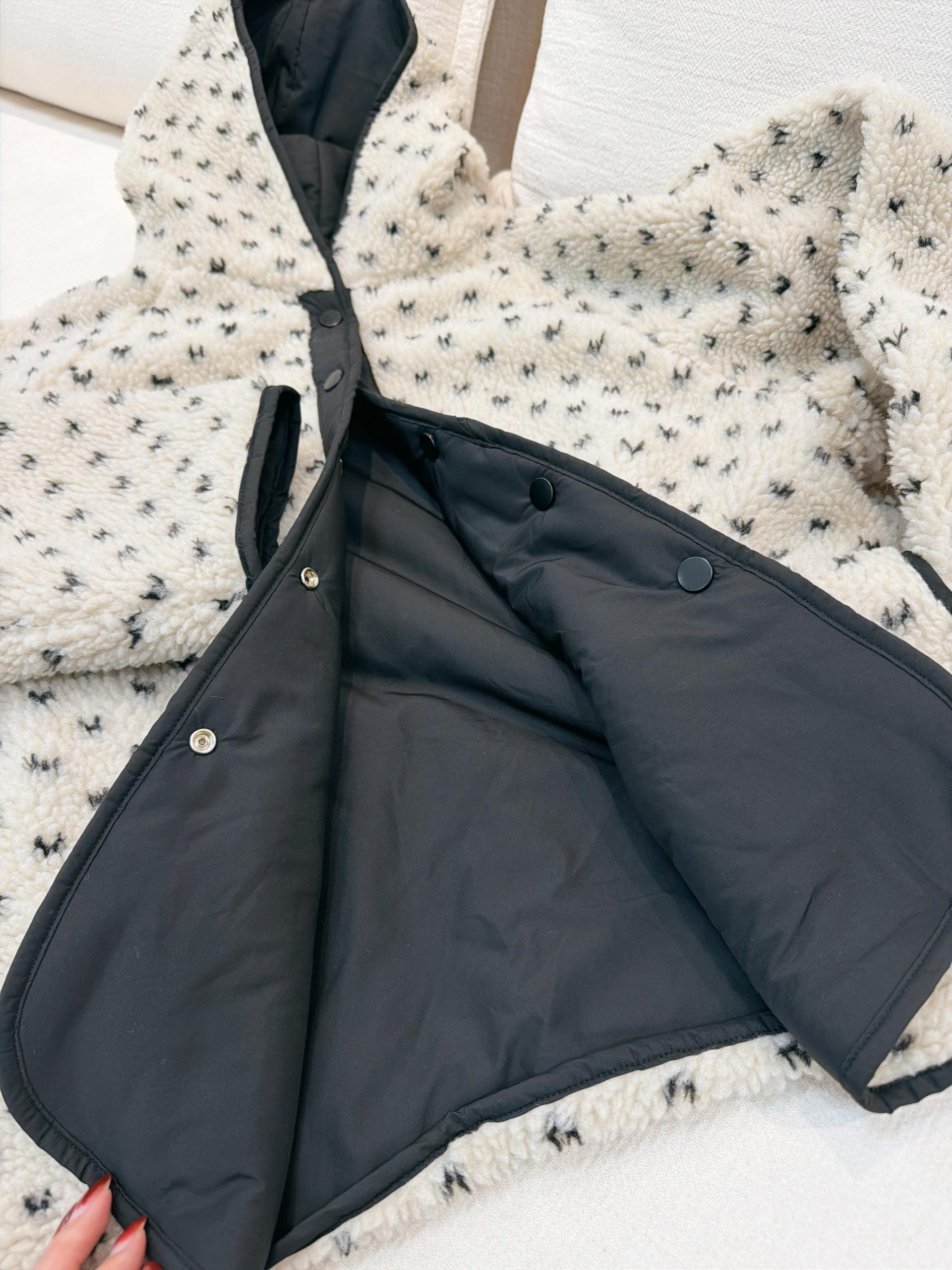 귀여운 하트도트에 배색을 더하고, 후드로 귀여움을 추가한