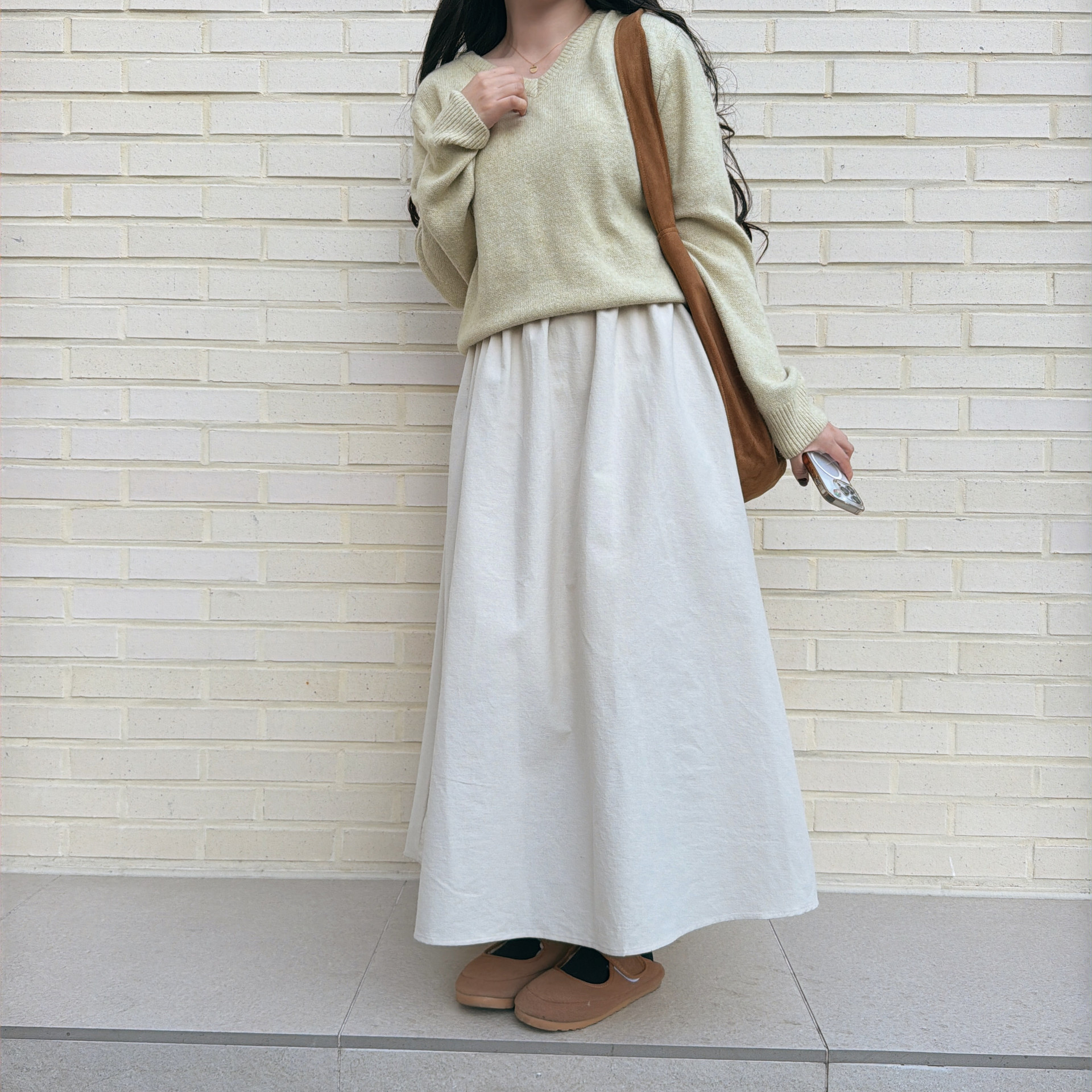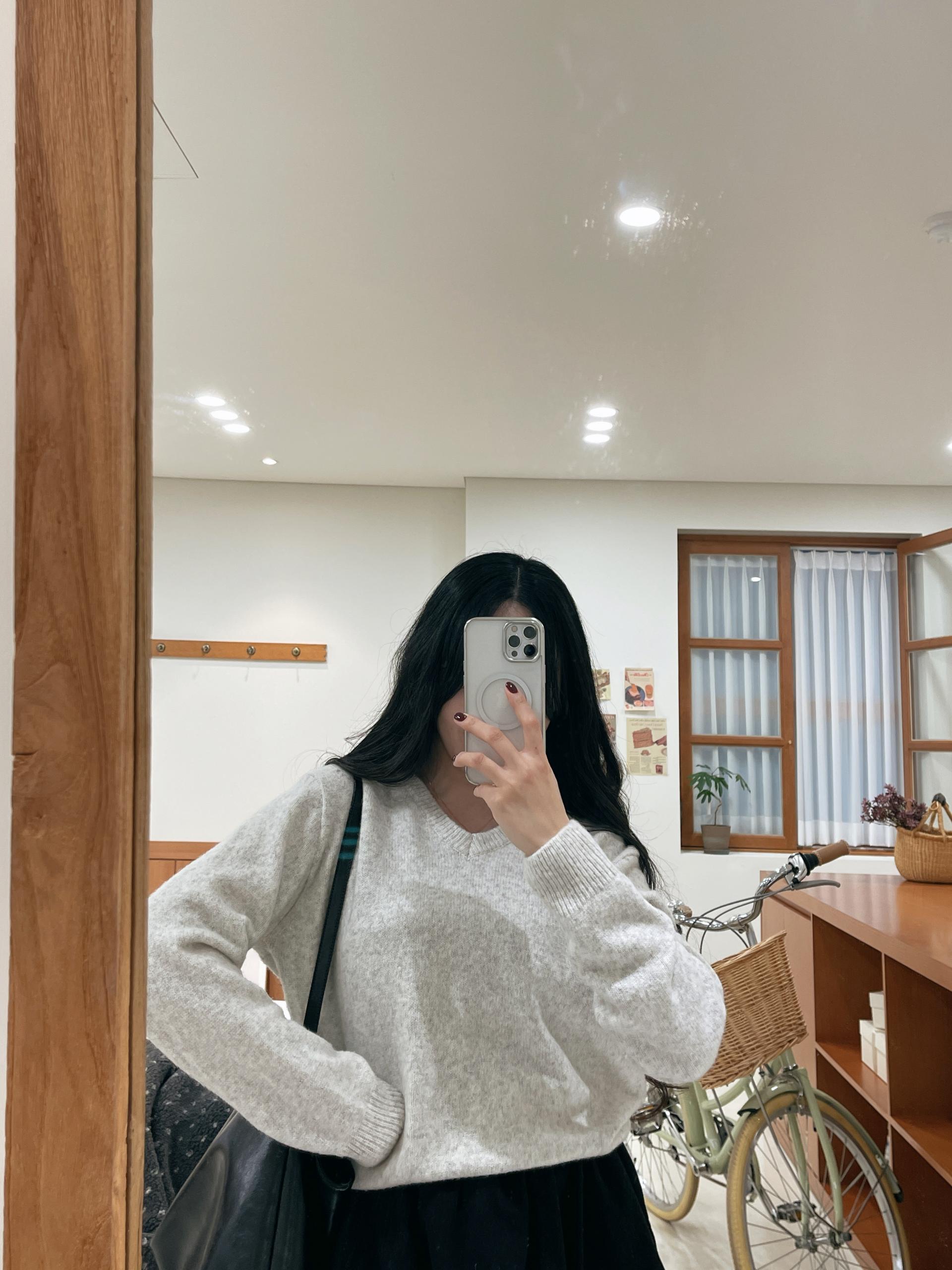 컬러감도 예쁘게 잘 나왔고, v넥이 주는 목선여리함까지 챙겨갈 수 있는