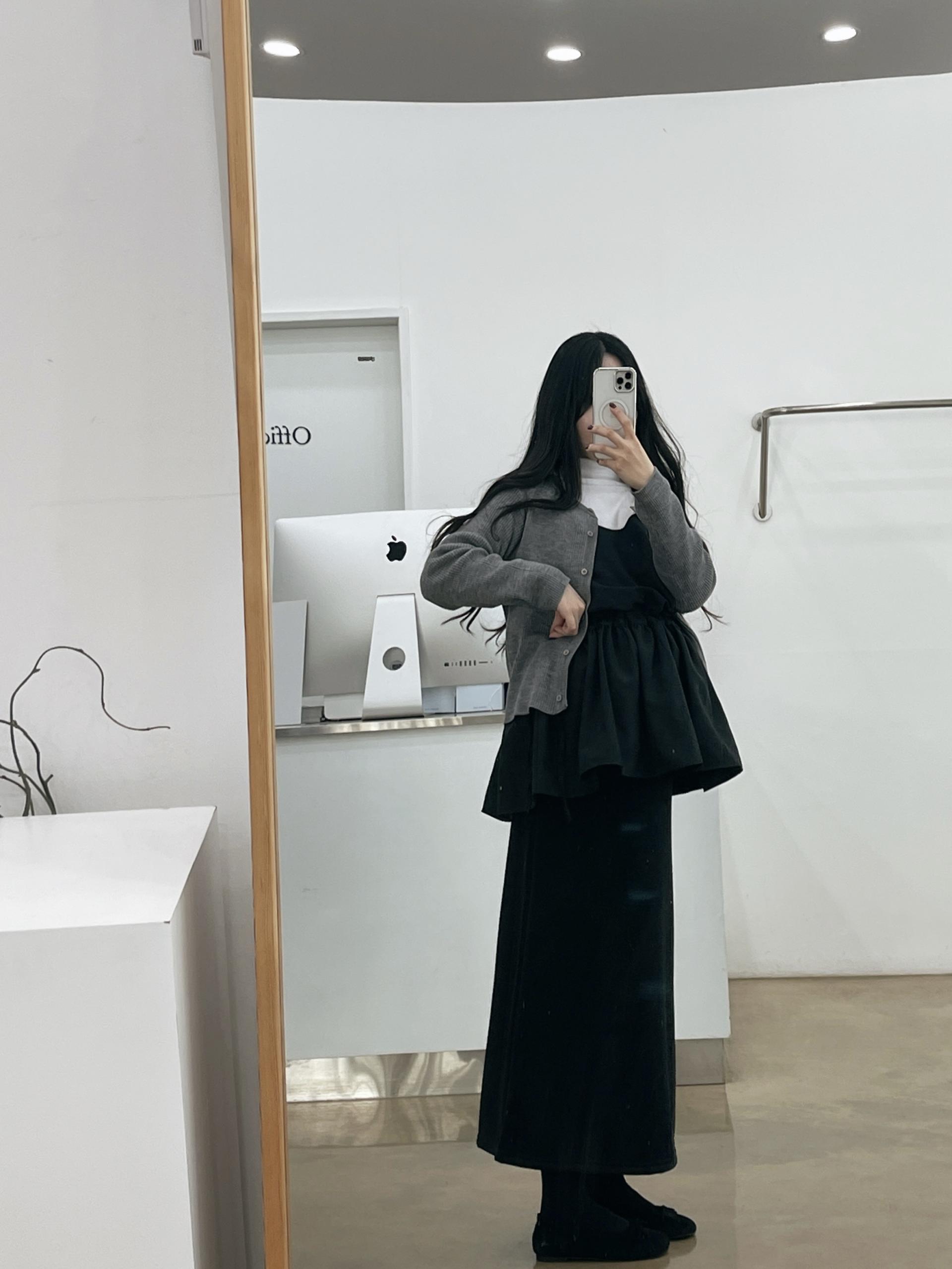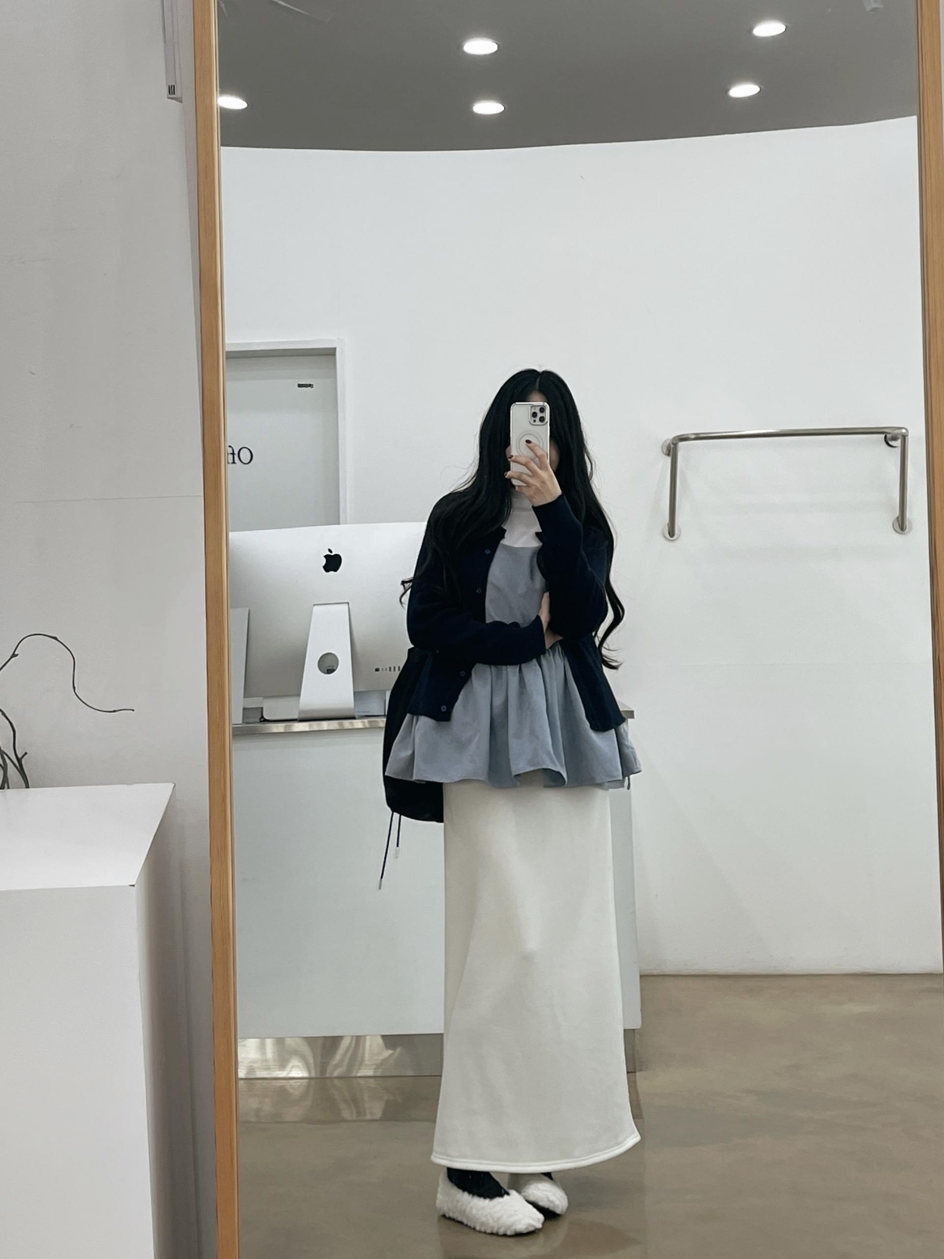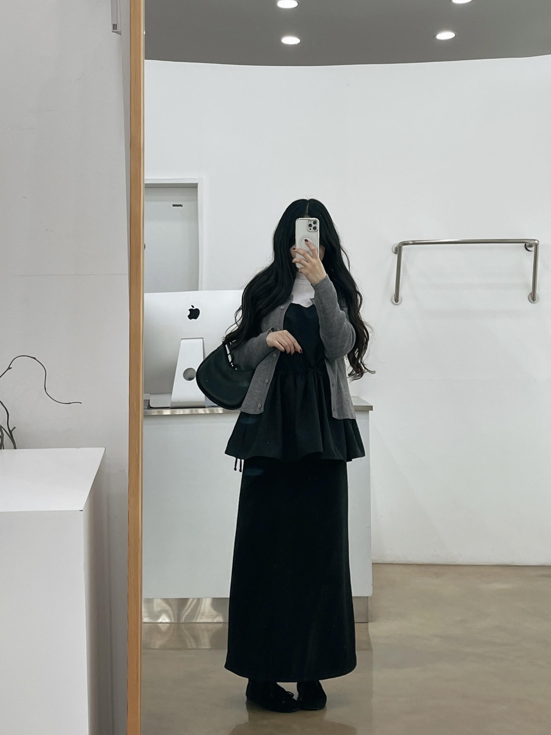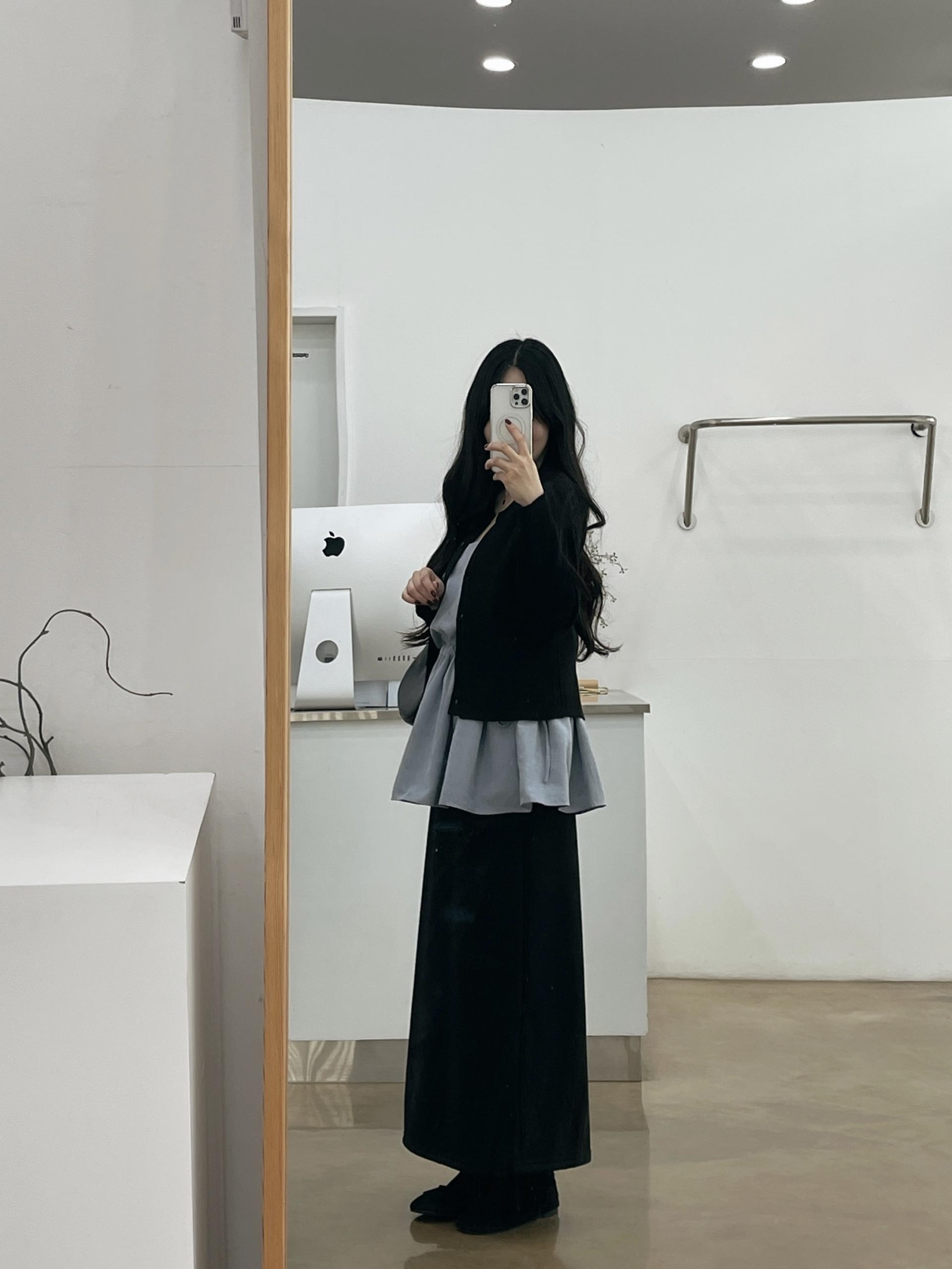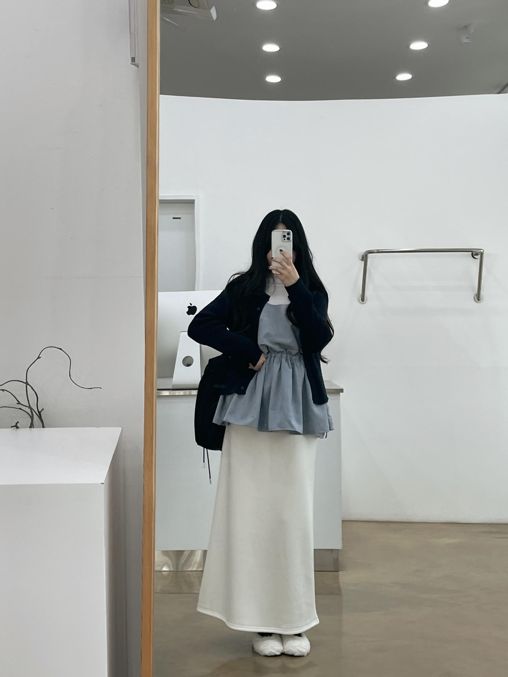 일자로 흘러내리는 핏감이 매우 여리해 보이는 효과가 있답니다!