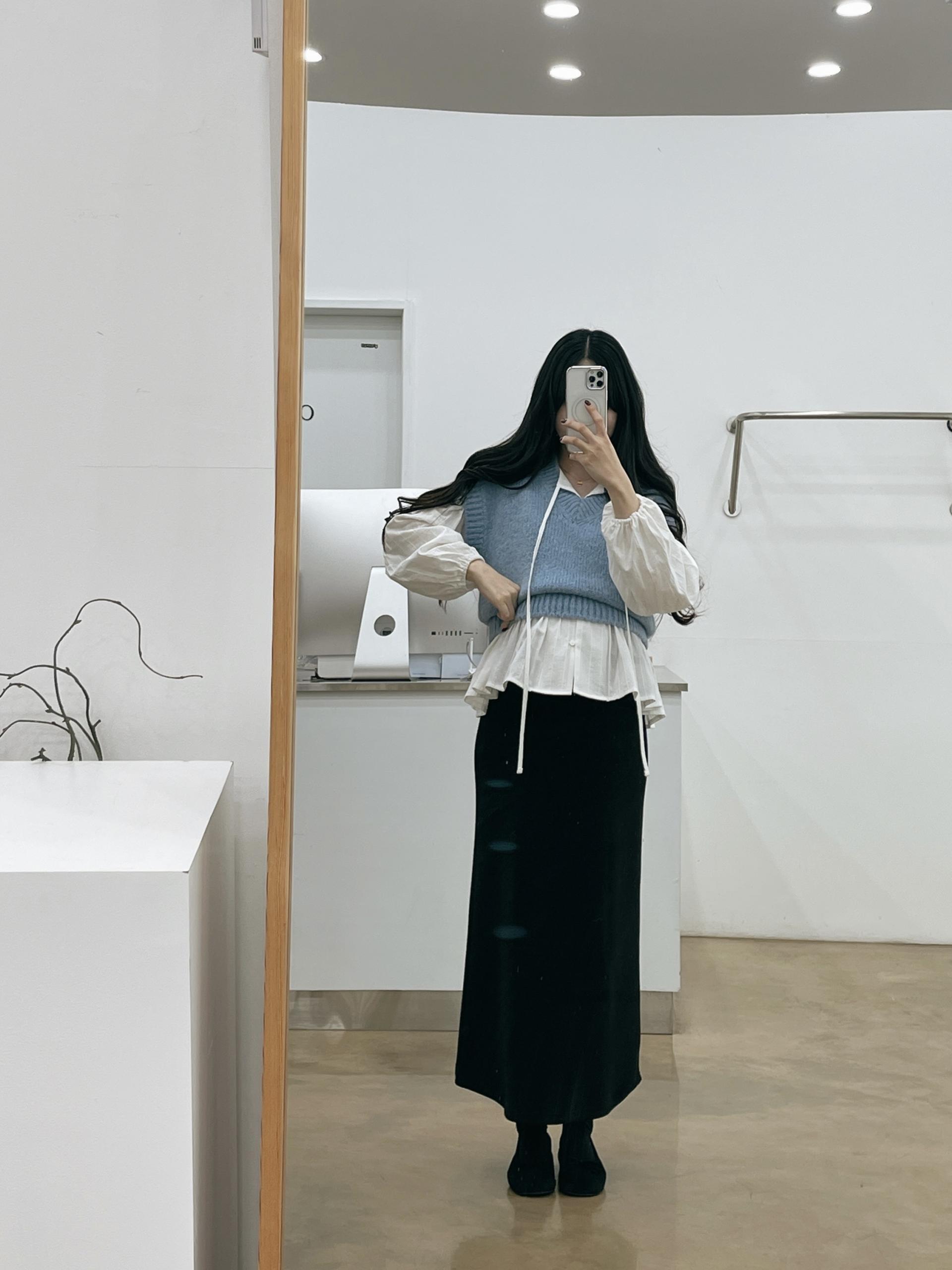 지금같이 추운 날씨엔 가디건, 베스트와 레이어드 해서 입기 좋은 블라우스에요