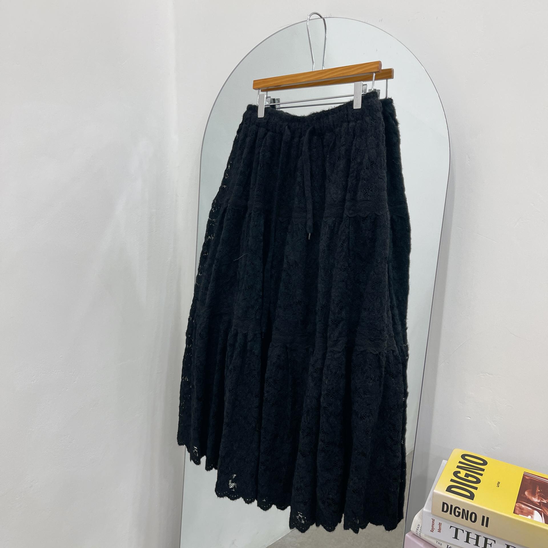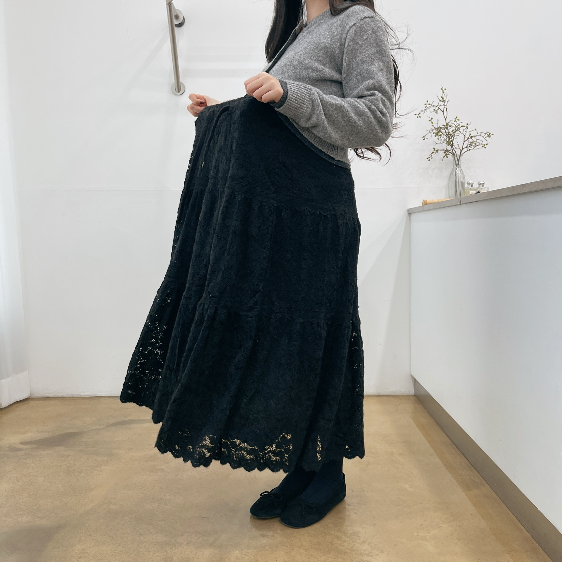 포멀배색가디건(차콜)+윈터레이스스커트(블랙)