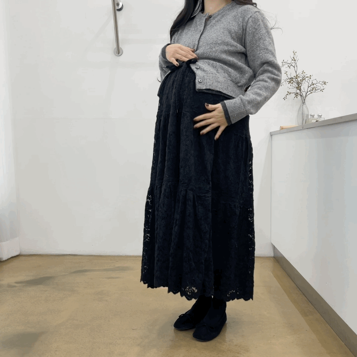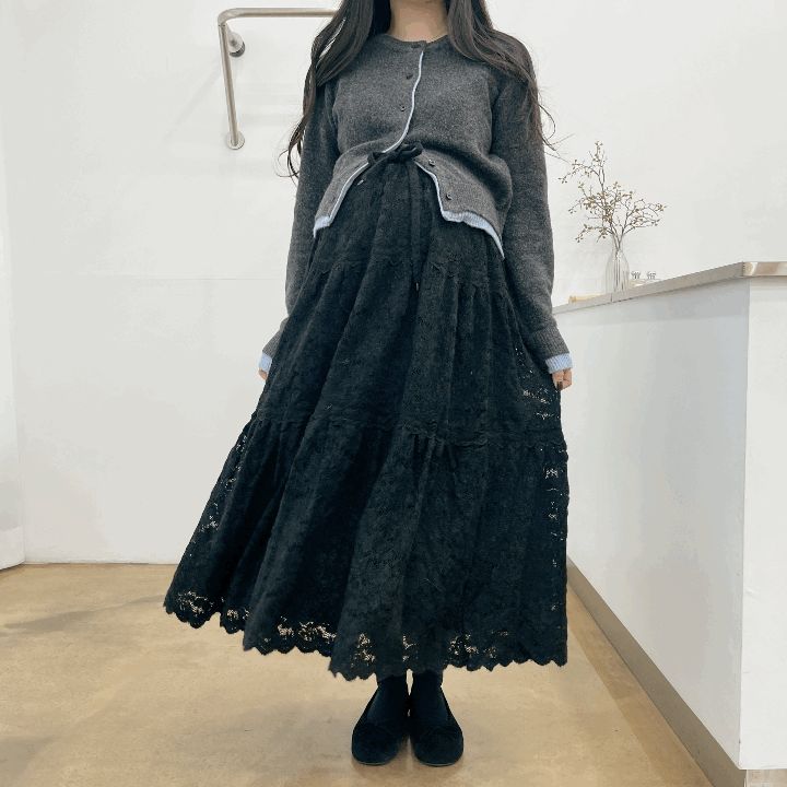 포멀배색가디건(그레이)+윈터레이스스커트(블랙)