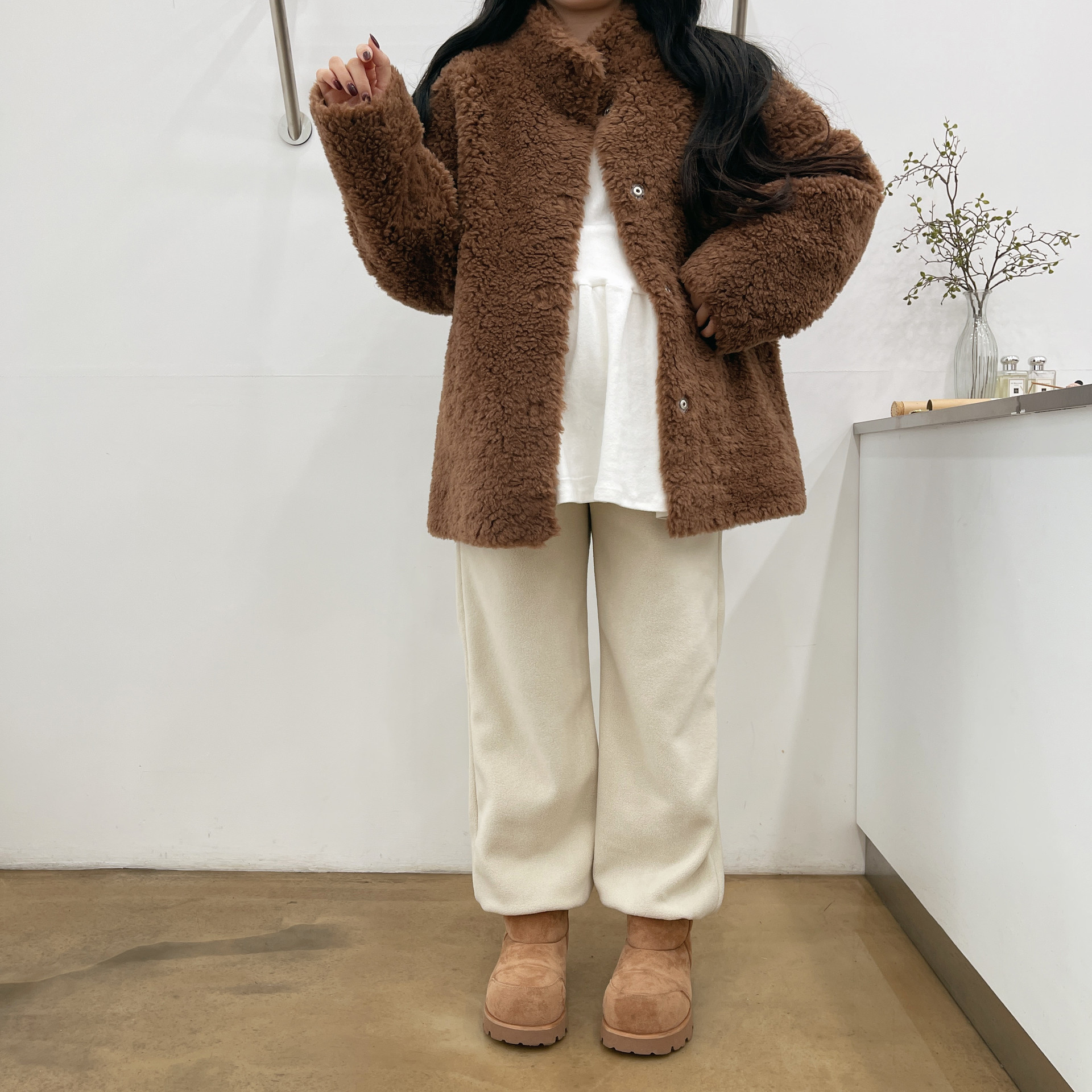 오버느낌의 뽀글이 반코트인데요