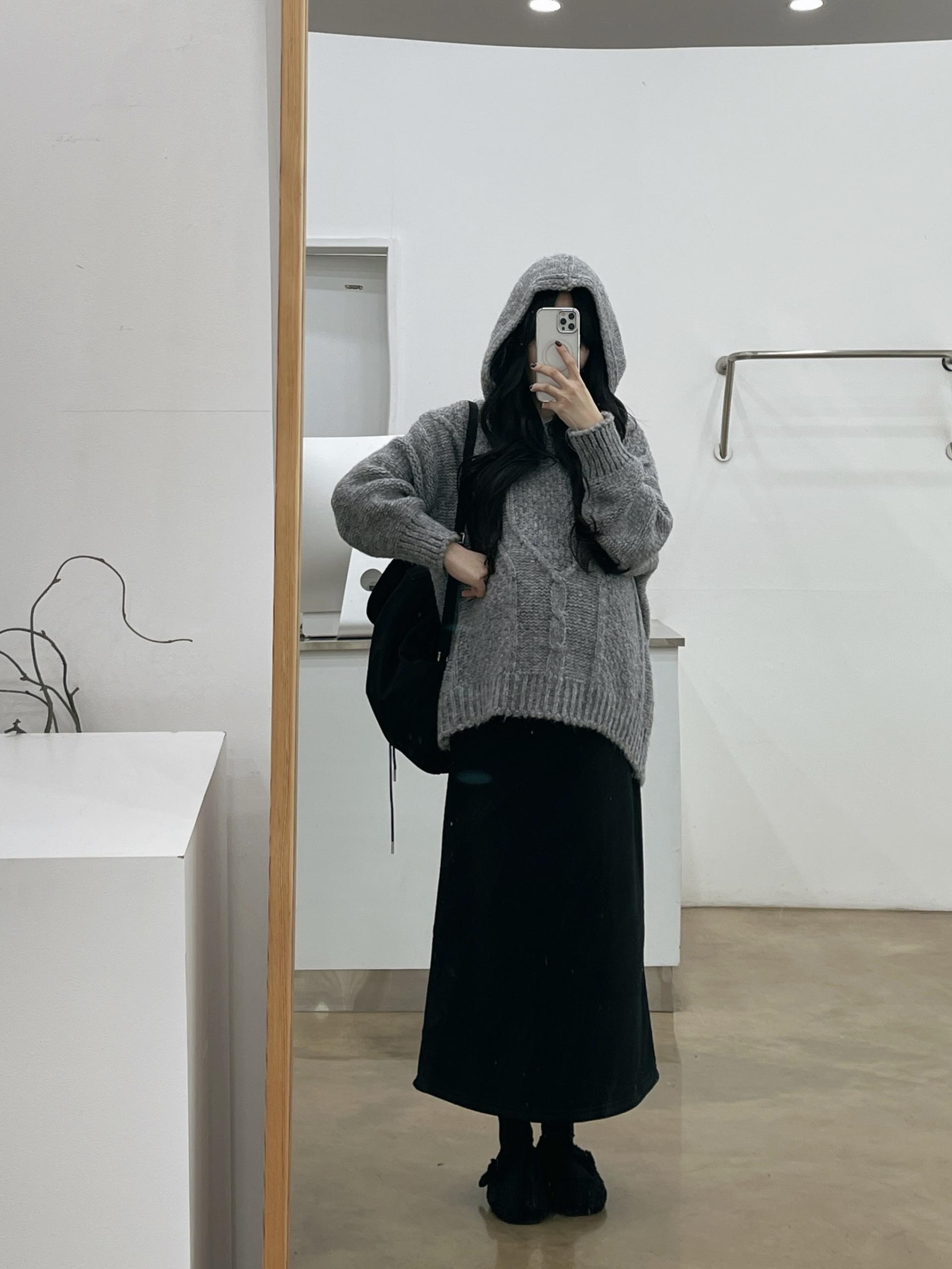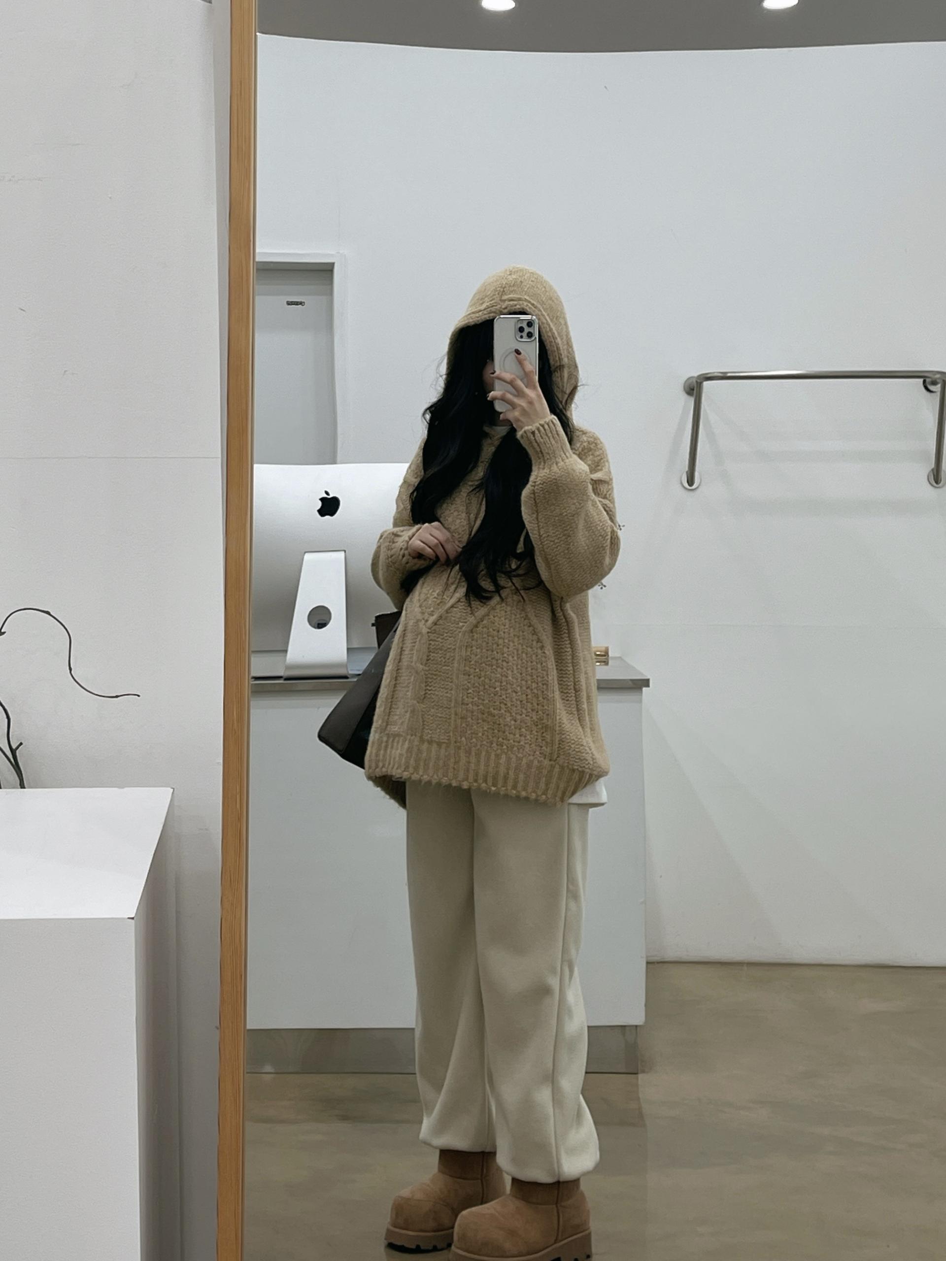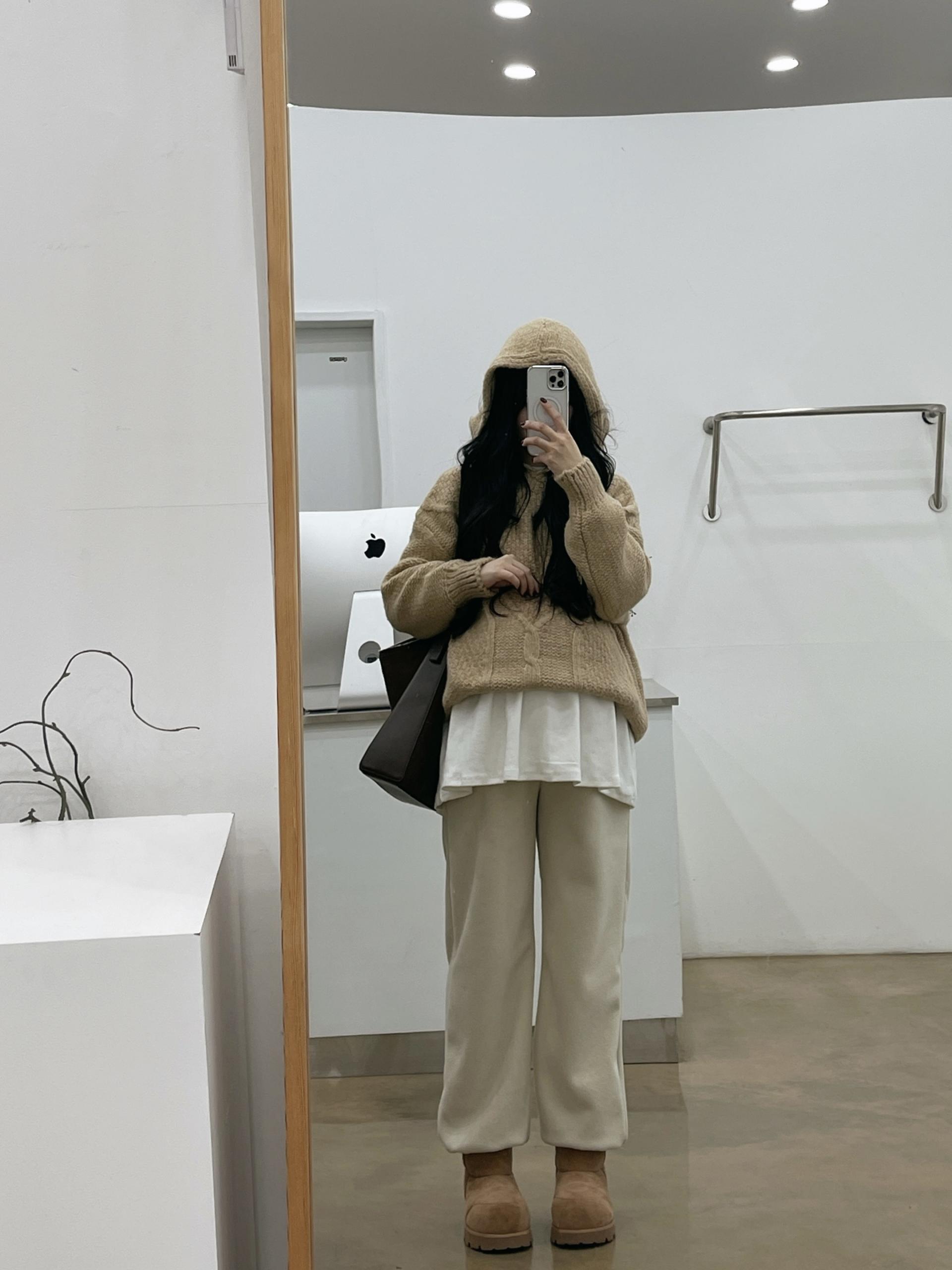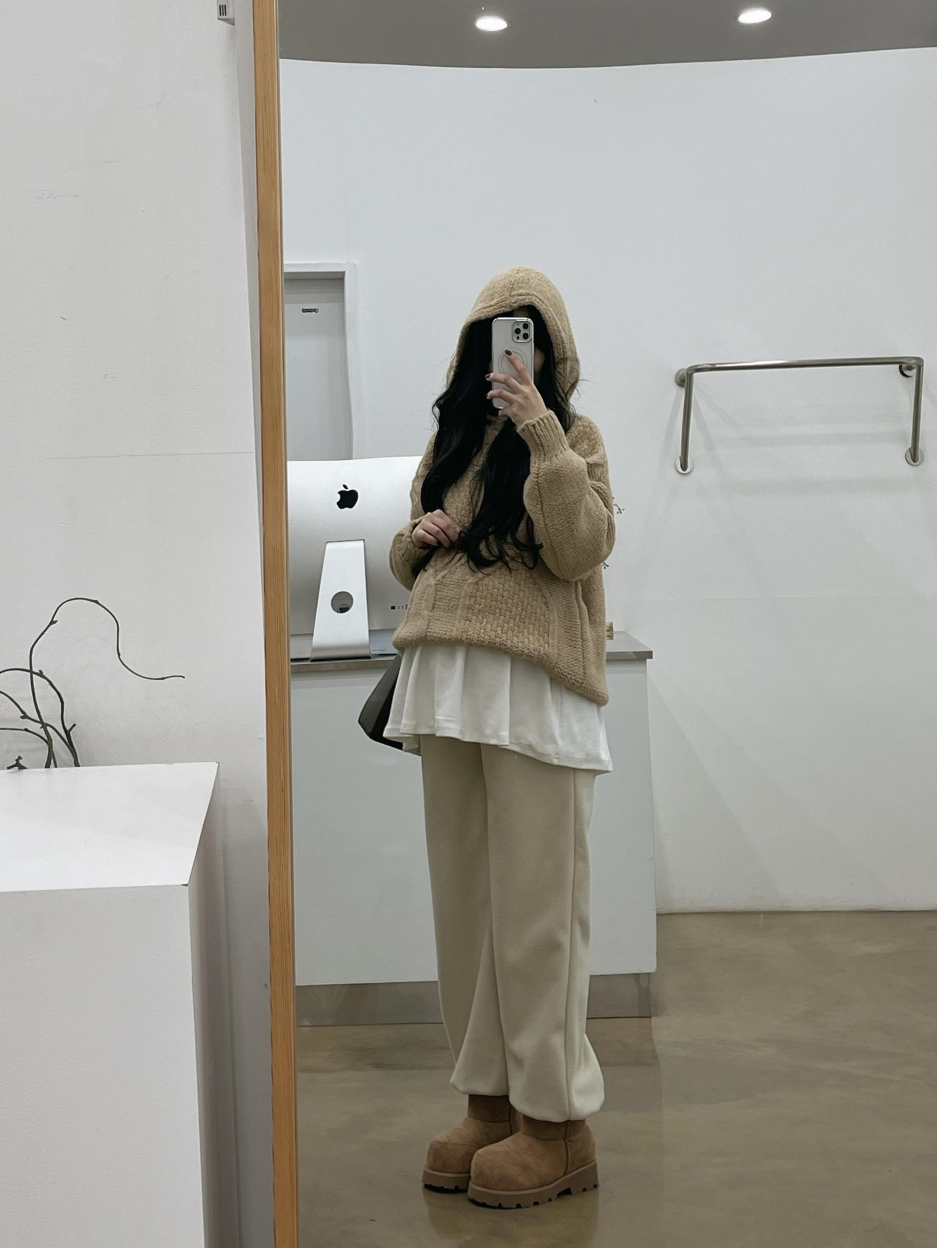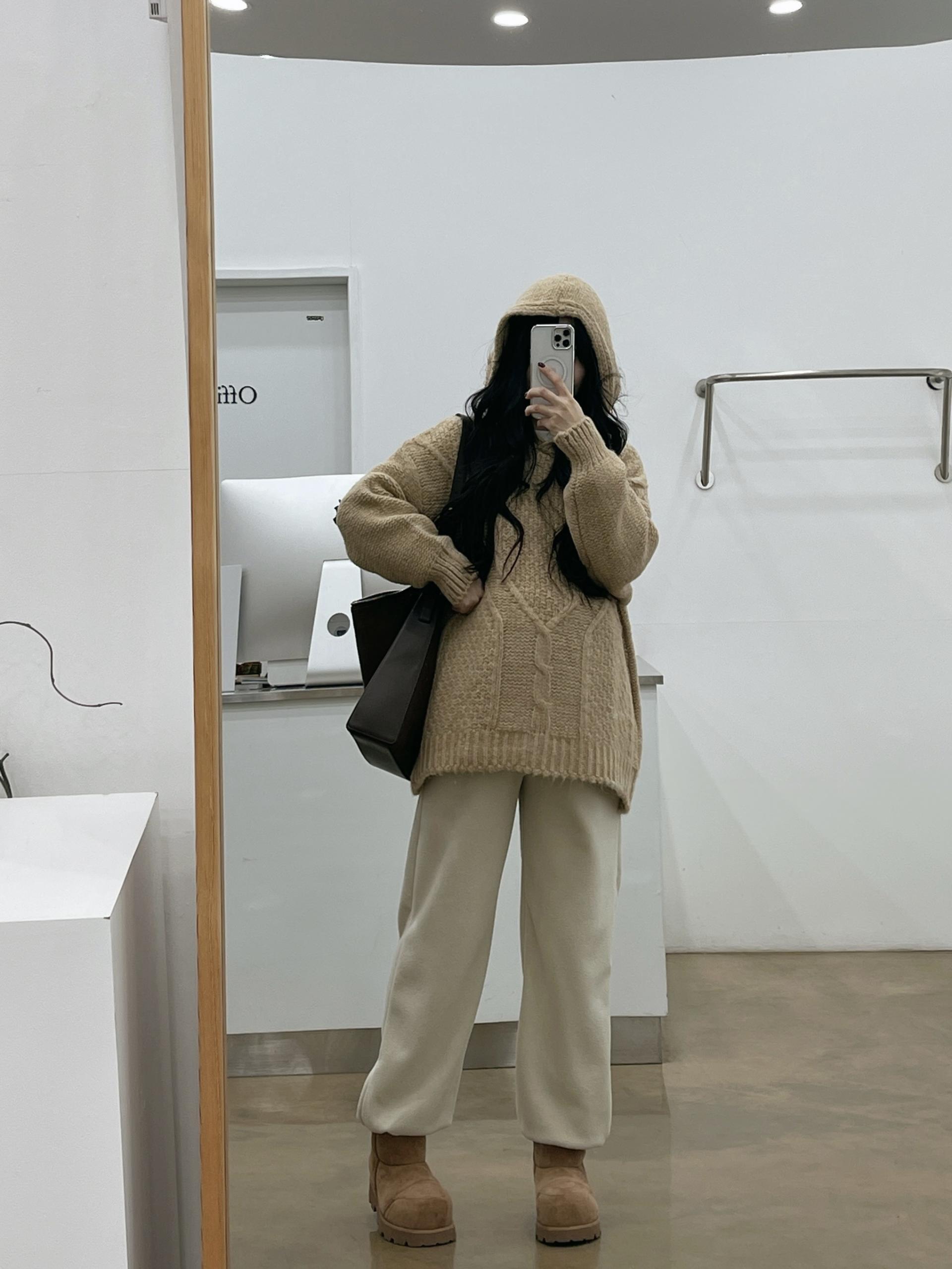 도톰한 케이블짜임니트와 후드로 갬성UP