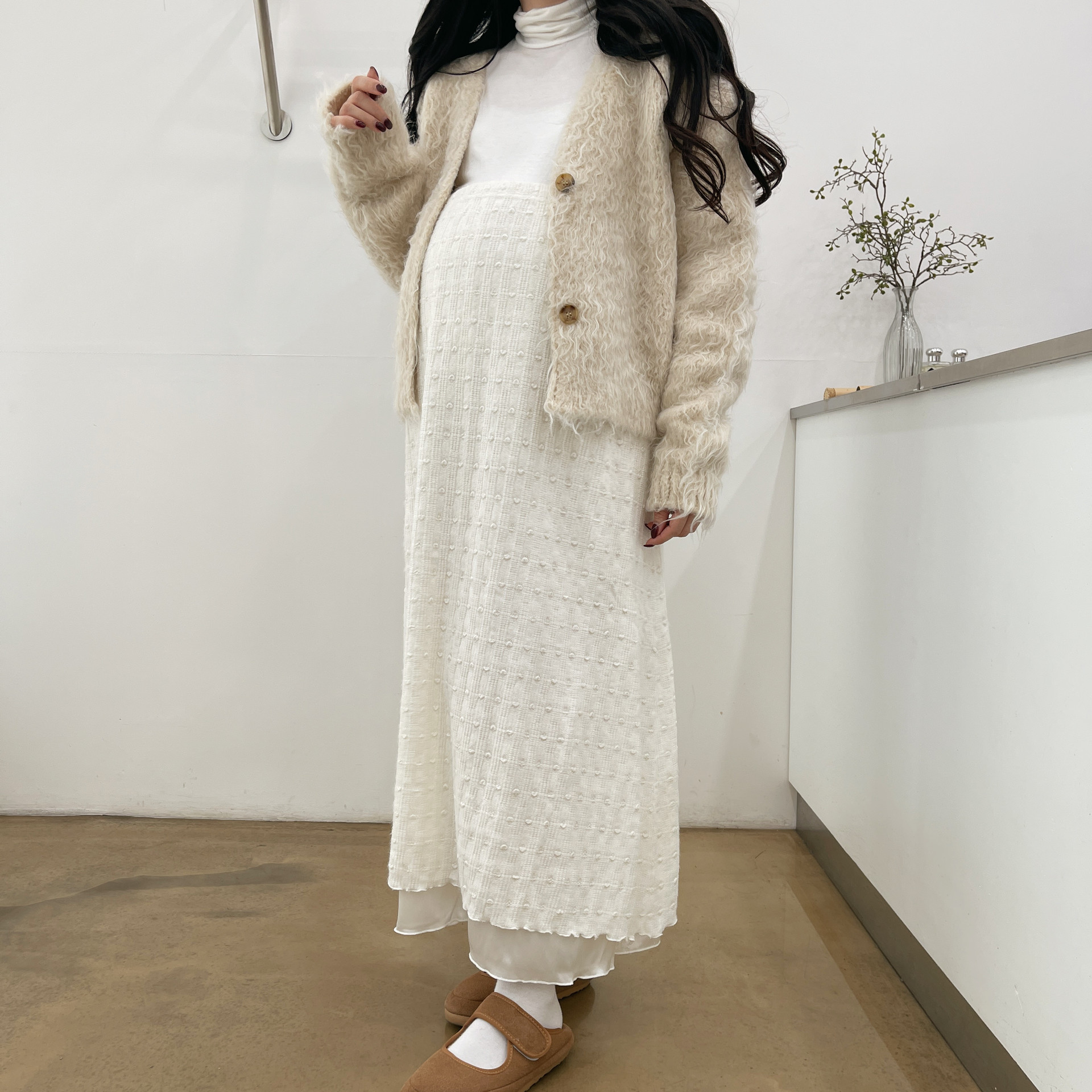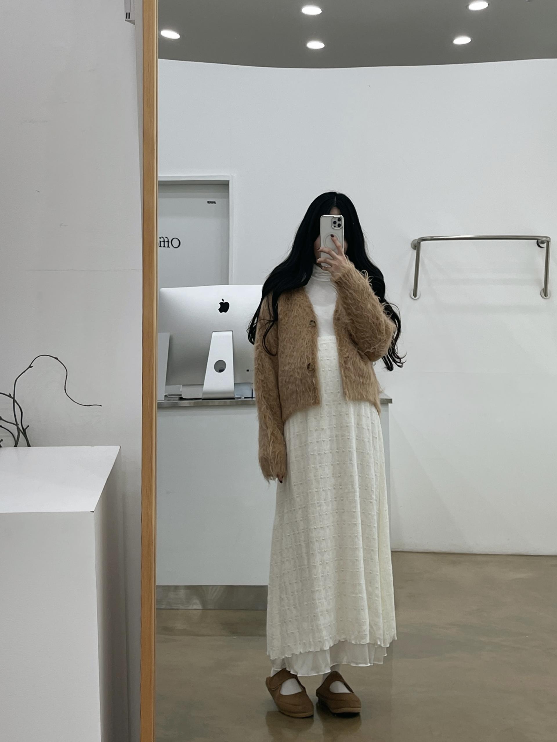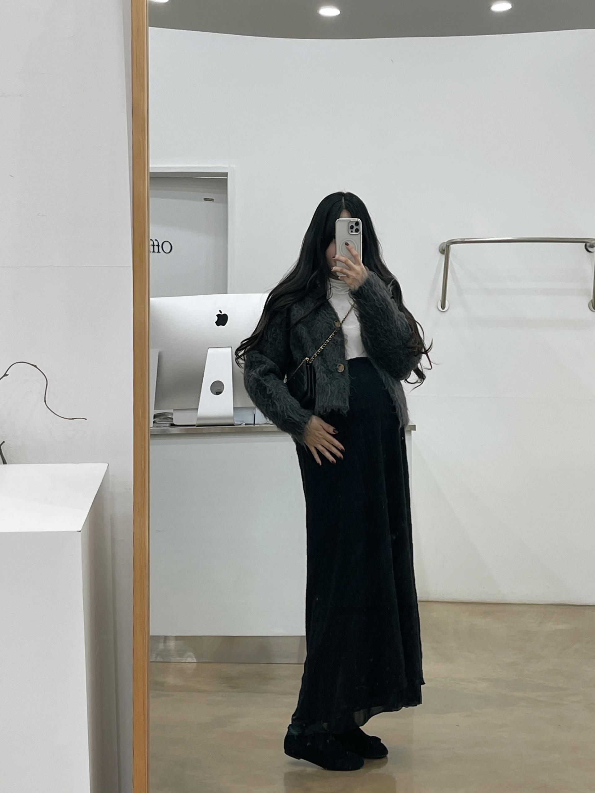 기장을 짧게 잡아서 스커트나 원피스에 코디하셨을 때 다리 길~어보이고