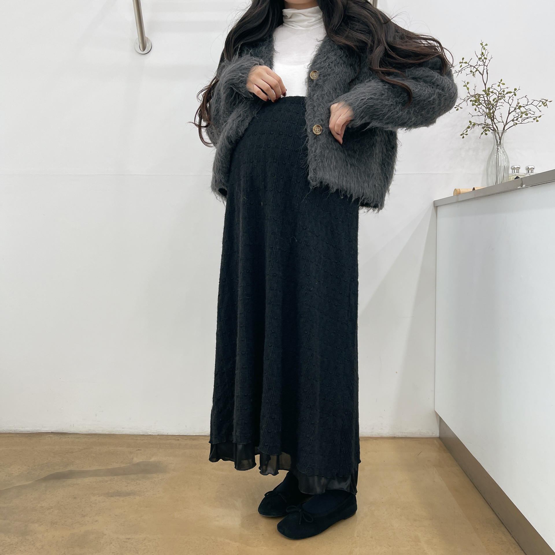 로지레이스스커트 ,(밍크골지)와이드니트PT
