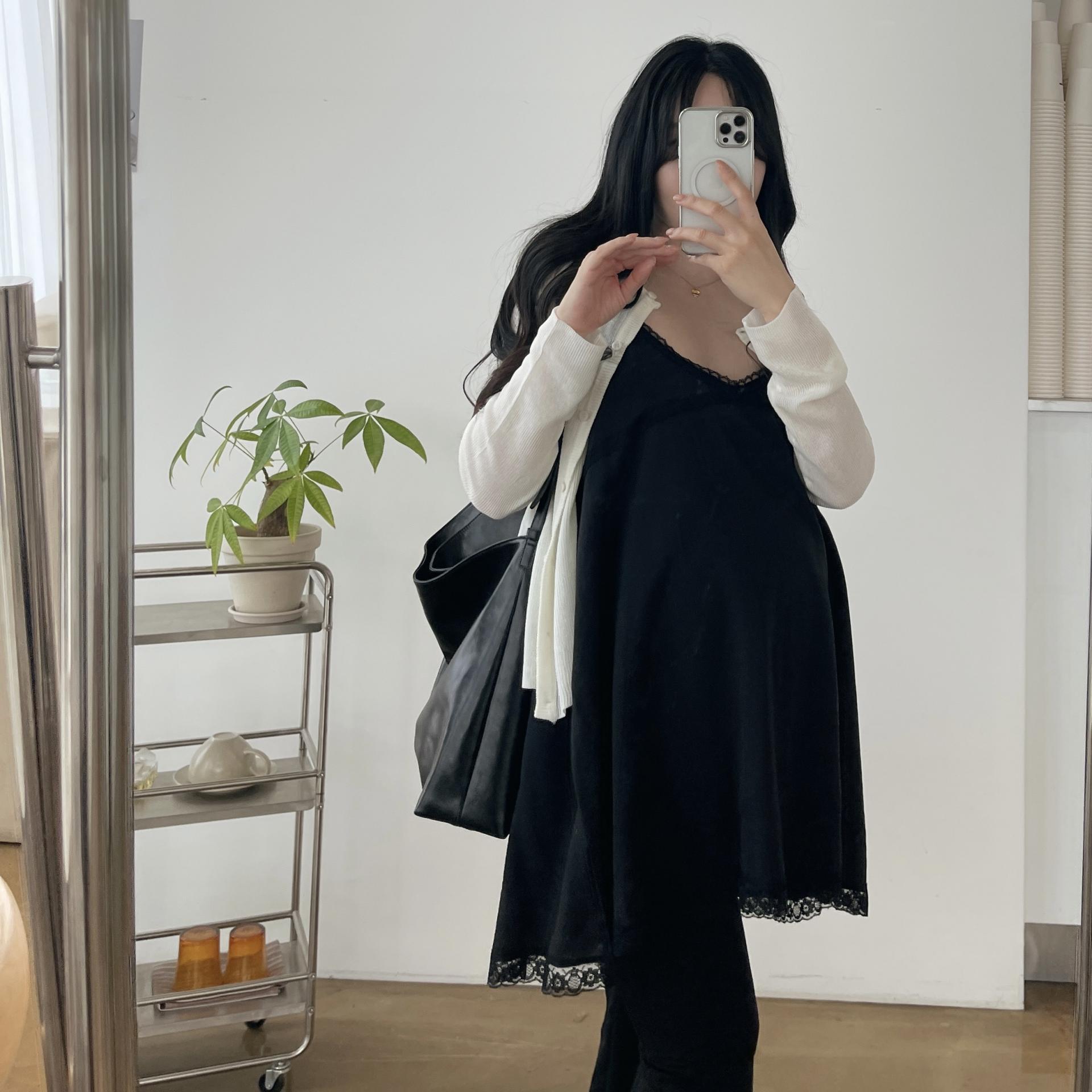 블랙(+코디상품 : 임부부츠컷레깅스/레이스슬립레이어드뷔스티에)