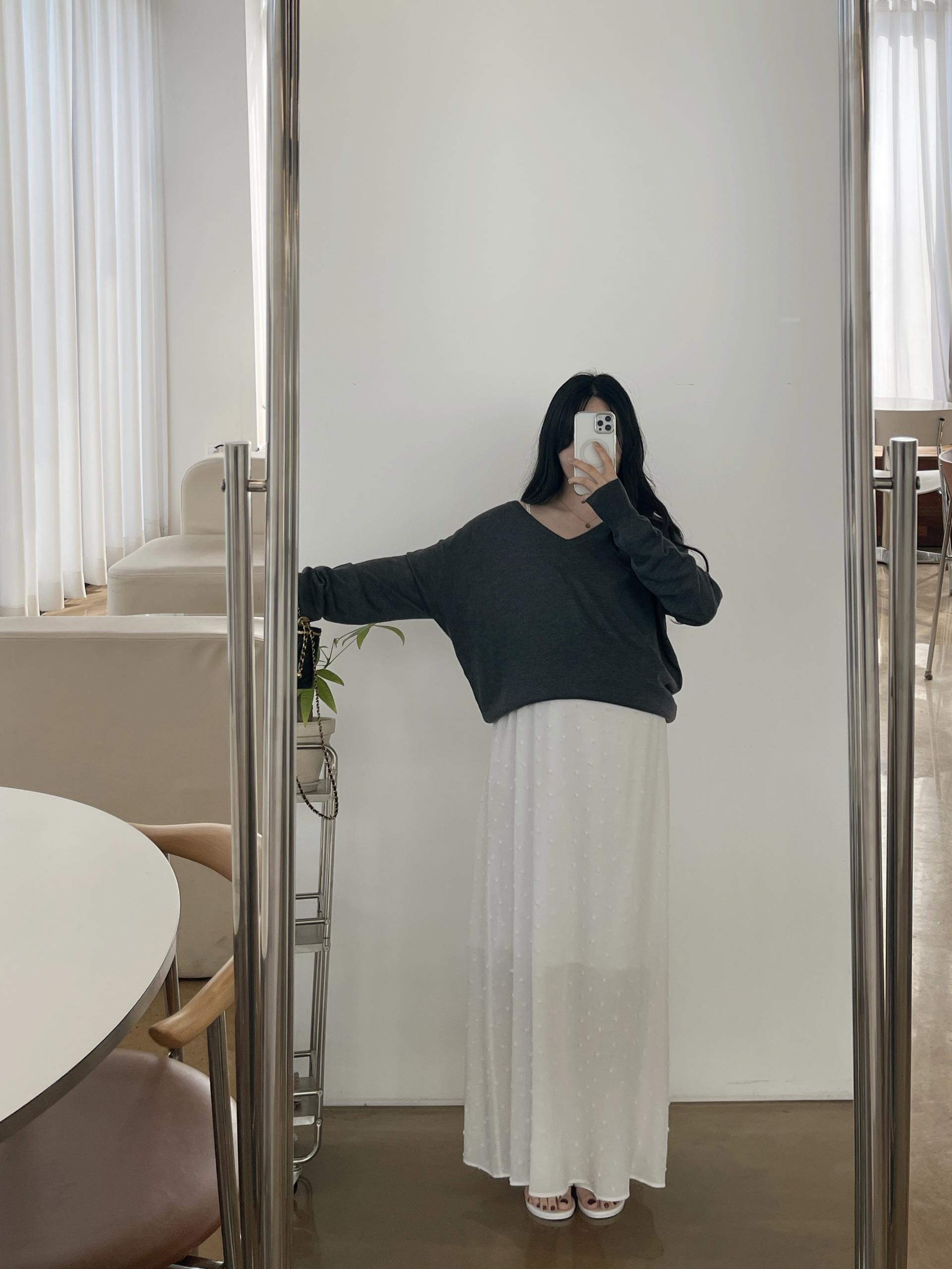V넥으로 목선가늘어보이고