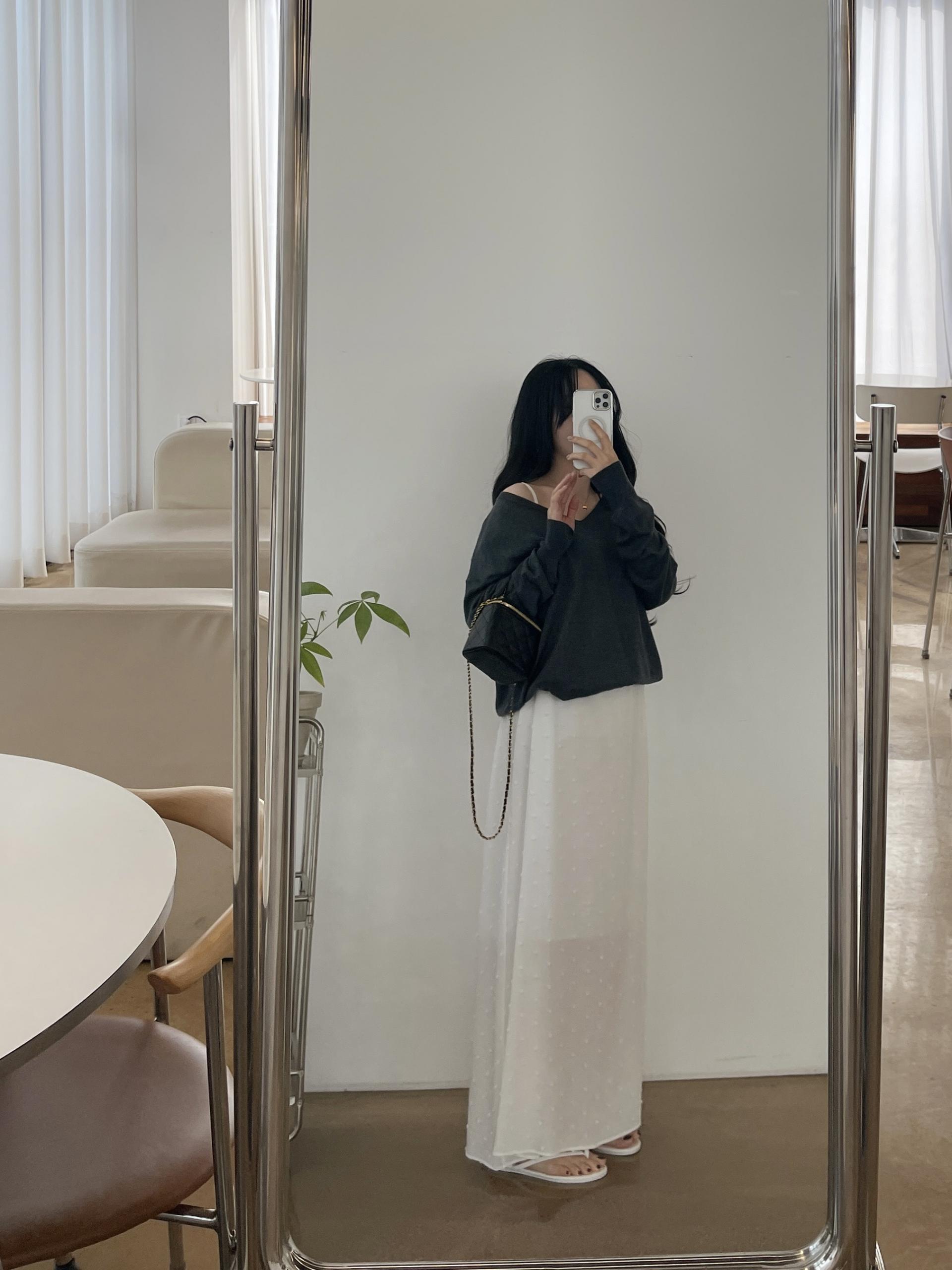 한쪽 어깨 살짝 내려 과하지 않은 오프숄더로도 활용해보세요:)