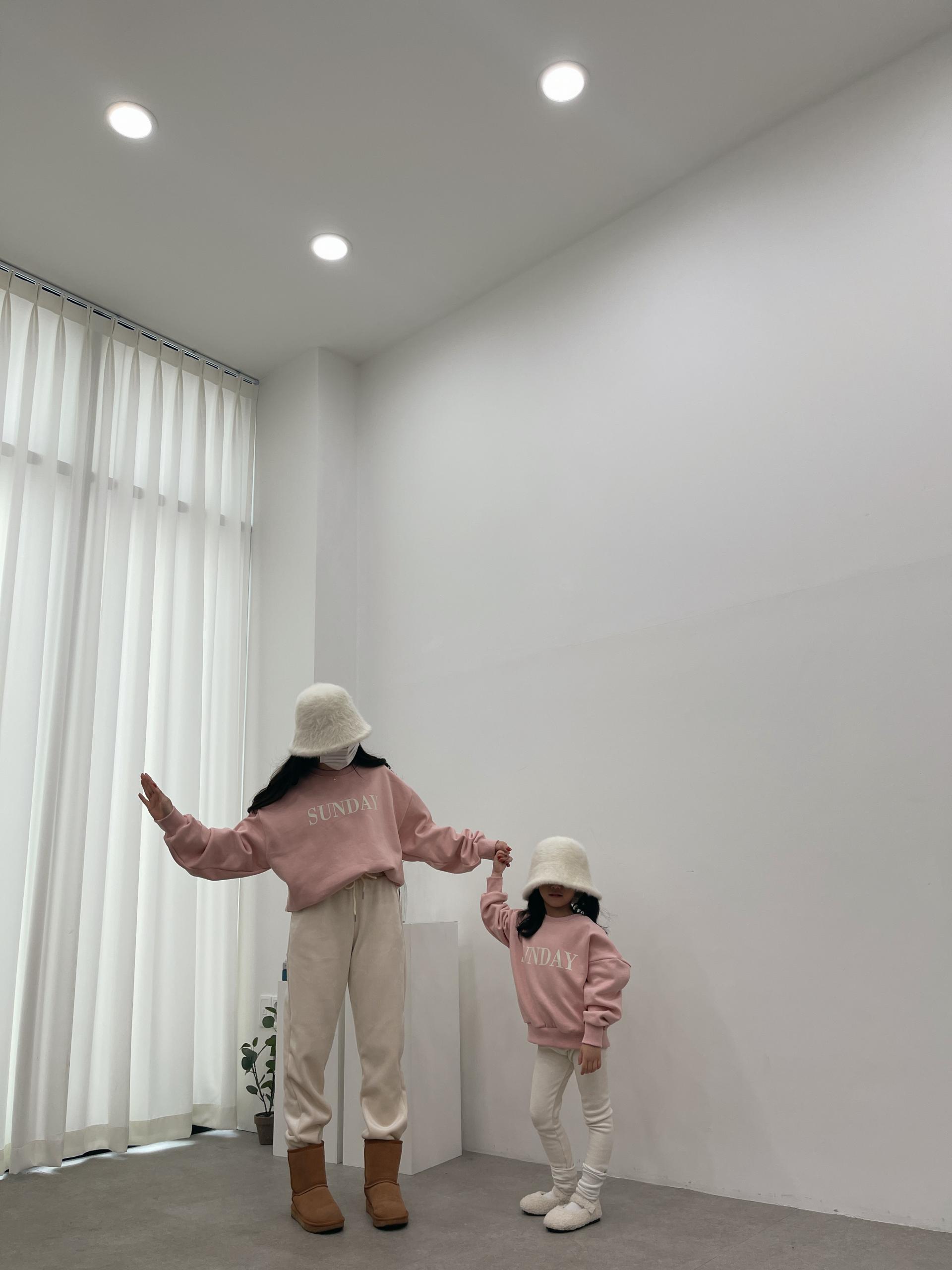 제이린자체제작 엄마와 함께 입는 커플맨투맨! 따뜻한 안감기모의 선데이맨투맨 키즈!