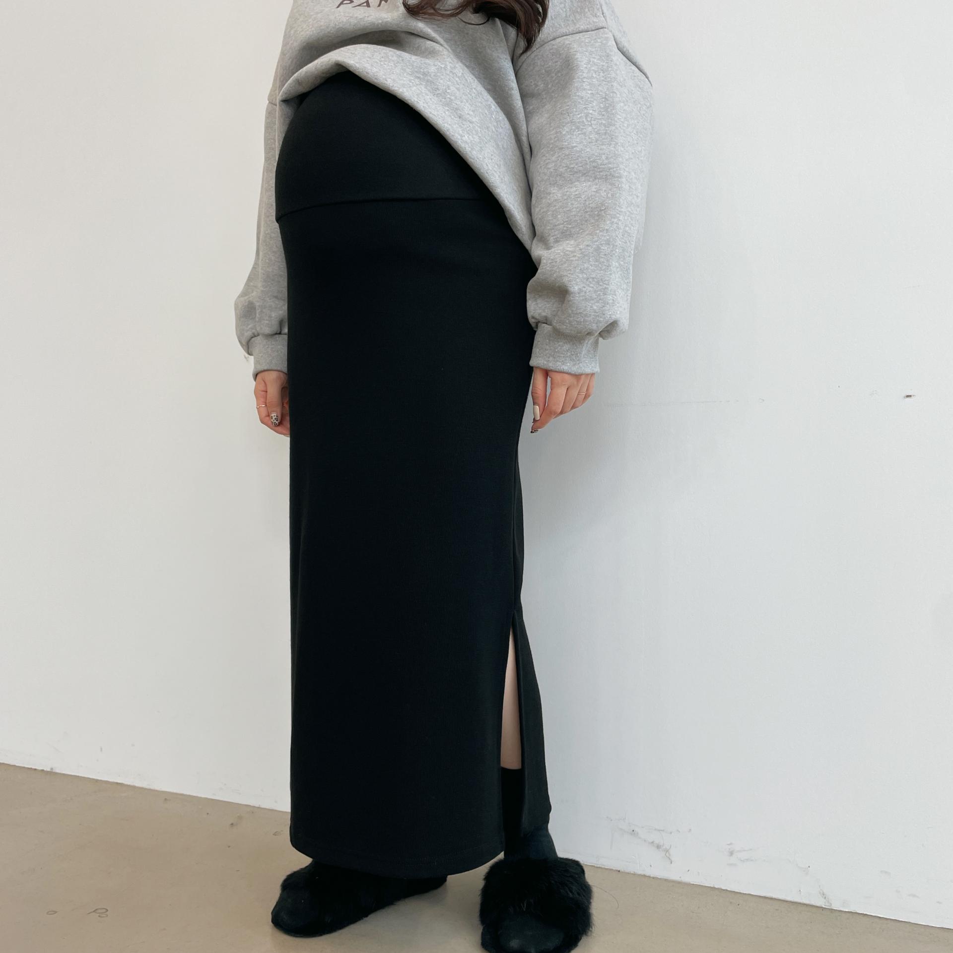 (기모)임부기모 트임 롱 스커트
