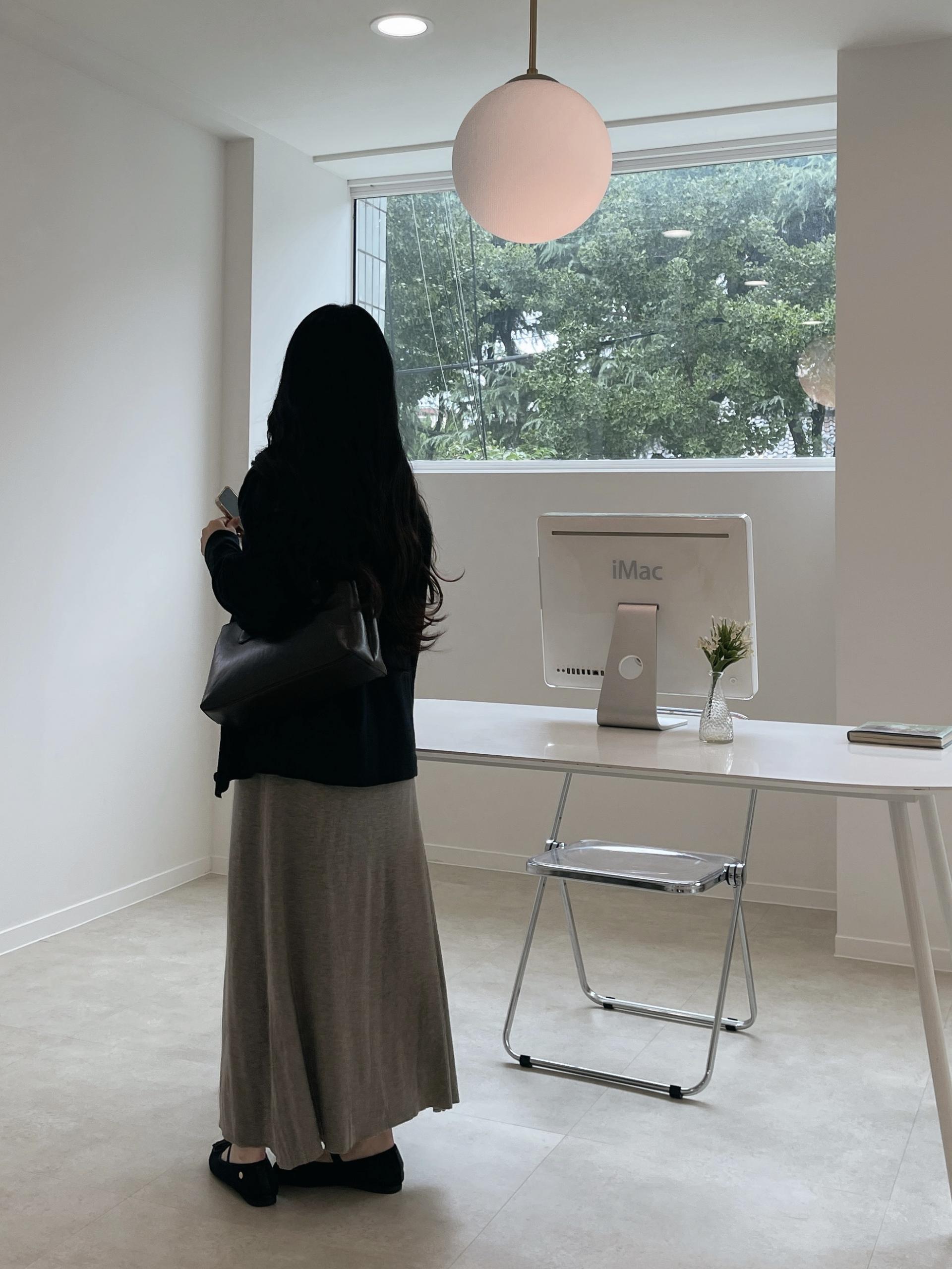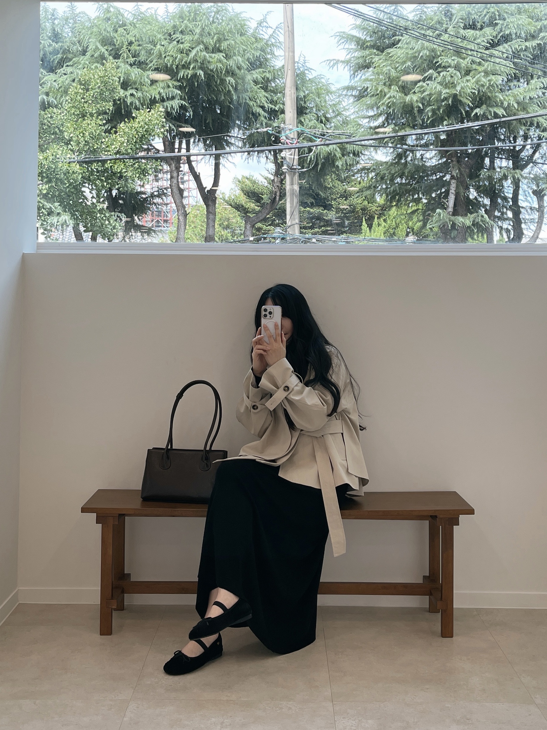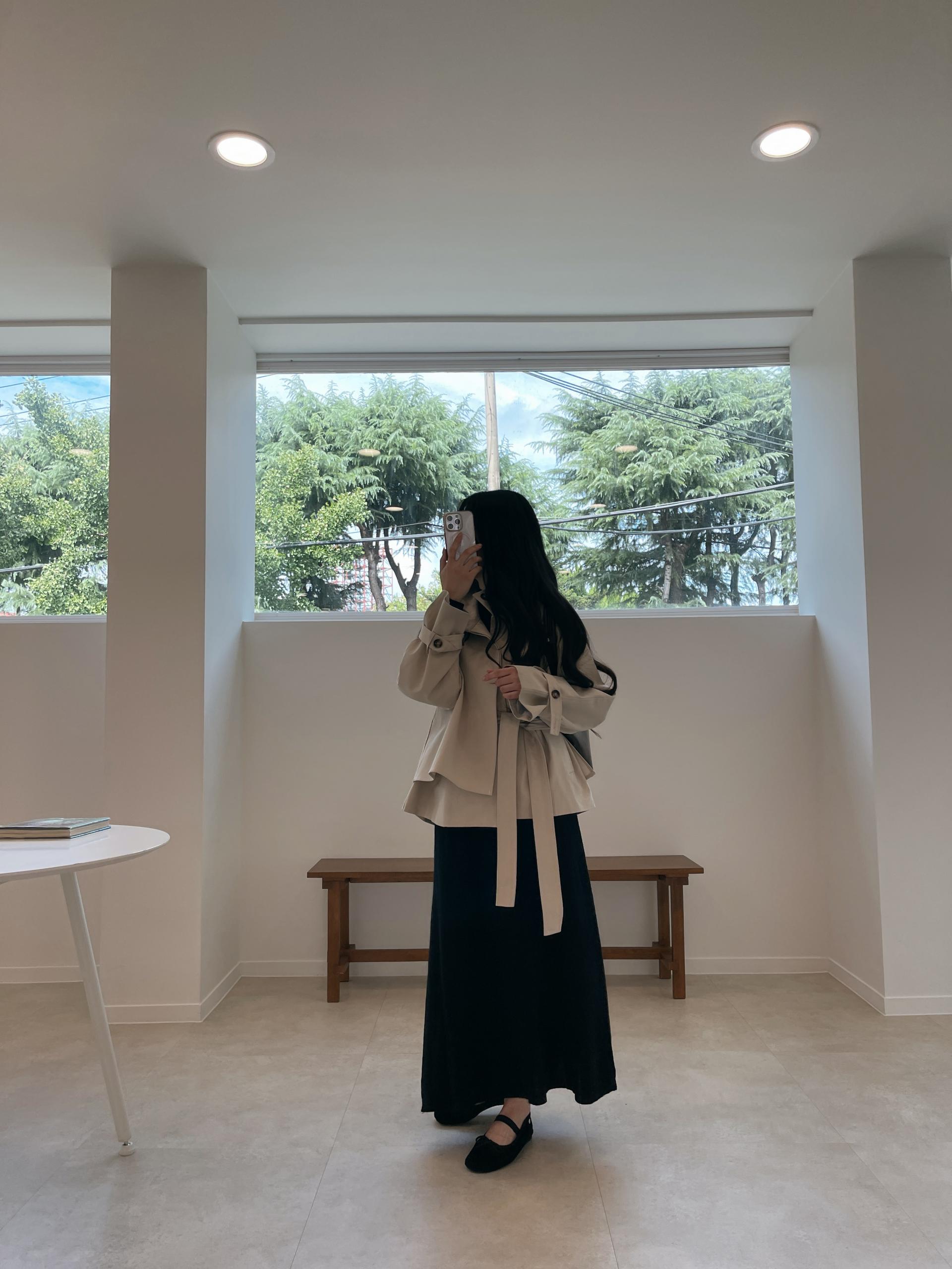 실루엣을 예쁘게 만들어주는 살짝 퍼지는 A라인핏이 예뻤답니다