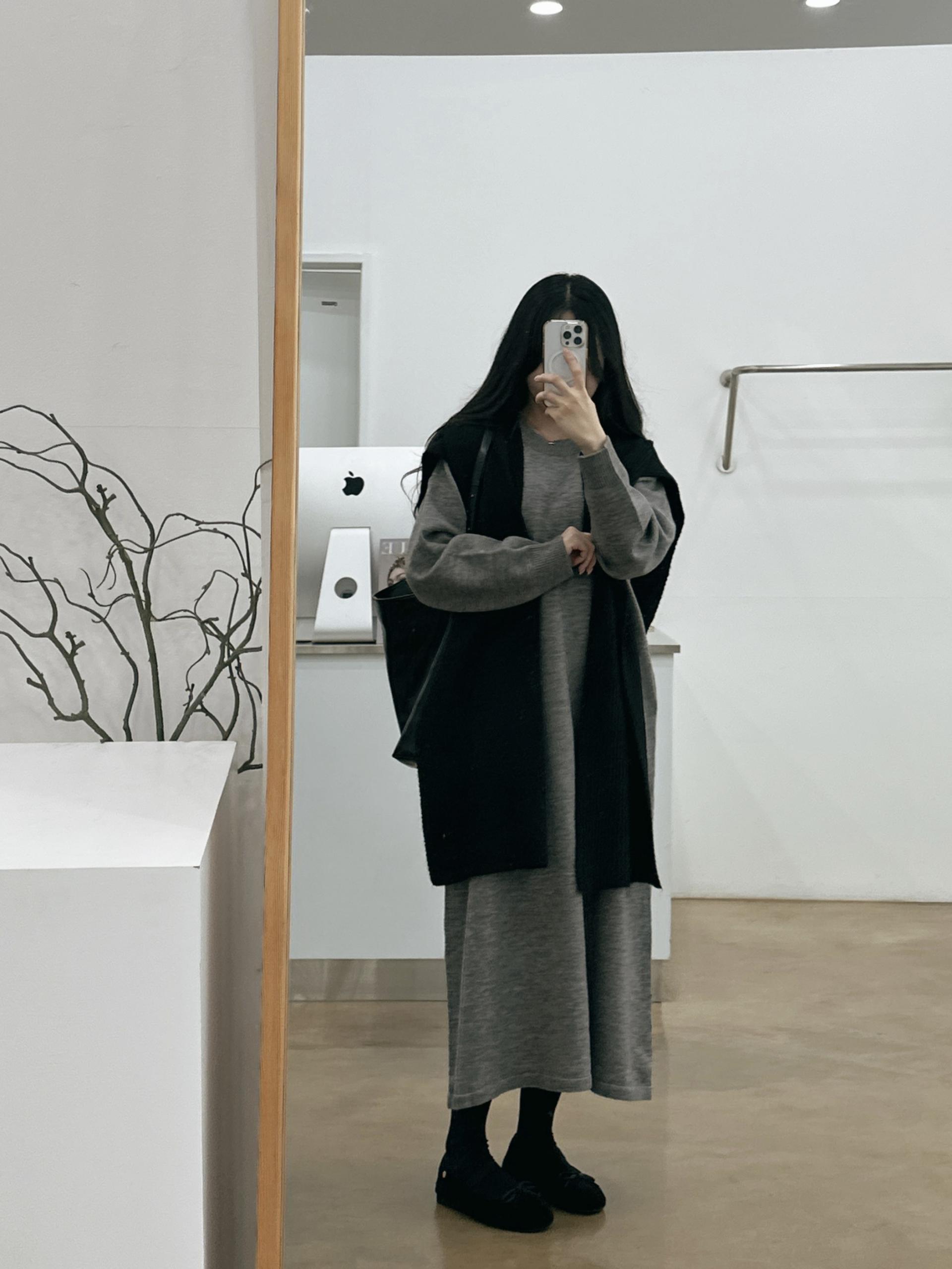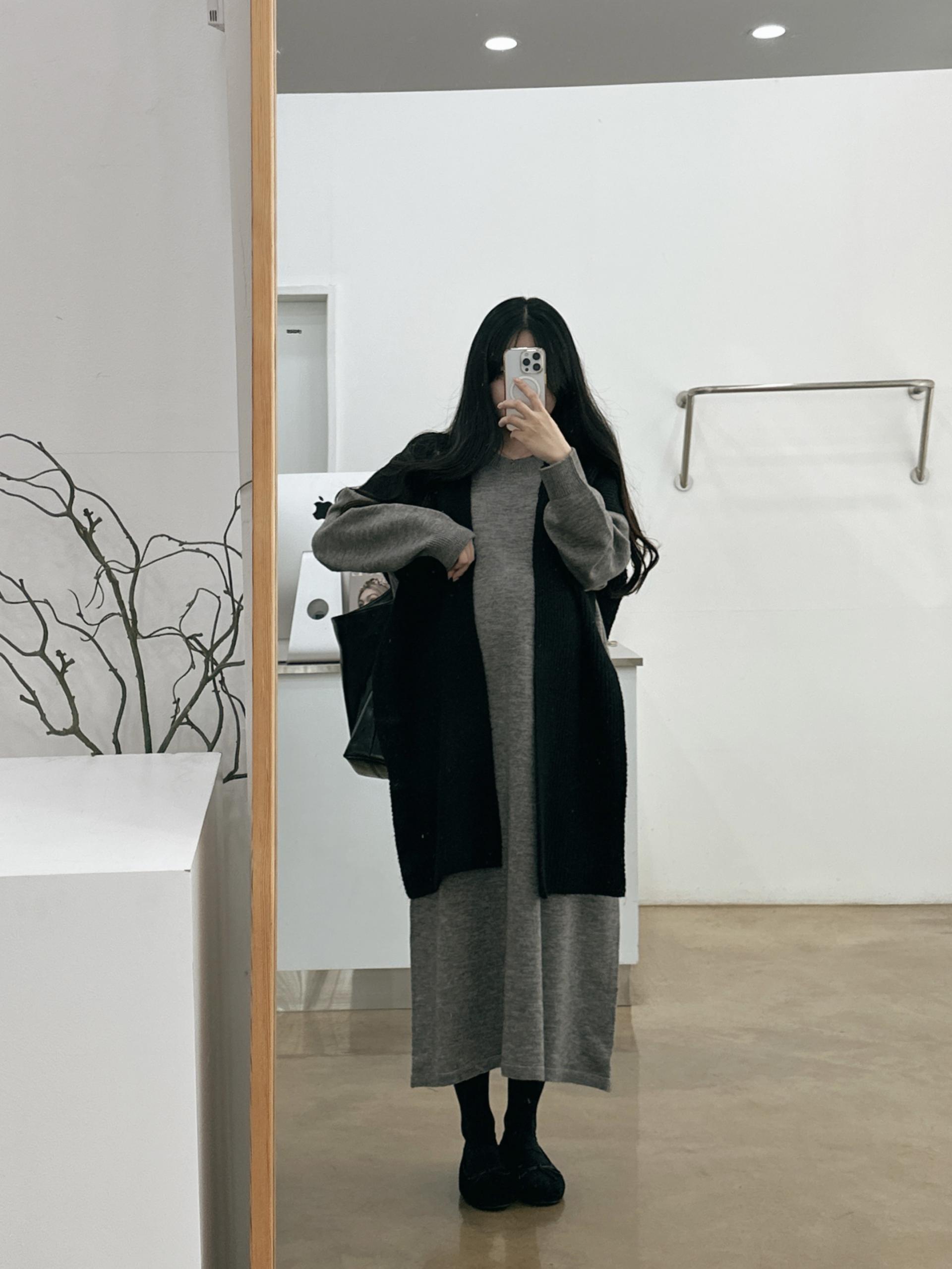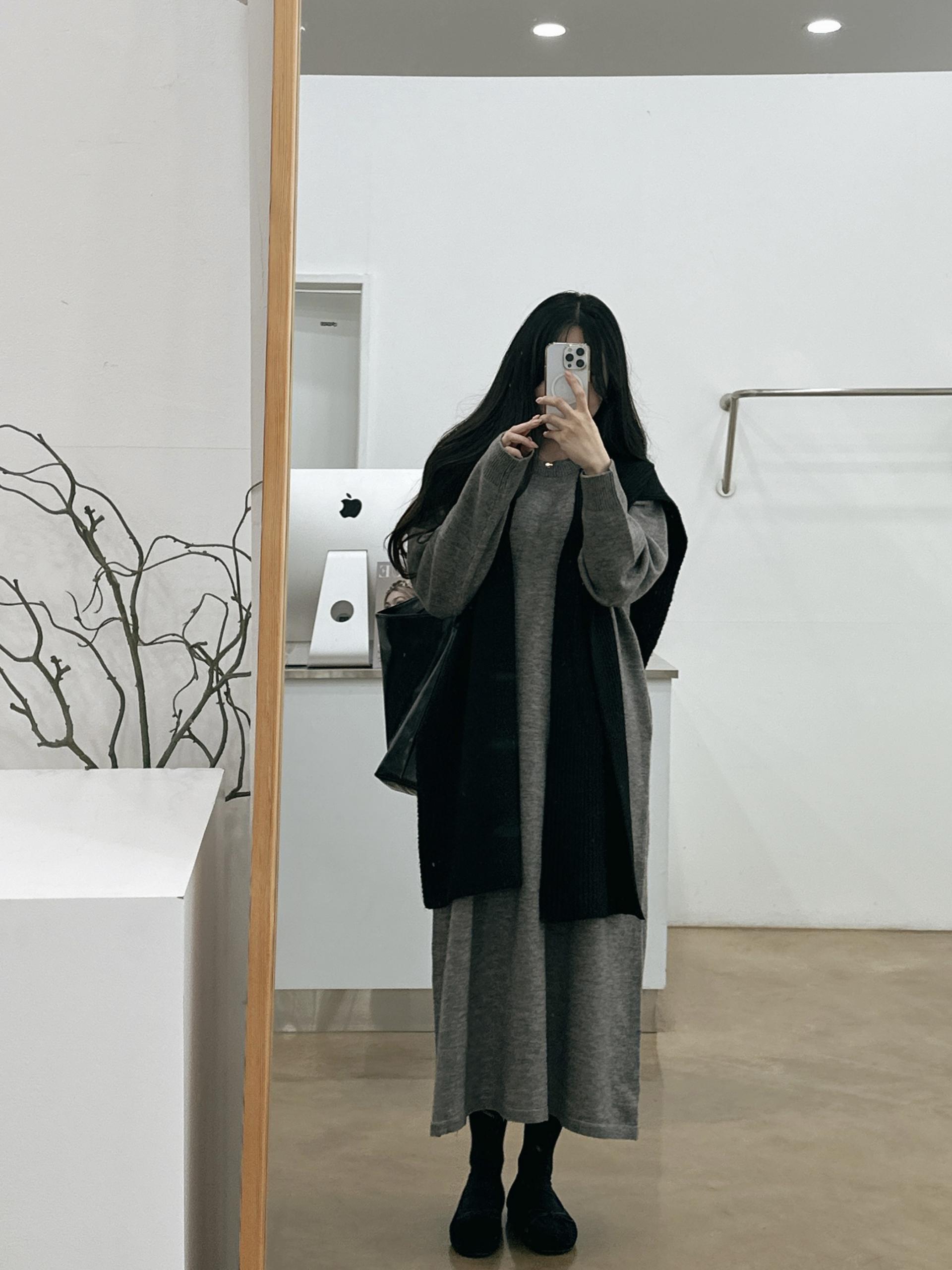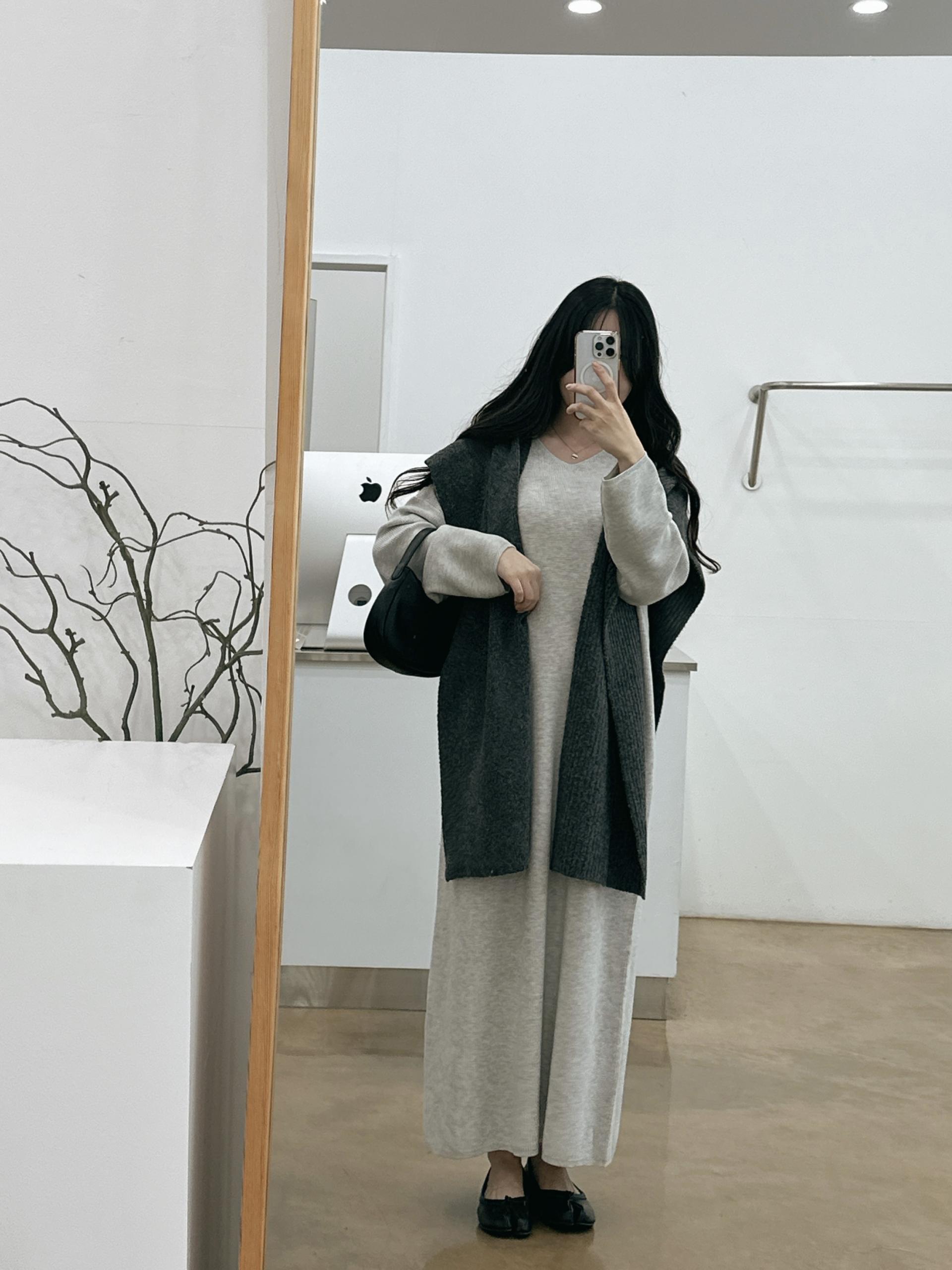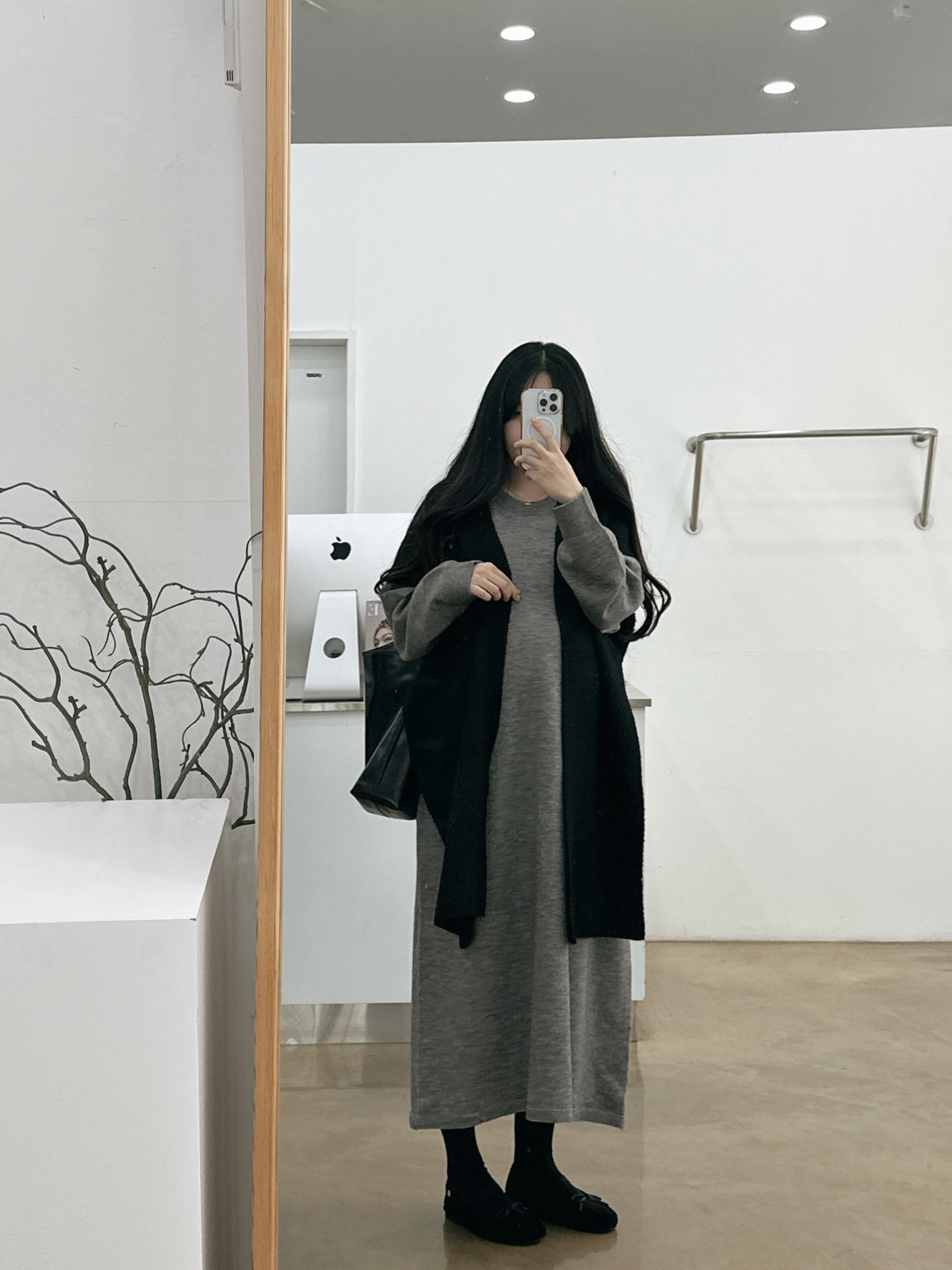 차콜 (코디상품 : 브이넥하찌니트원피스-연그레이)