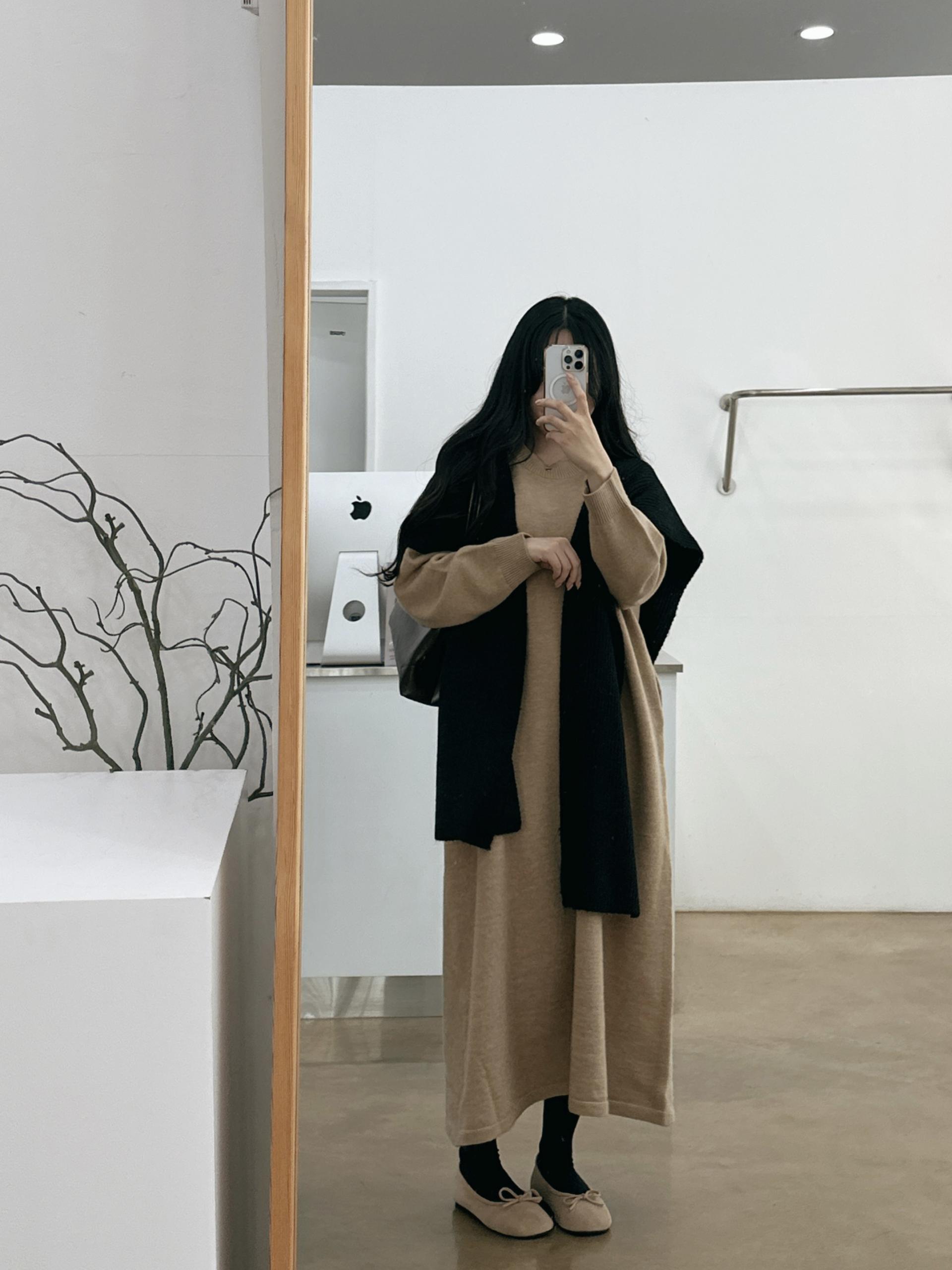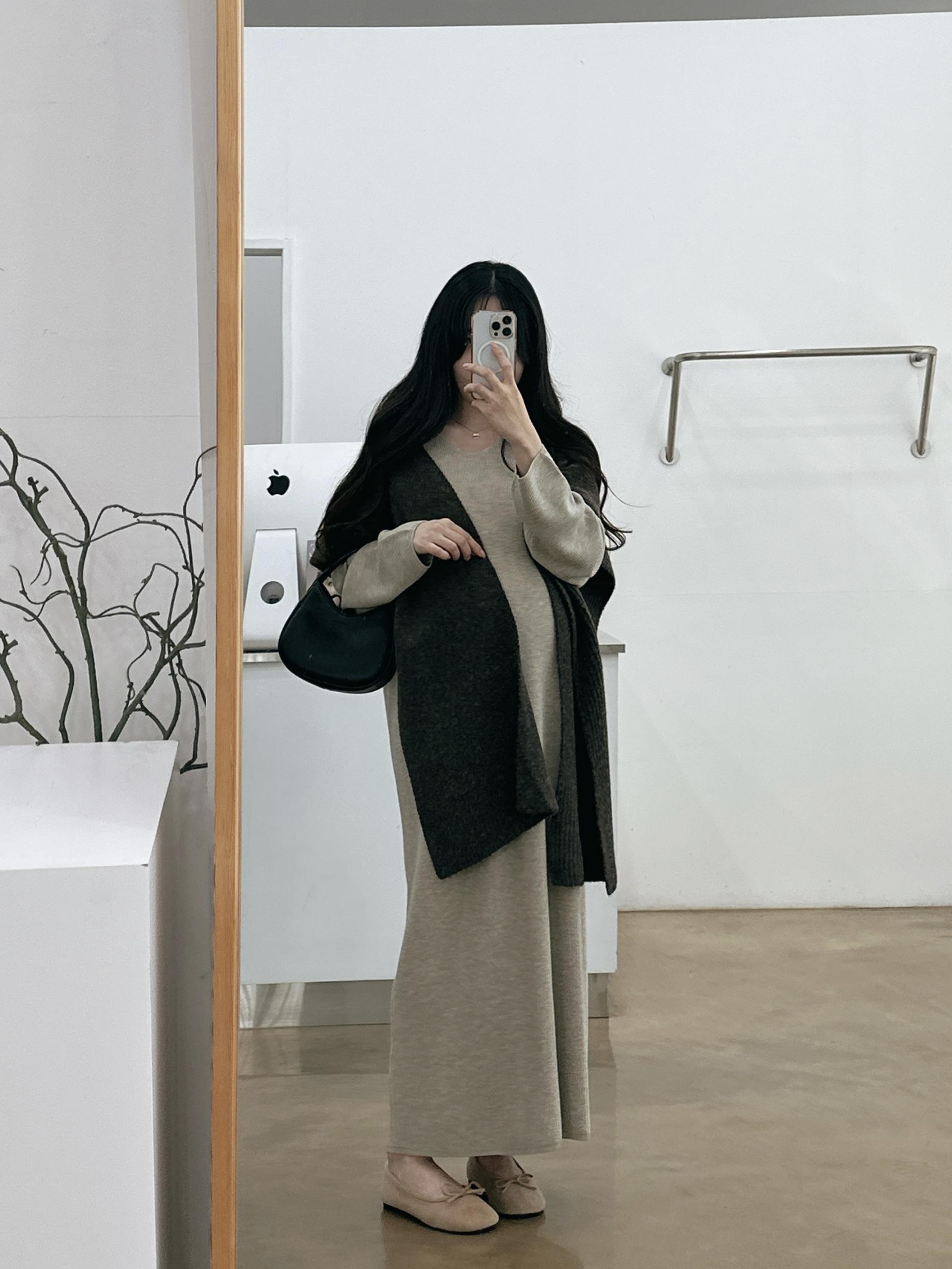브라운(+코디상품 : 브이넥하찌니트원피스 베이지)