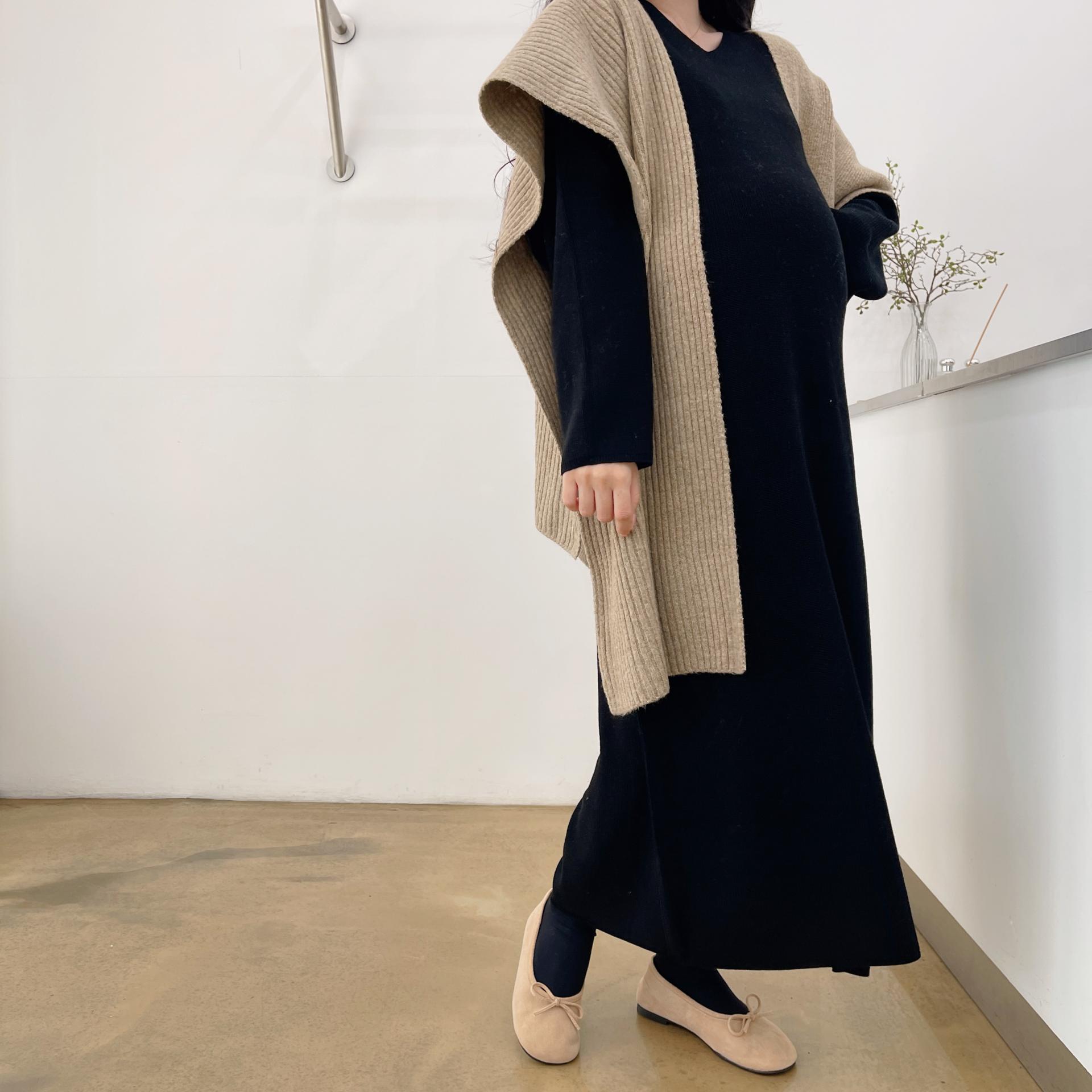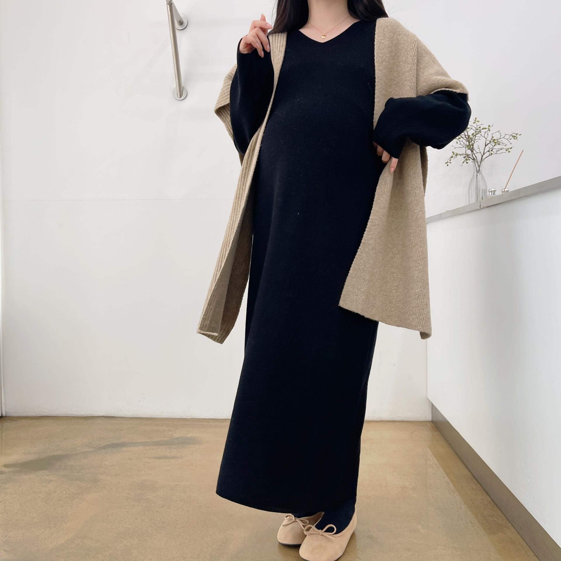 베이지(+코디상품 : 브이넥하찌니트원피스 블랙)