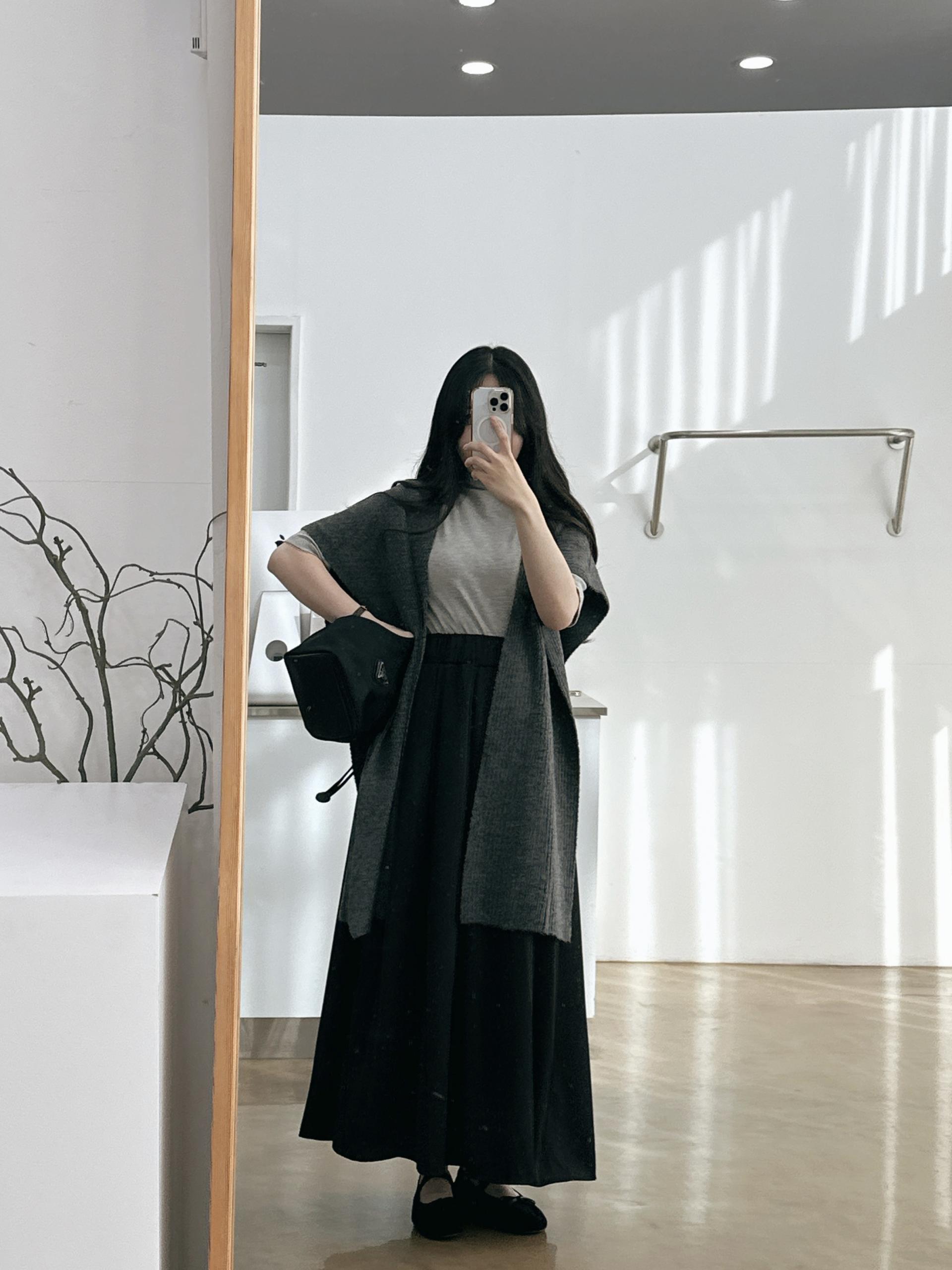 차콜 (코디상품 : 샤인플리츠스커트 블랙, 치즈반목티 그레이)
