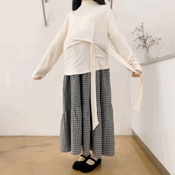 앤초비체크스커트(그레이)+반목꼬임랩T(아이보리)