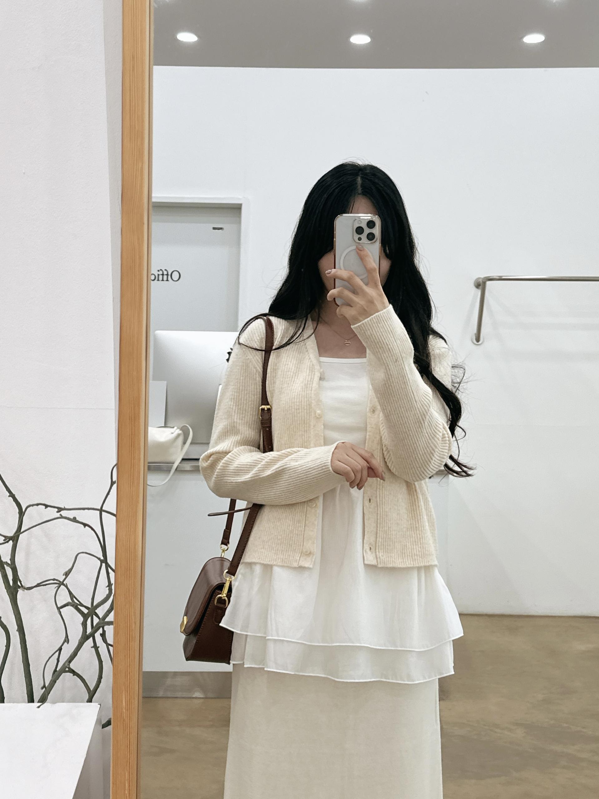 소매기장을 길게잡아 더더 여리해보이는 여리핏 가디건!