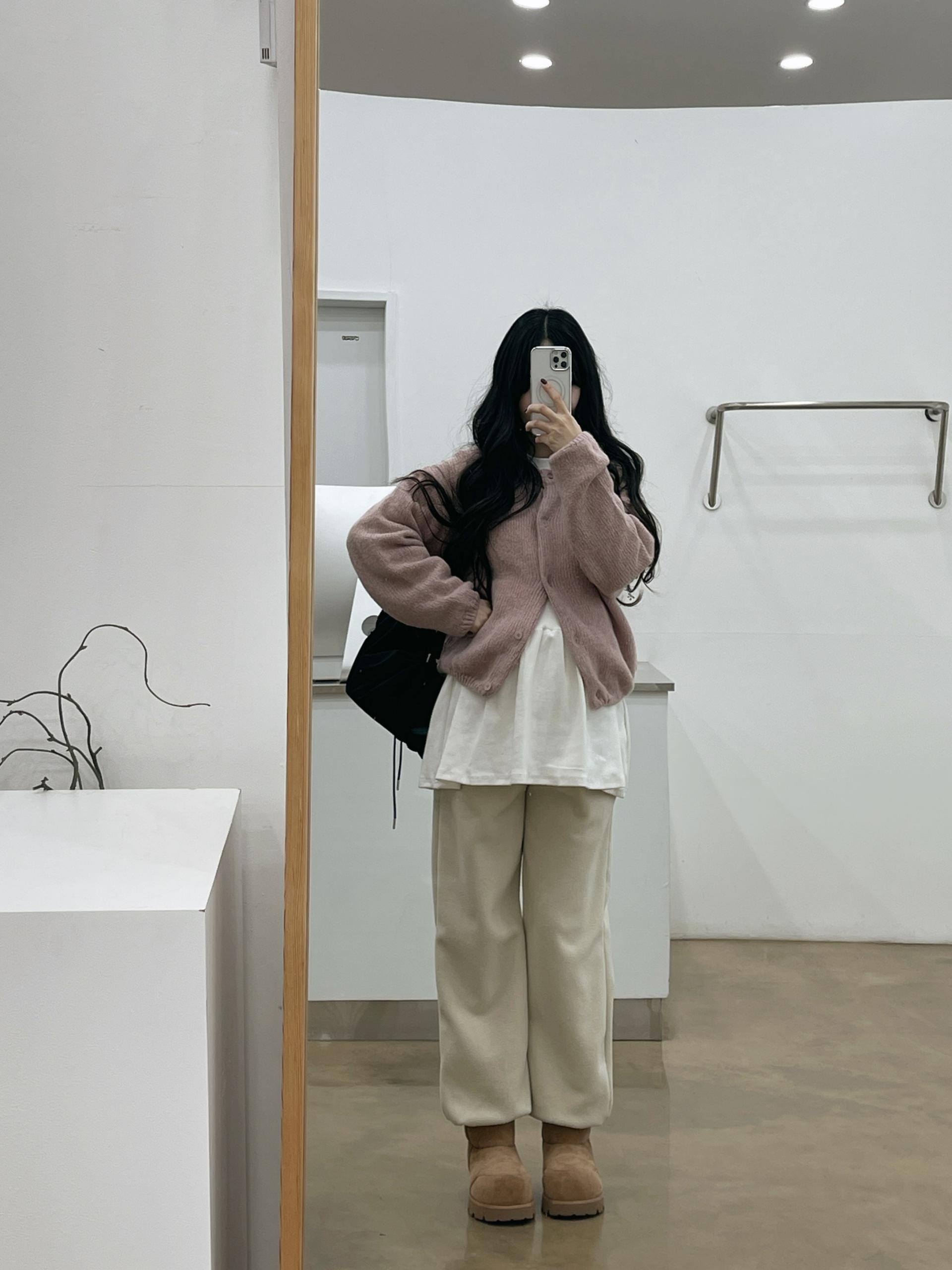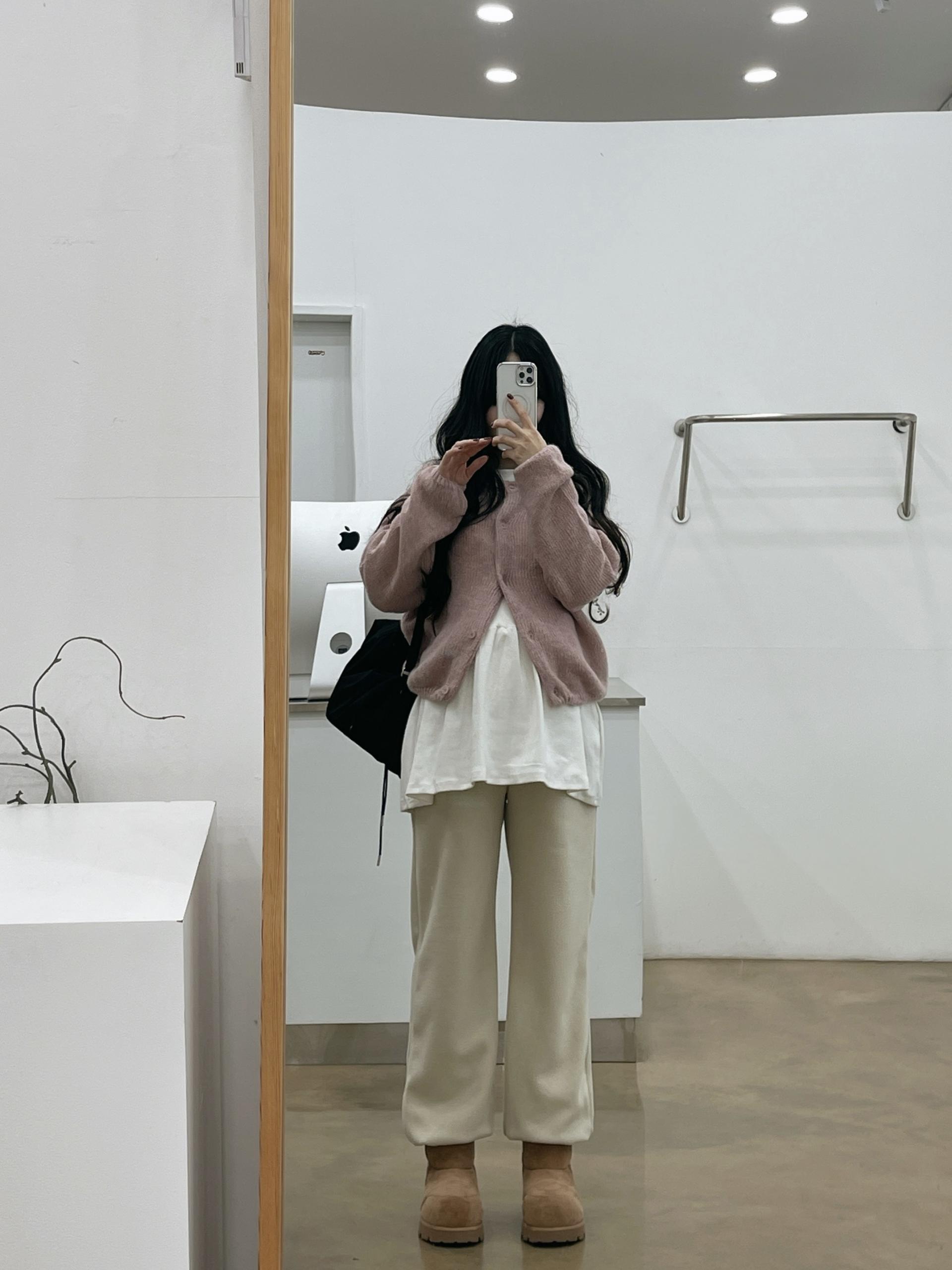 포근하고 오버핏의 사이즈 낙낙한 가디건이에요